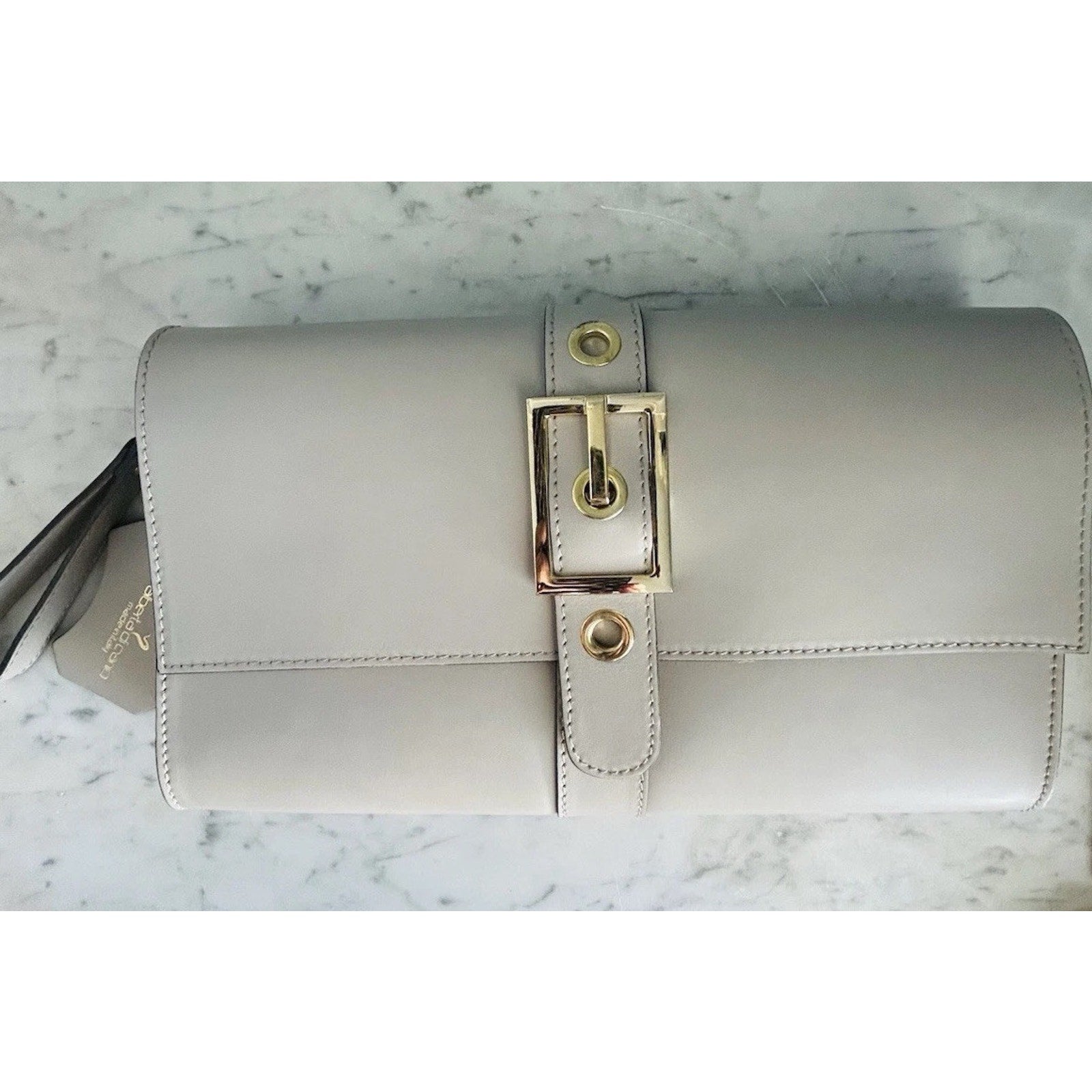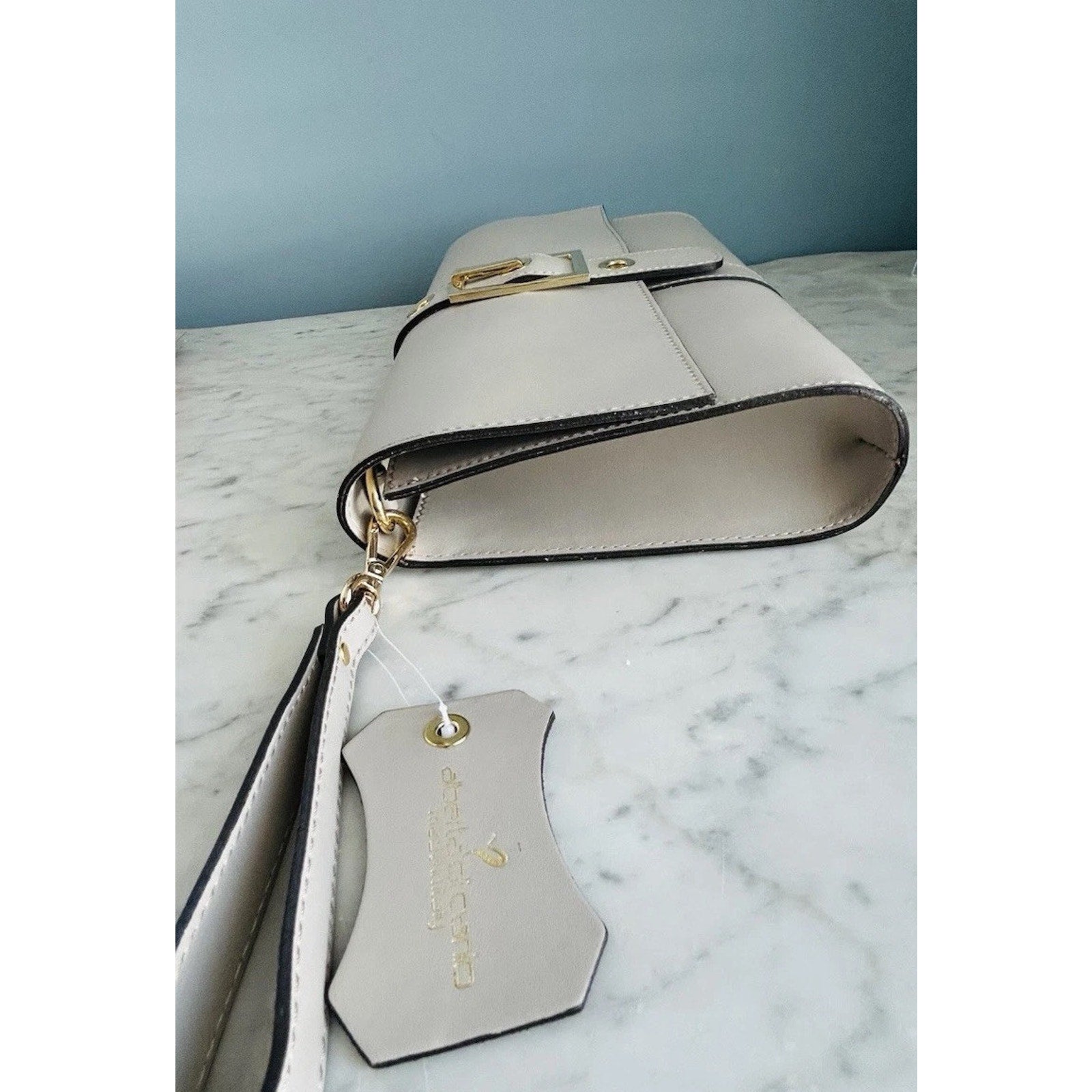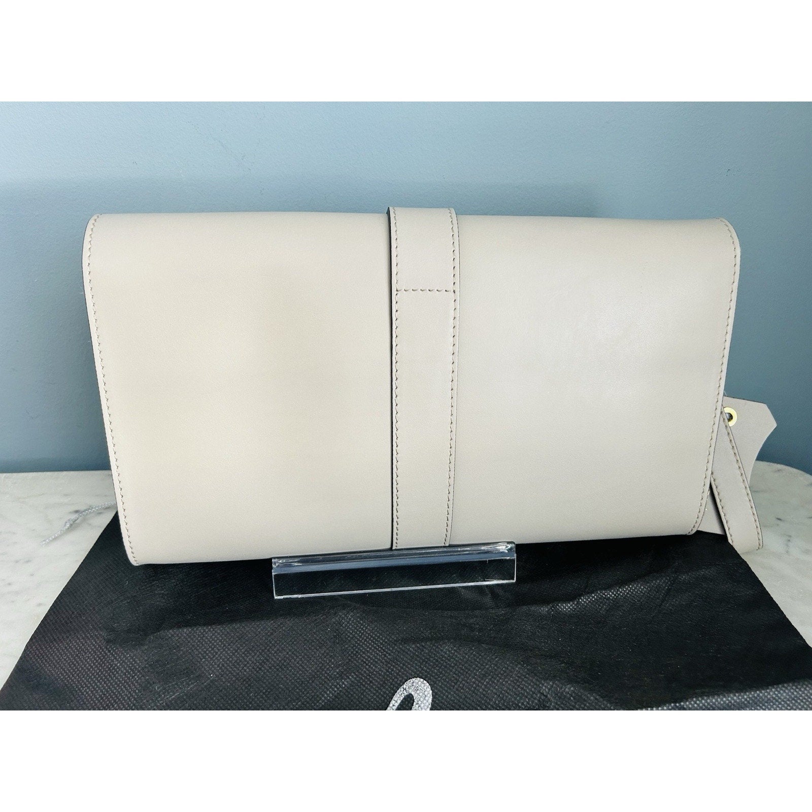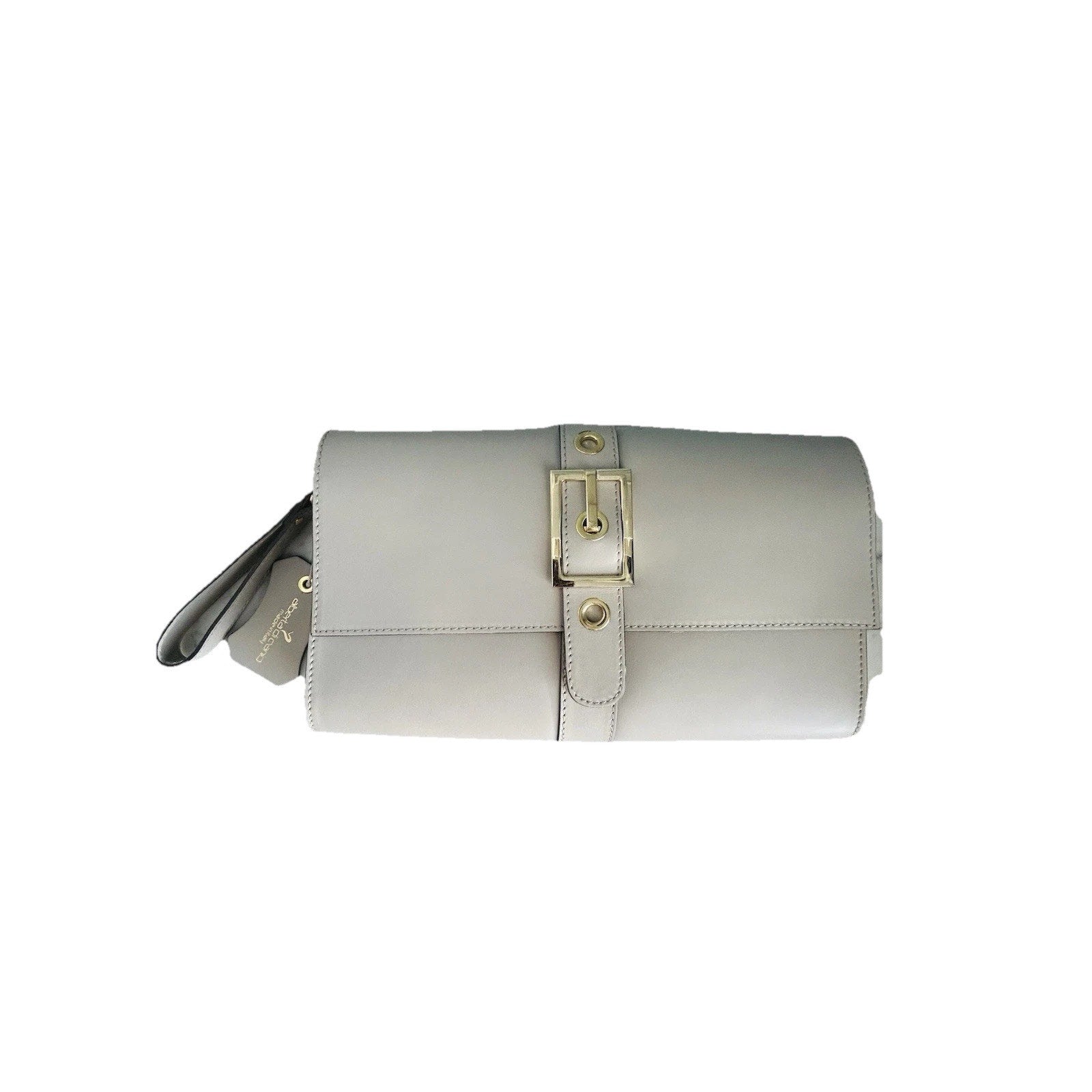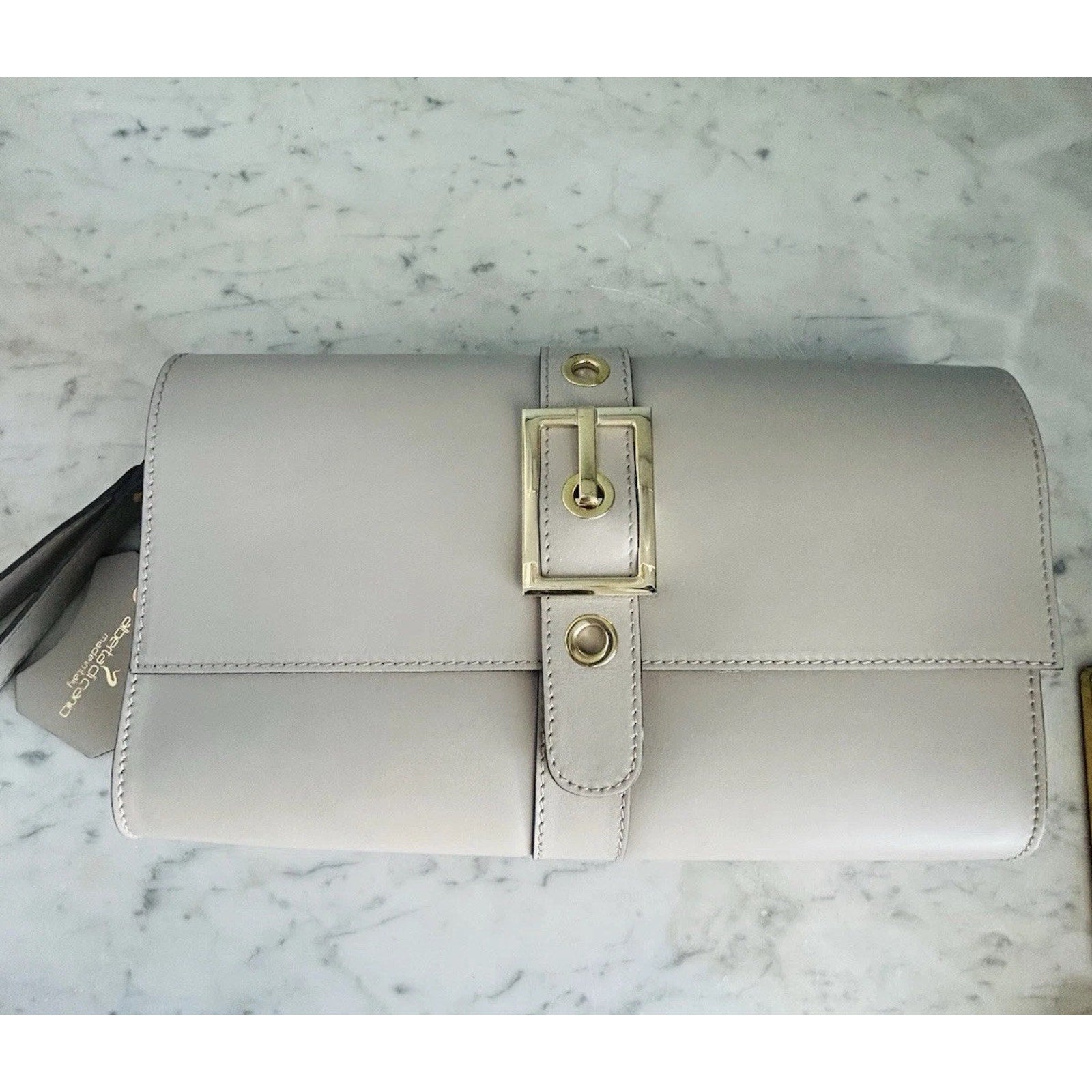 NWOT Alberta Di Canio Italian Leather Beige Gray Clutch Handbag Wristlet Taupe