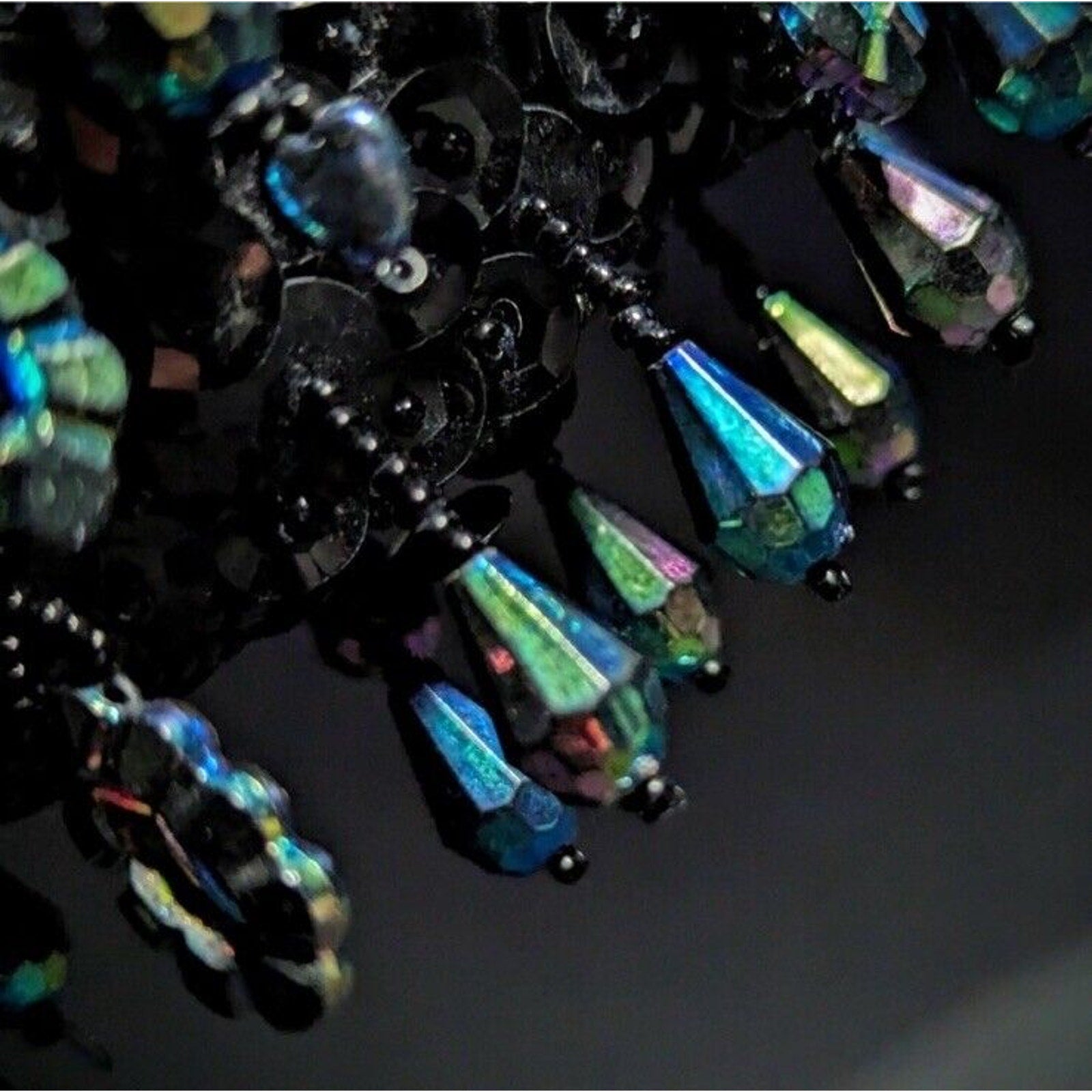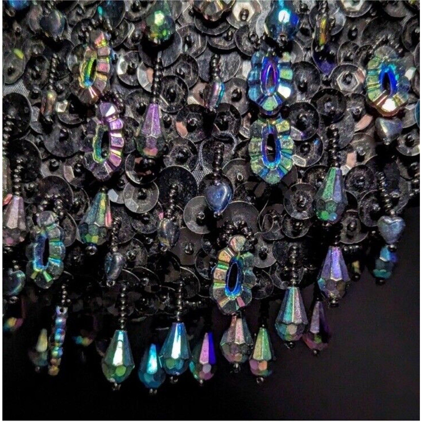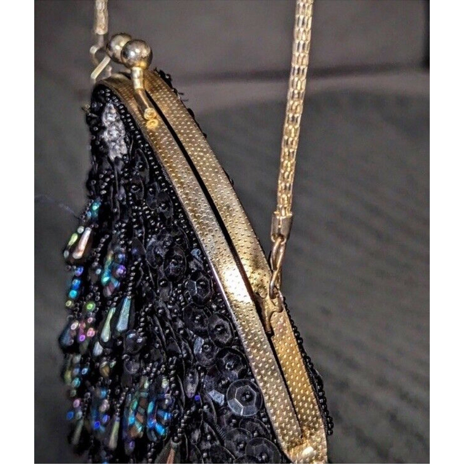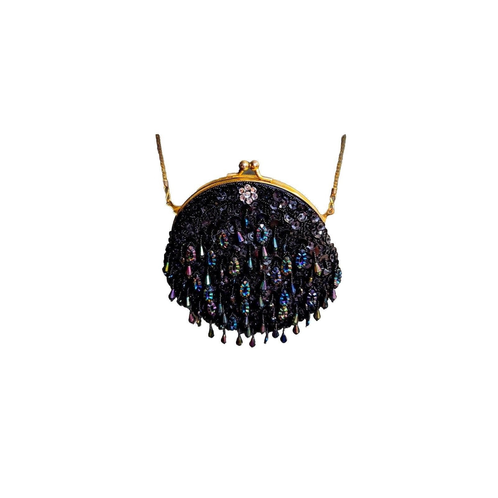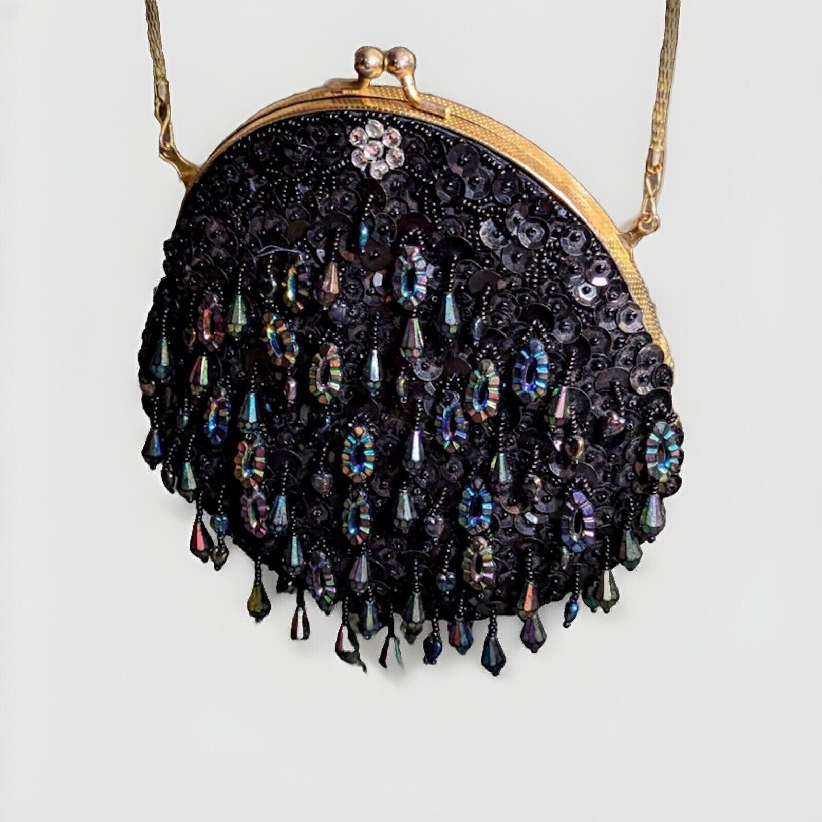 NWOT Black Beaded Sequins Purse Cocktail Long Chain Gold Flower Holiday Event