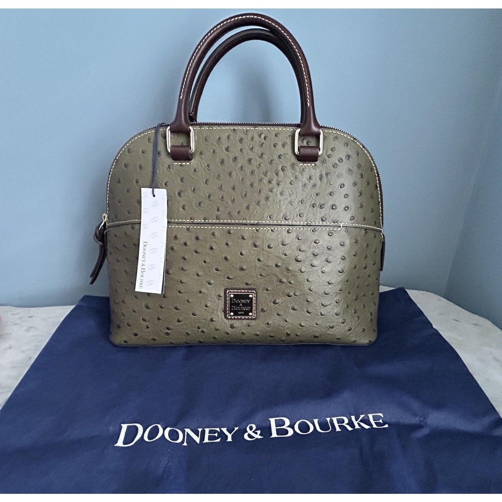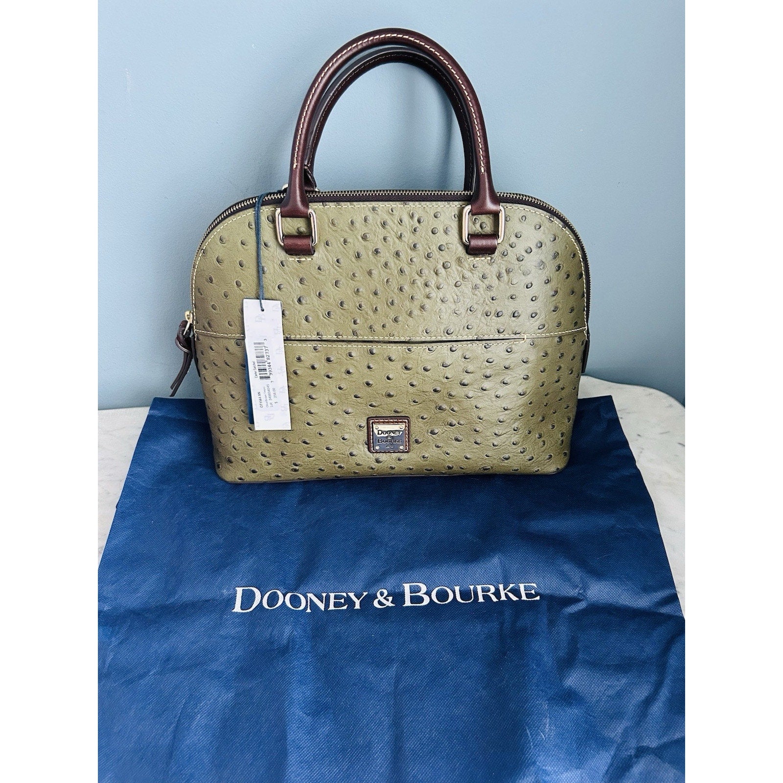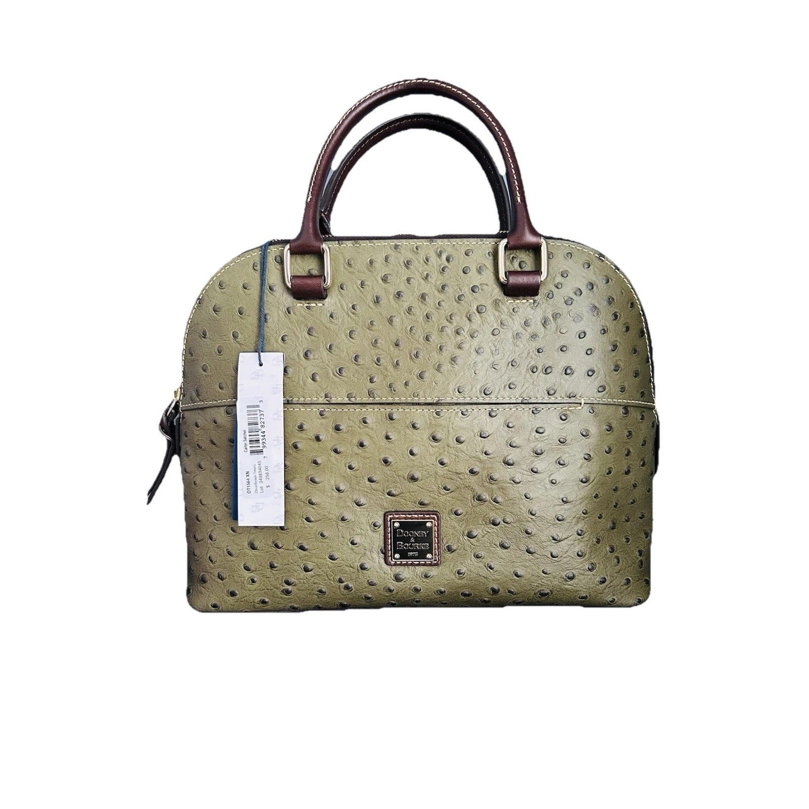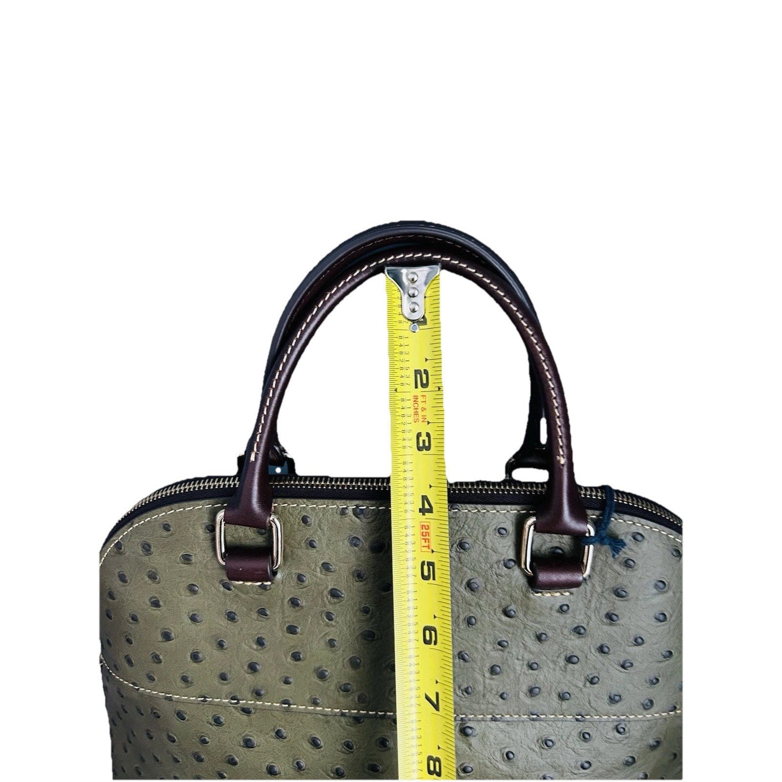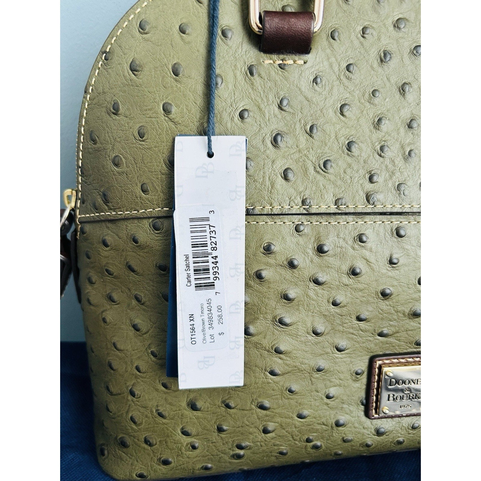 NWT Dooney & Bourke Genuine Ostrich Leather Carter Satchel Olive Brown Dome COA