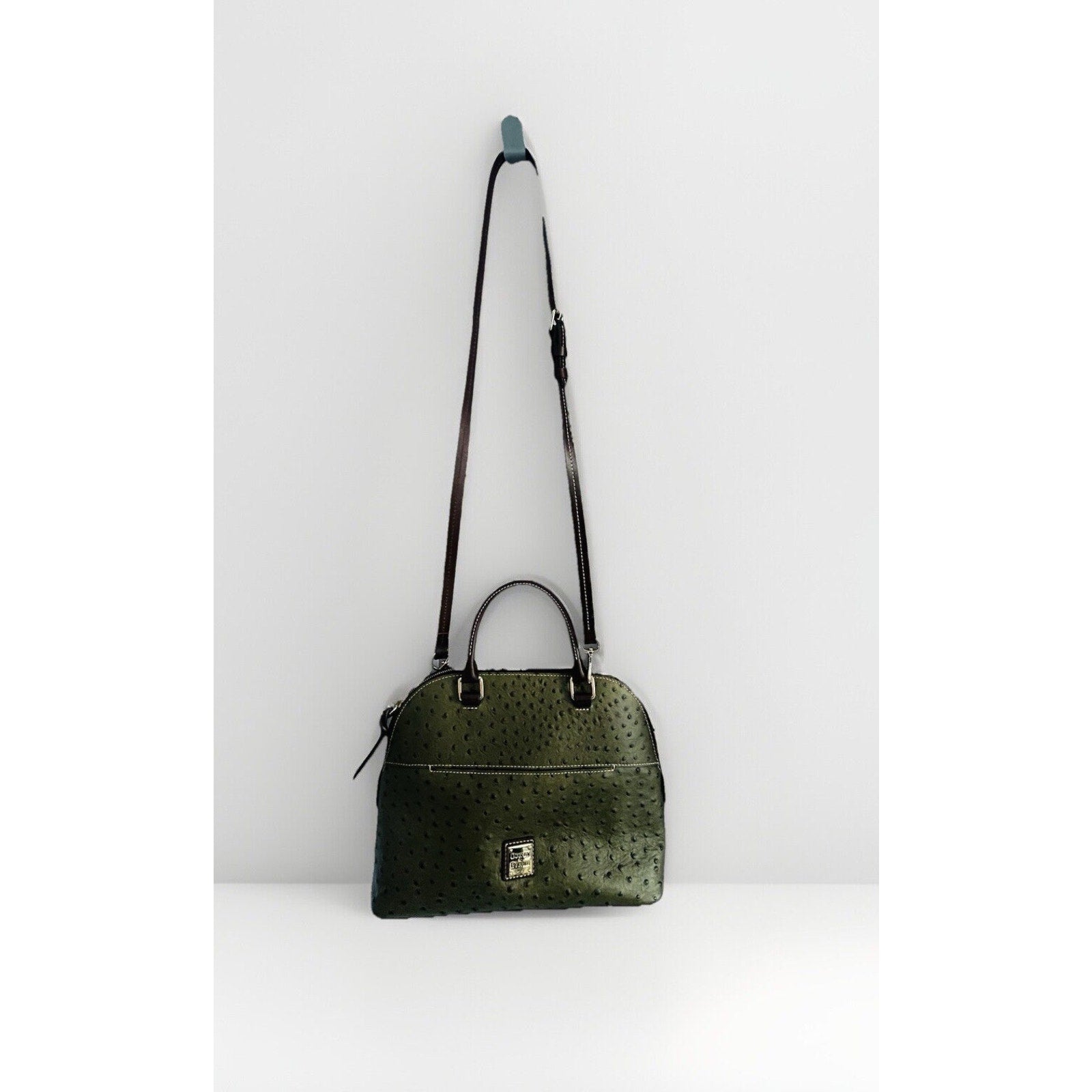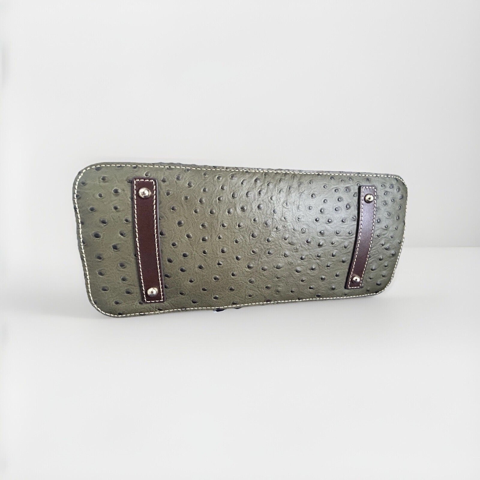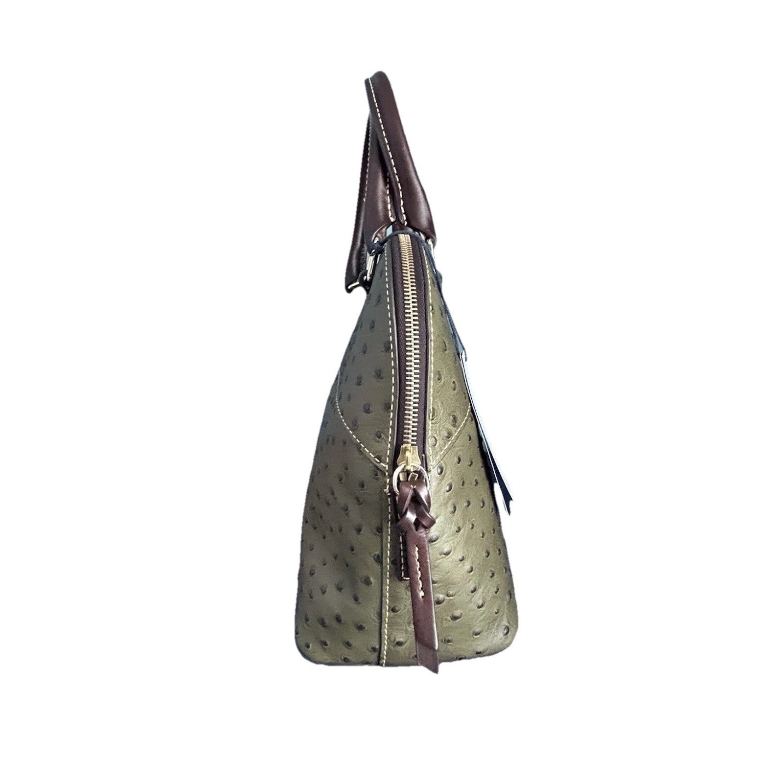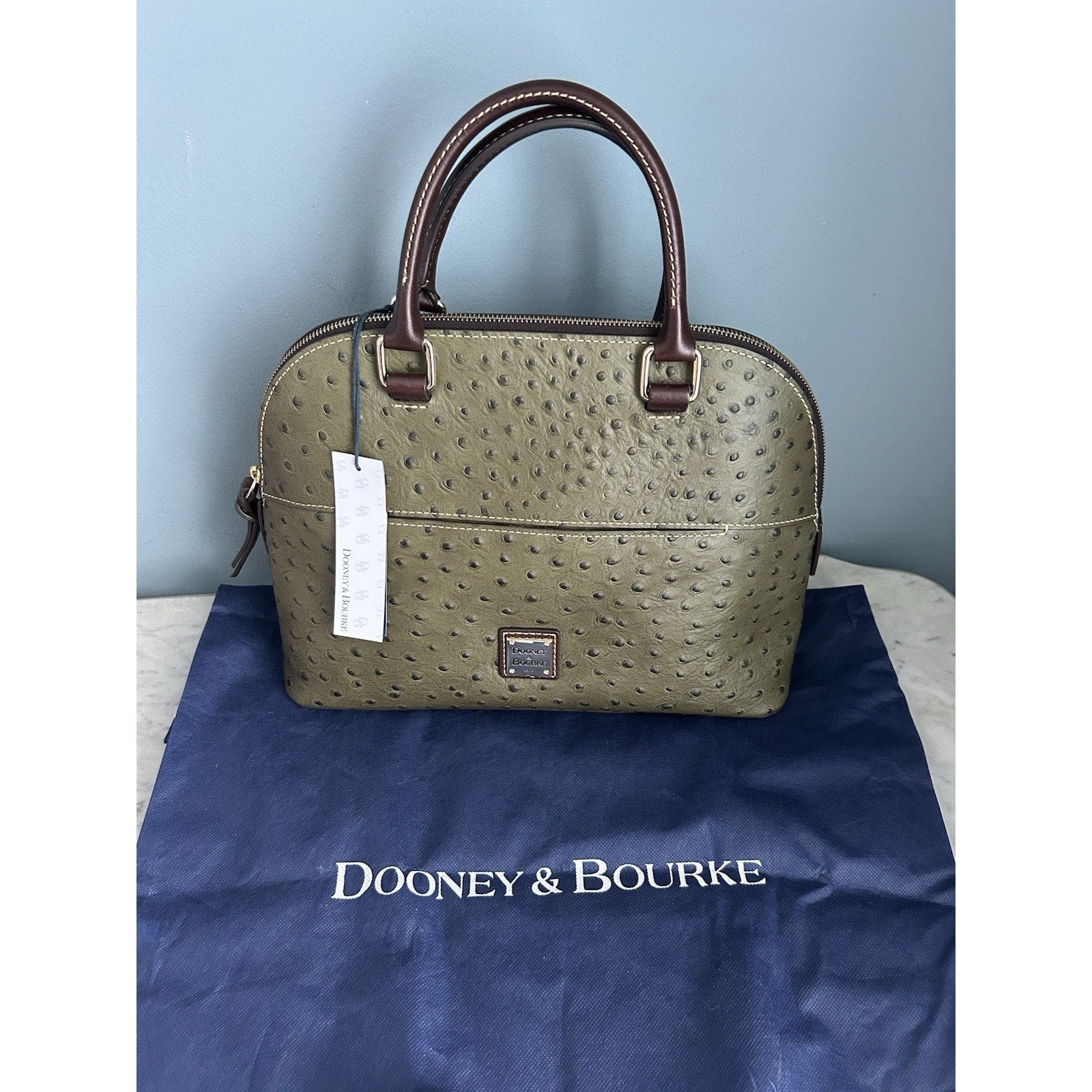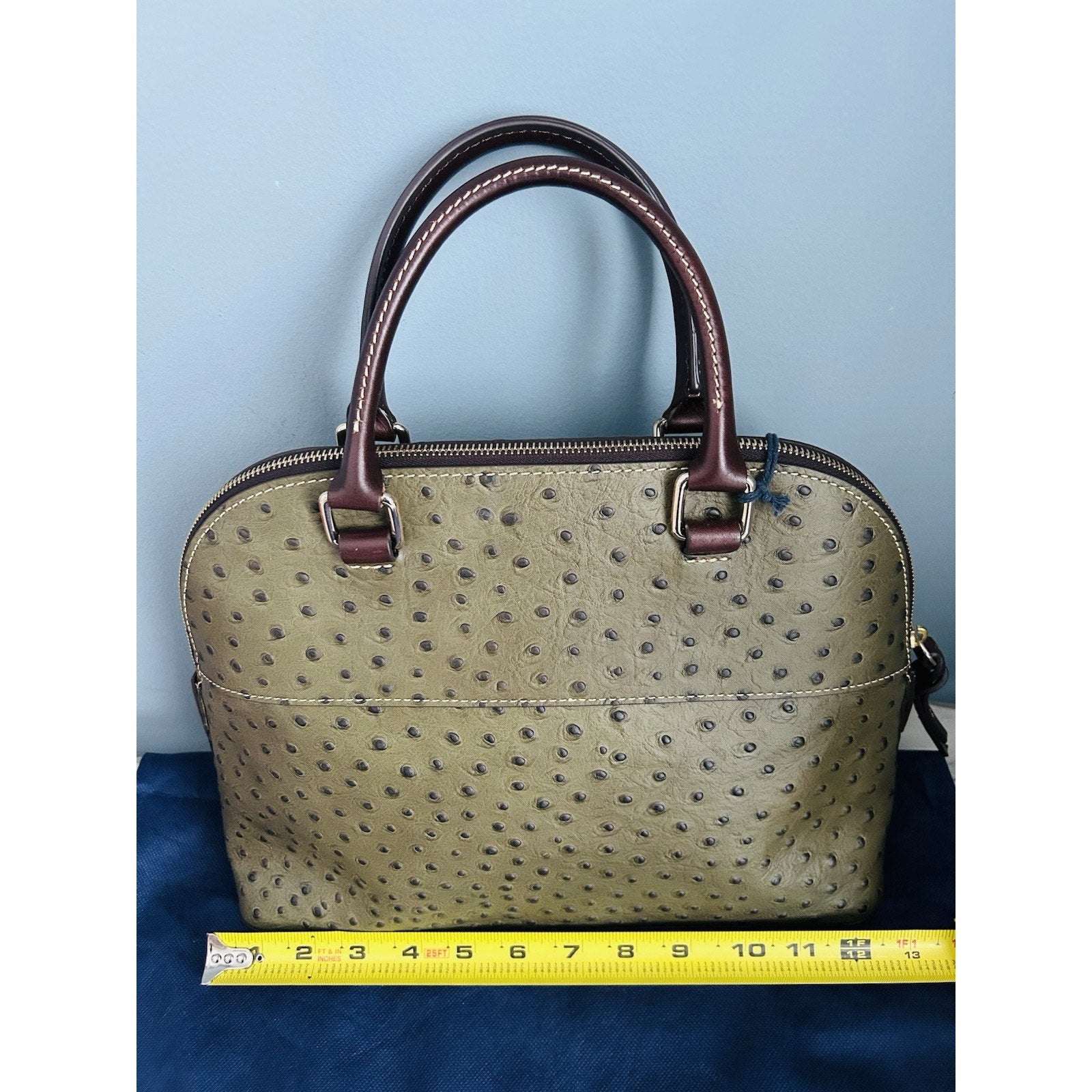 NWT Dooney & Bourke Genuine Ostrich Leather Carter Satchel Olive Brown Dome COA