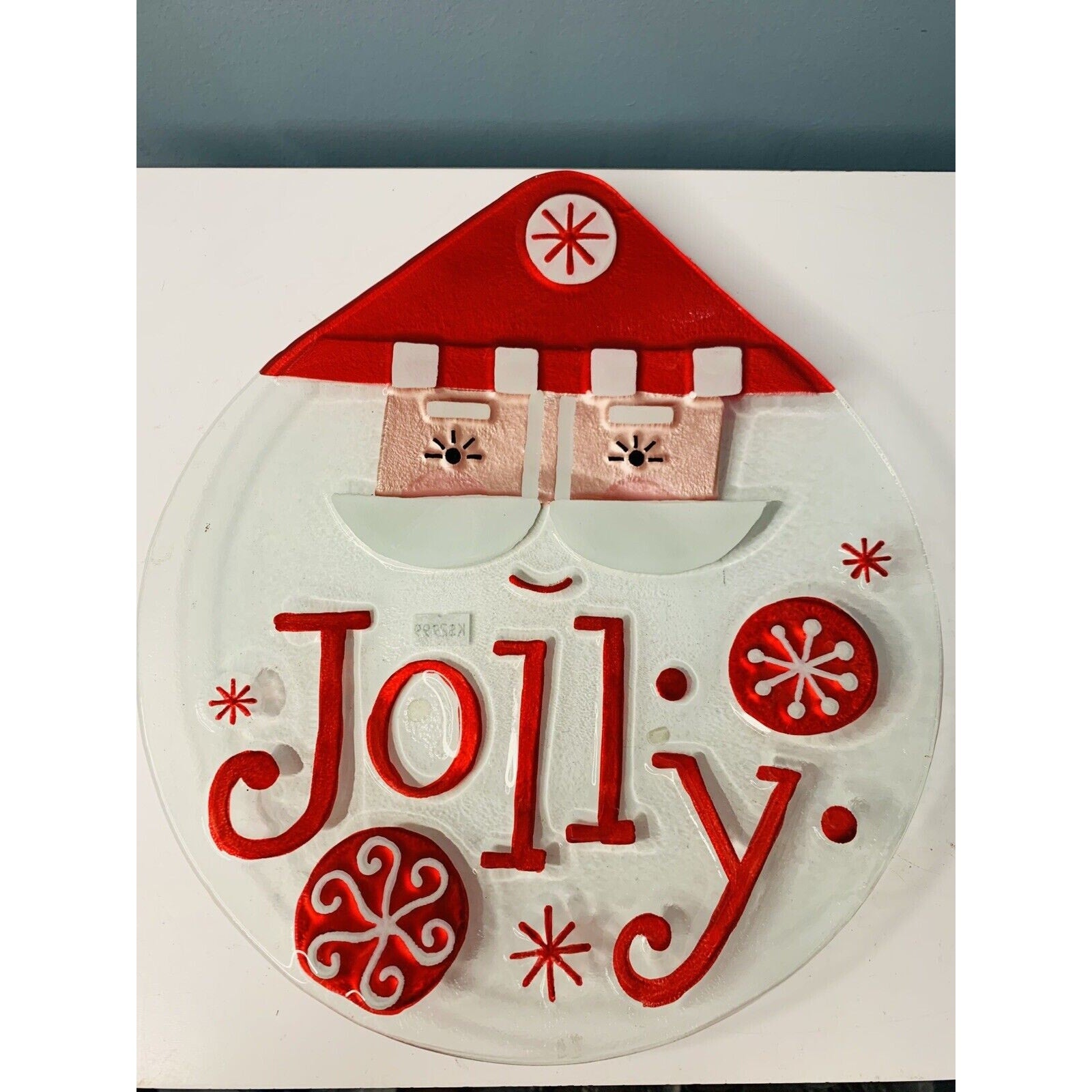 NWT Jolly Santa Fusion Glass Shaped Plate Platter Lori Siebert 2011 Silvestryi