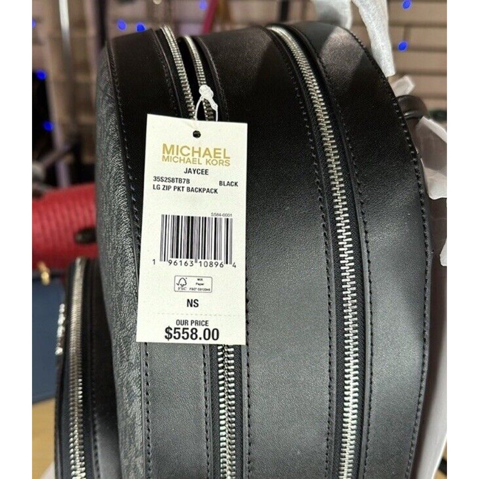 NWT Michael Kors Jaycee Large Backpack Logo Signature MK Black MSRP 558
