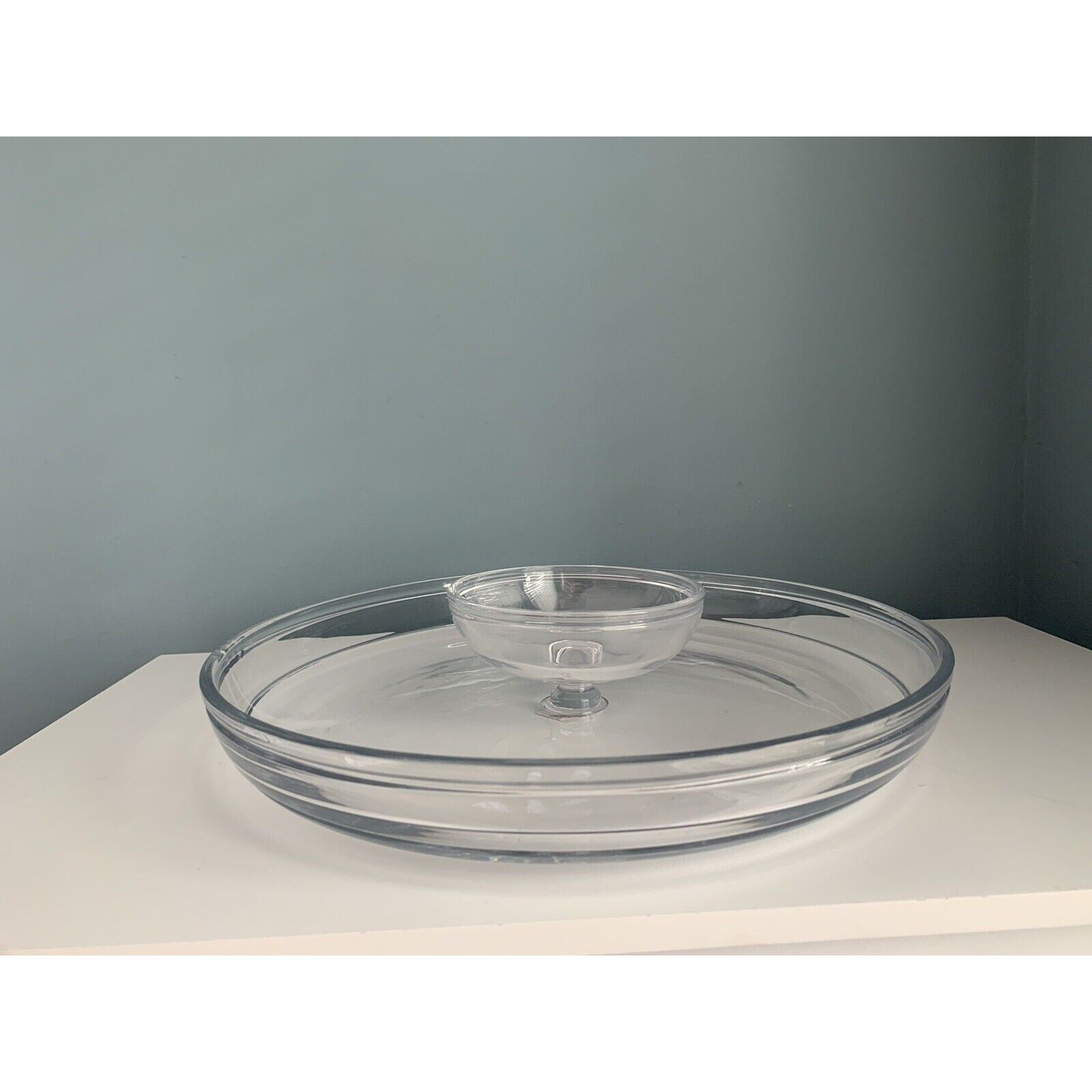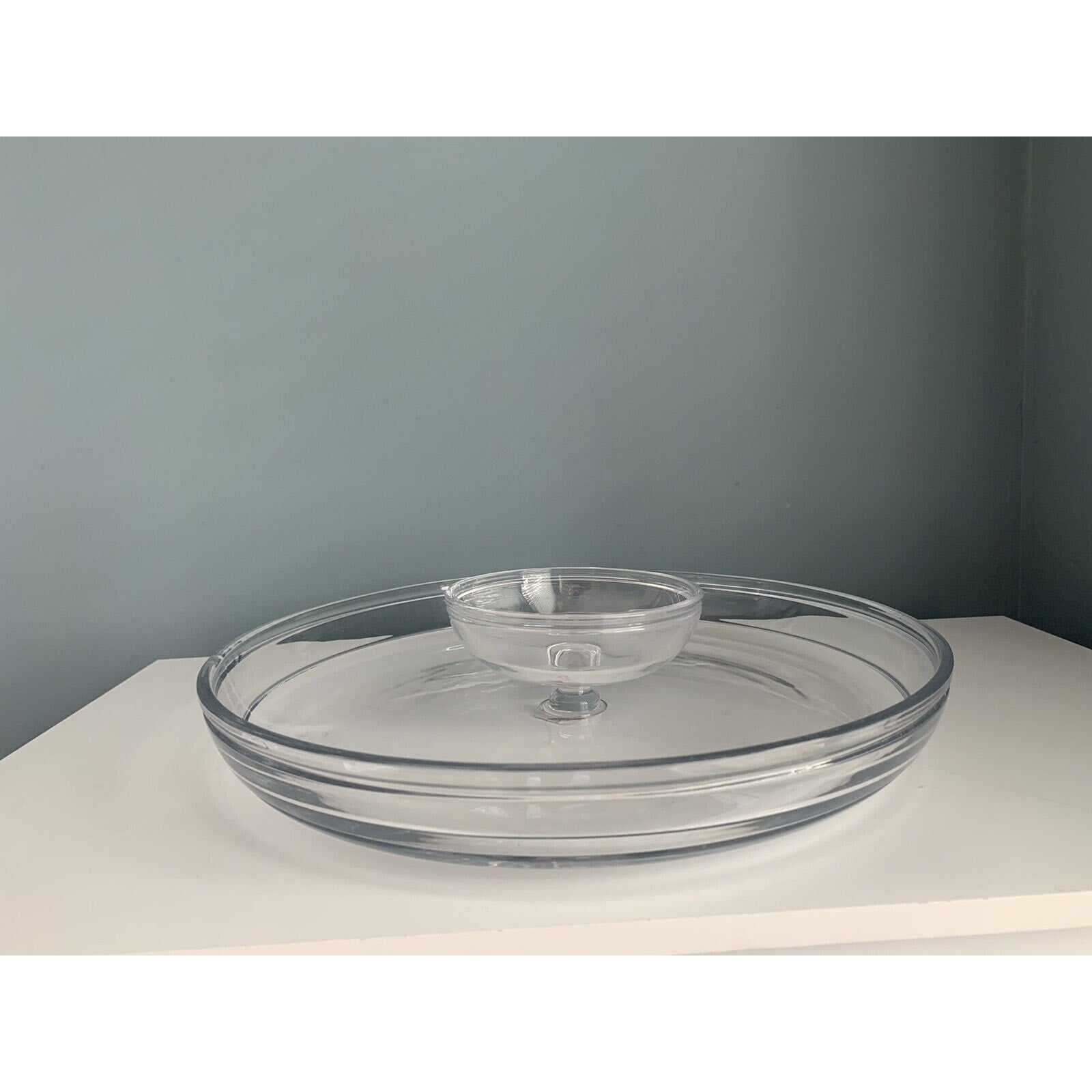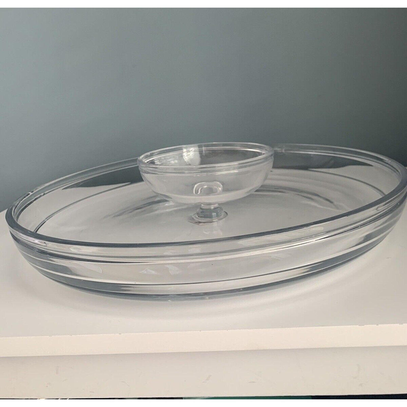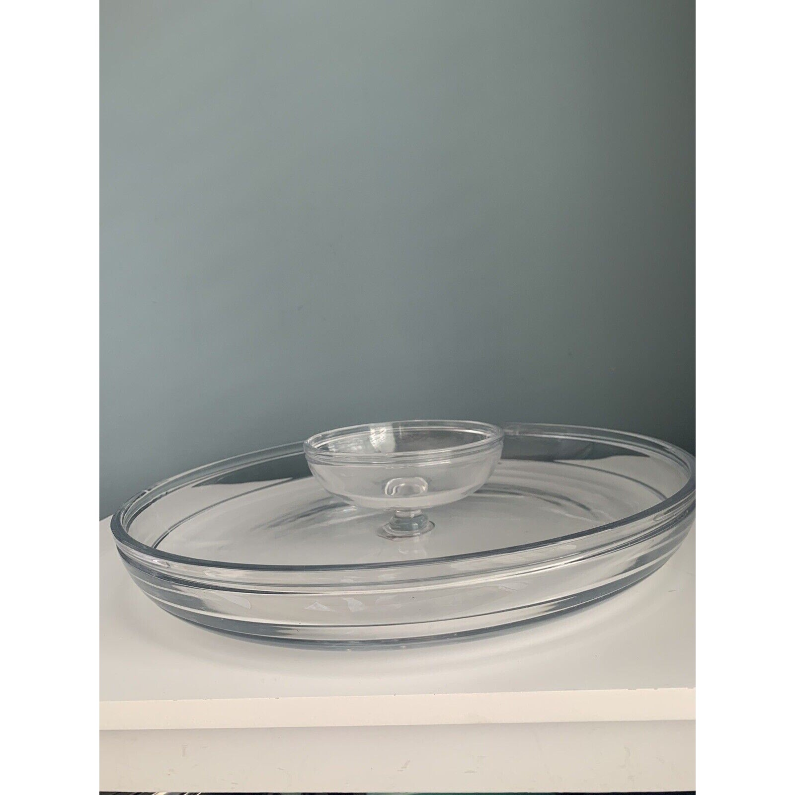 NWT Pottery Barn Glass Grace Chip & Dip Tray Platter Serving Dish 13 3/4” W