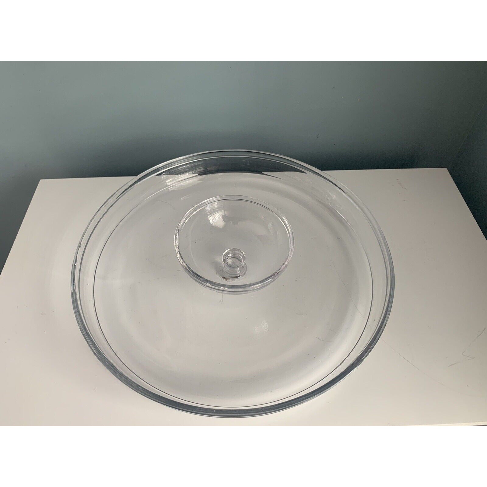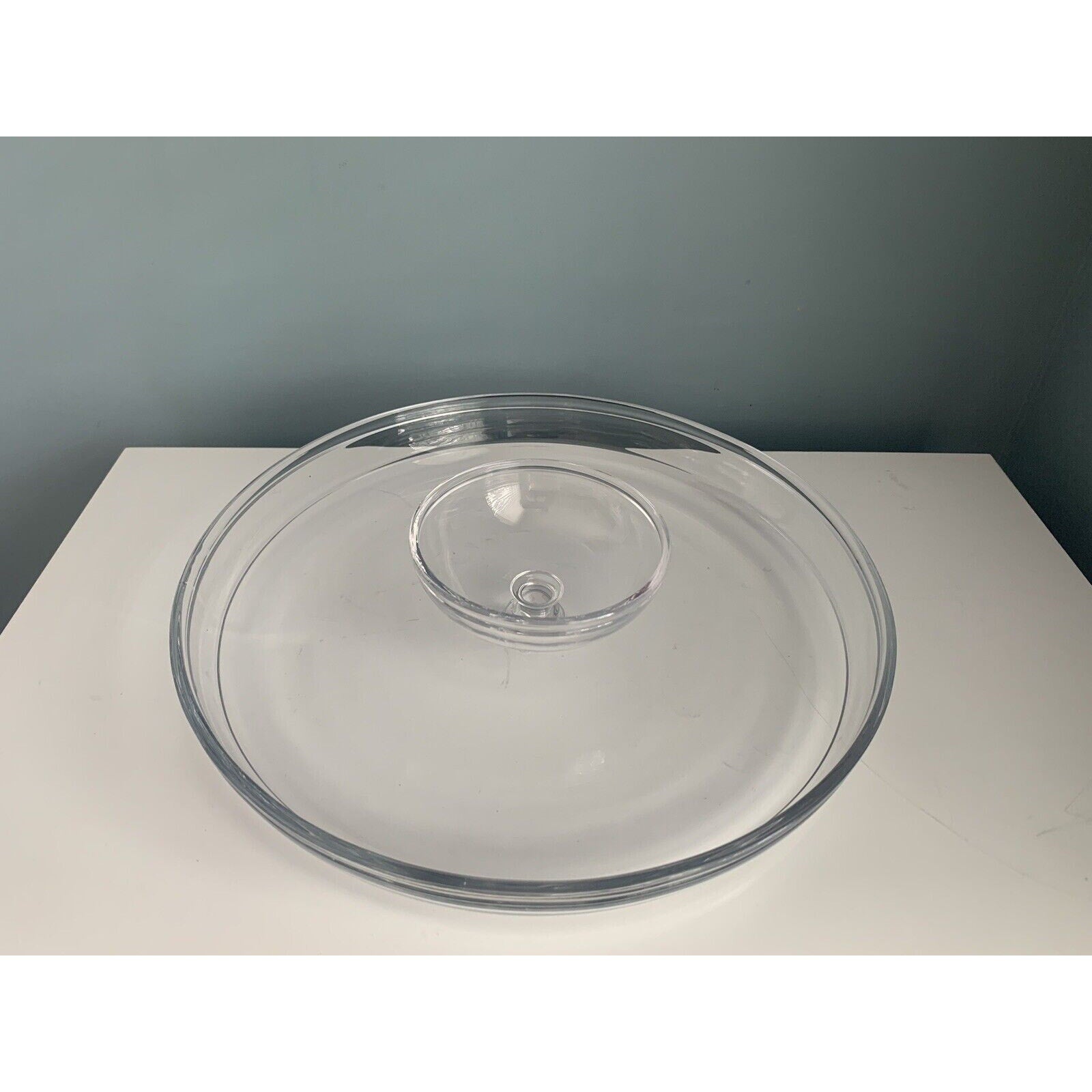 This is a new Pottery Barn serving dish from the Grace product line. The glass chip and dip tray platter measures 13 3/4 inches in length and width, with a height of 4 inches. It weighs 6.6 pounds and is perfect for table décor during holiday and seasonal events.