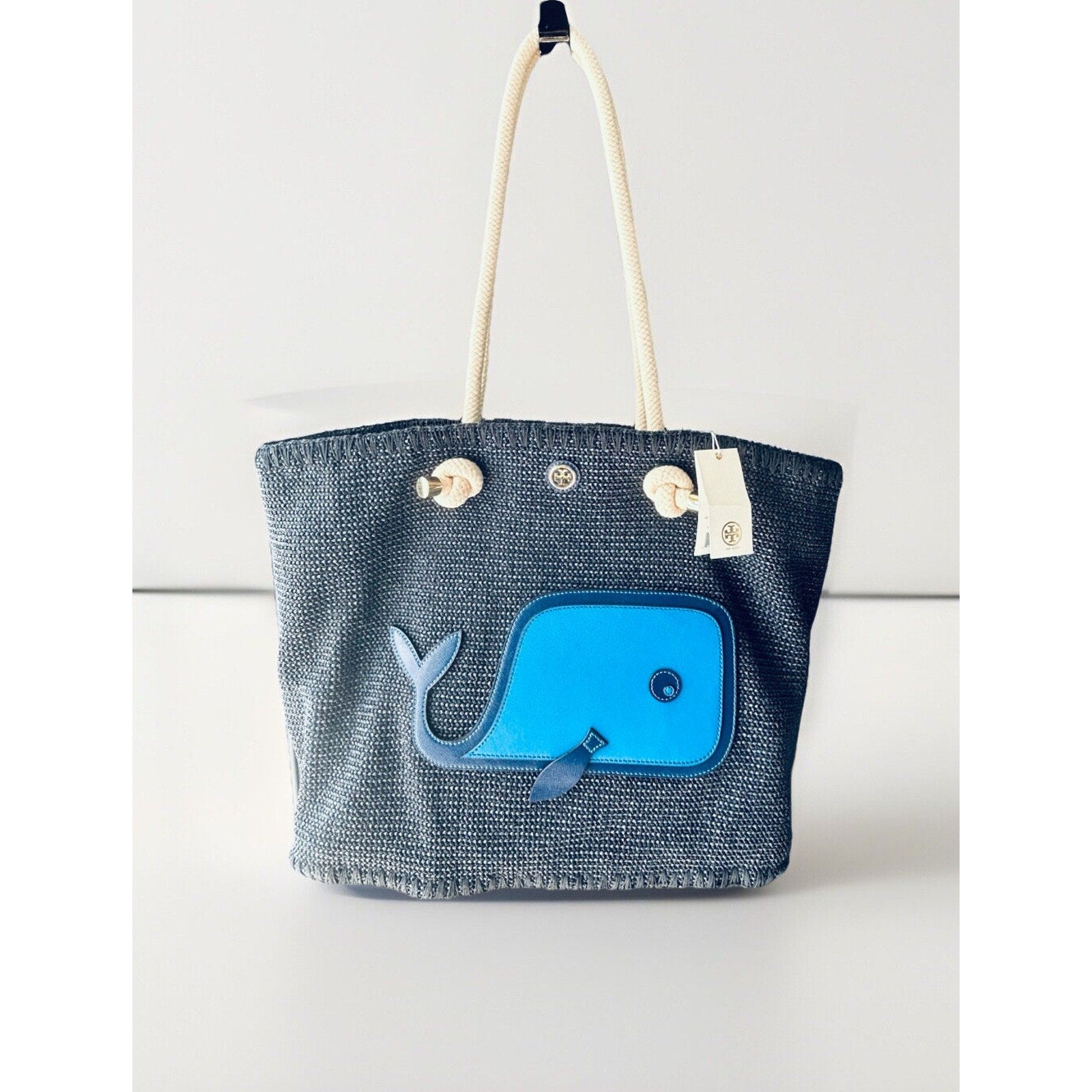 NWT Tory Burch Knotted Whale Tote Navy Blue Handbag Beach Pool Vacation Bag Rare