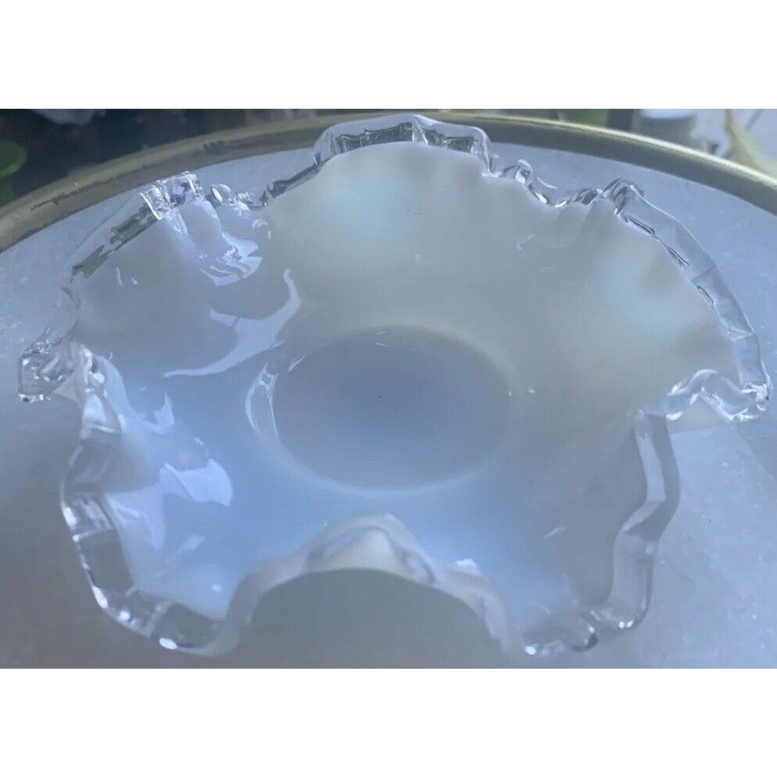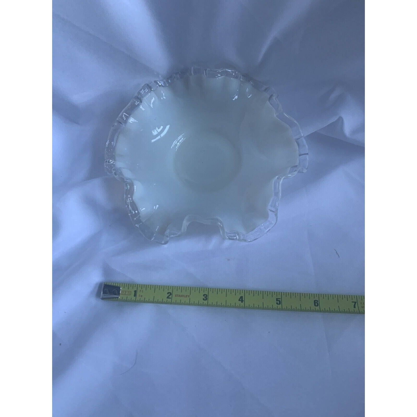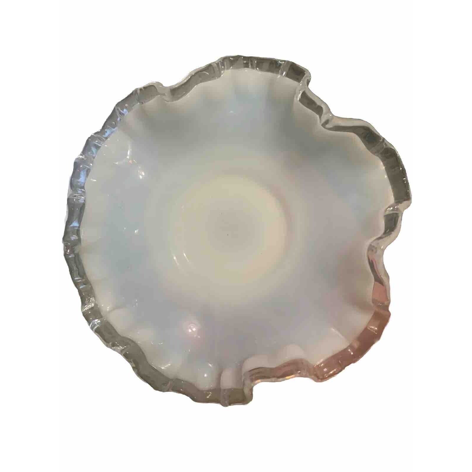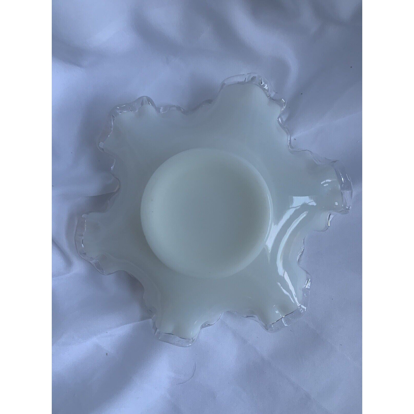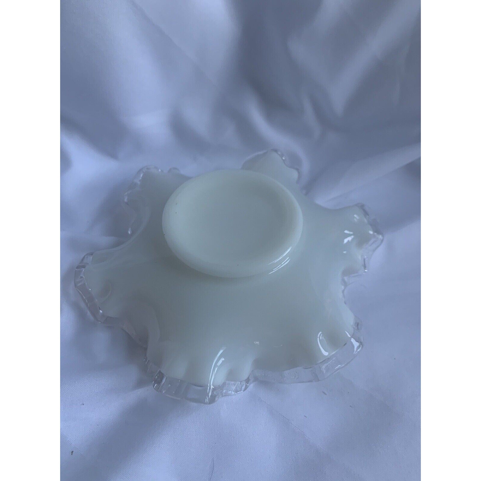 Opalescent Fenton Style Silver Crest White Glass Bonbon Candy Dish
