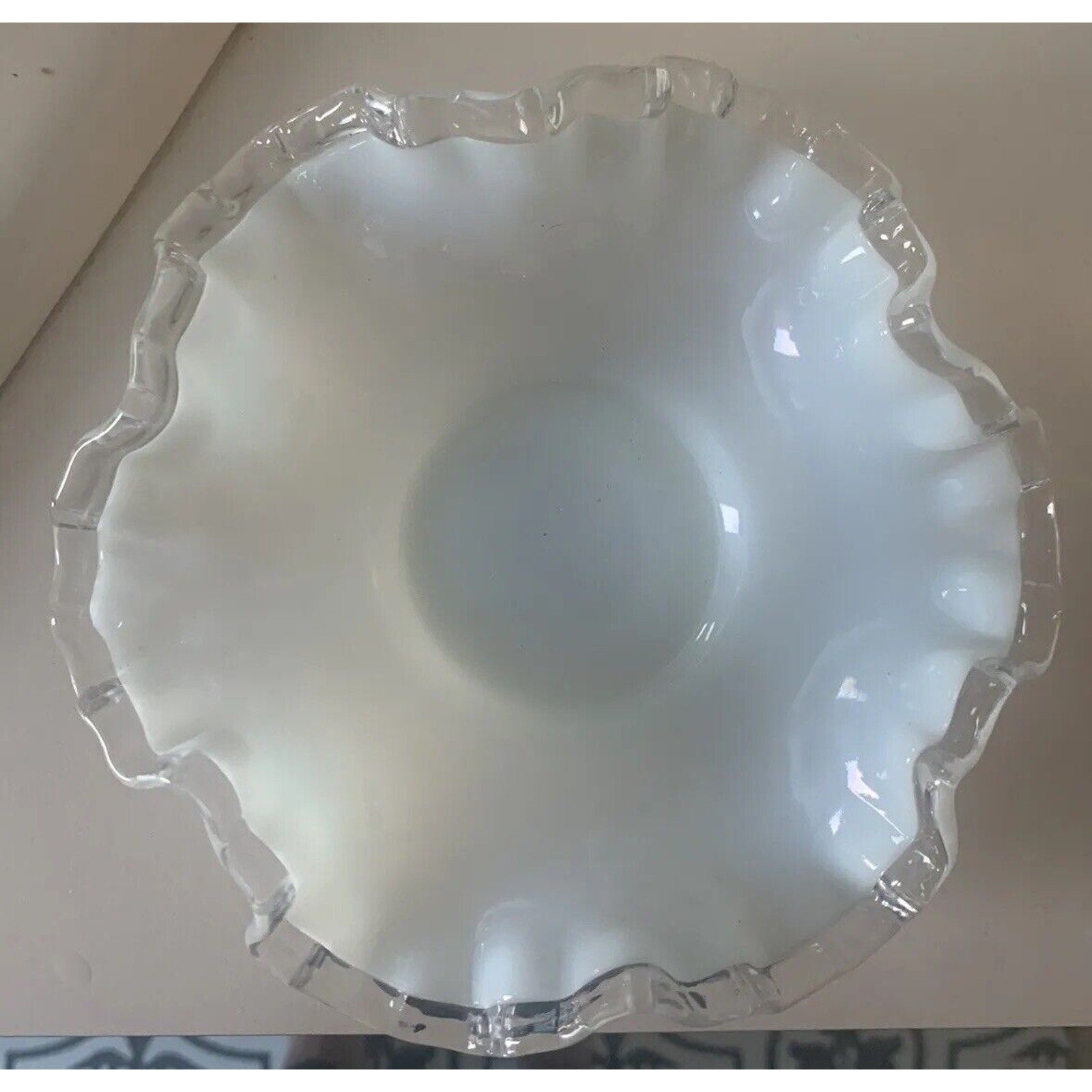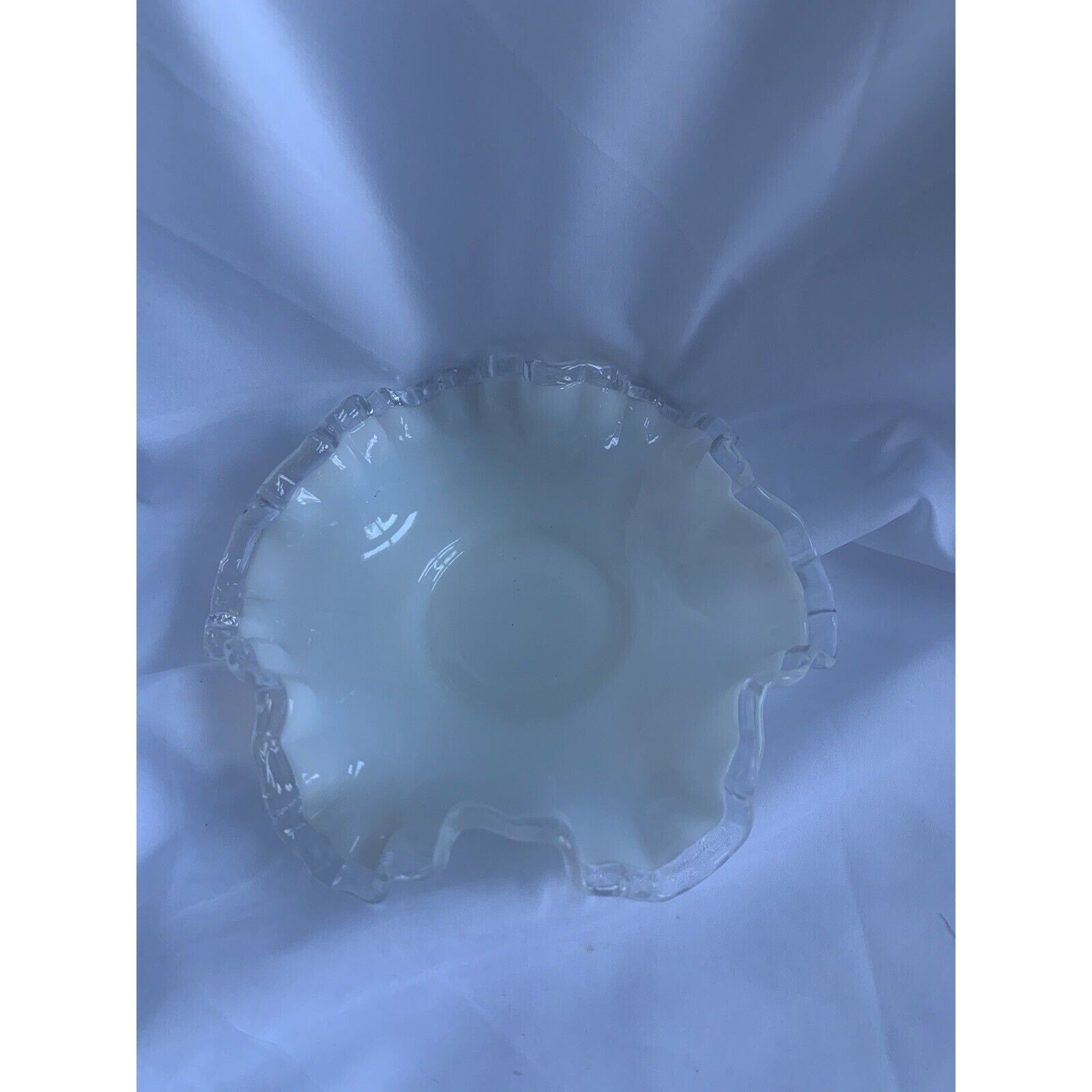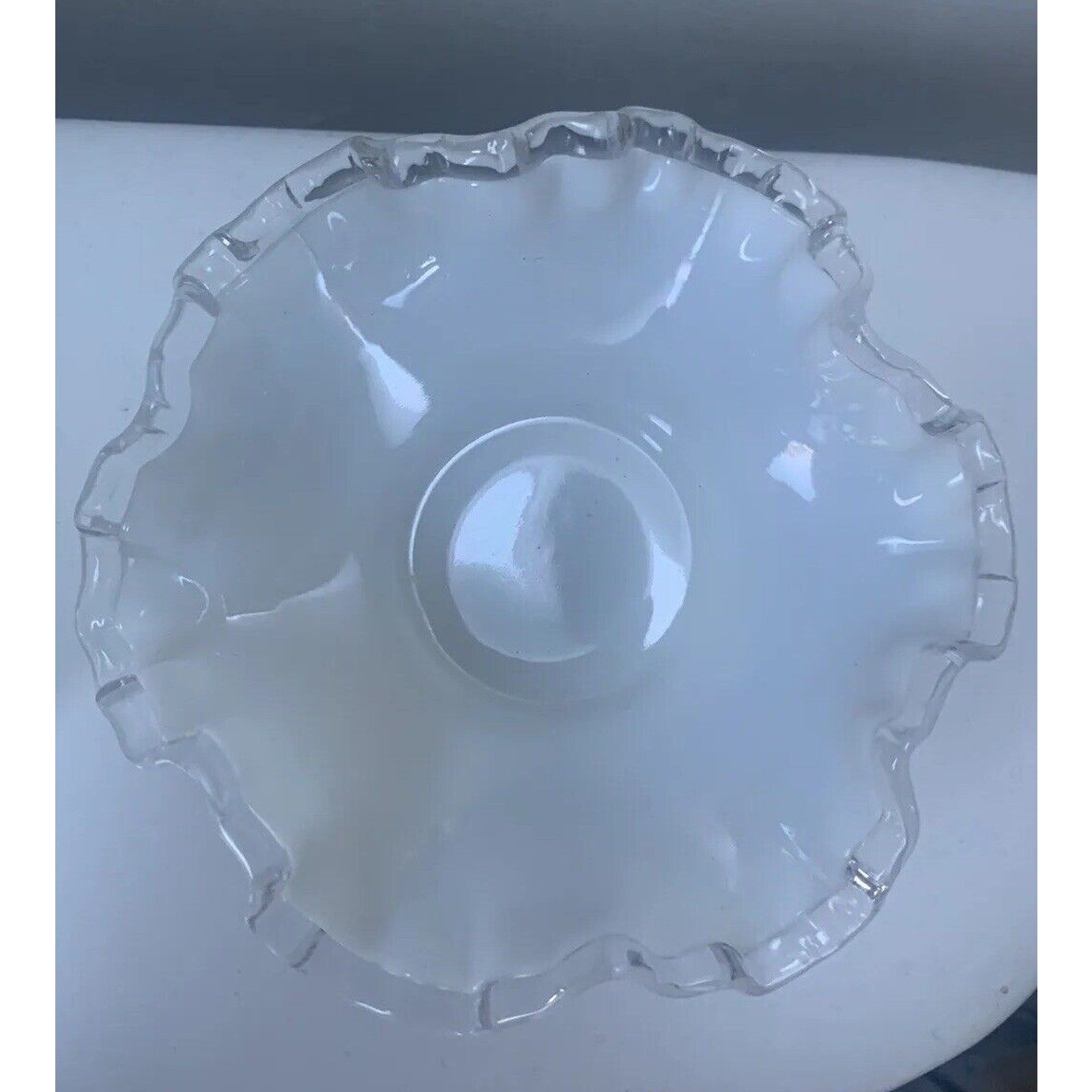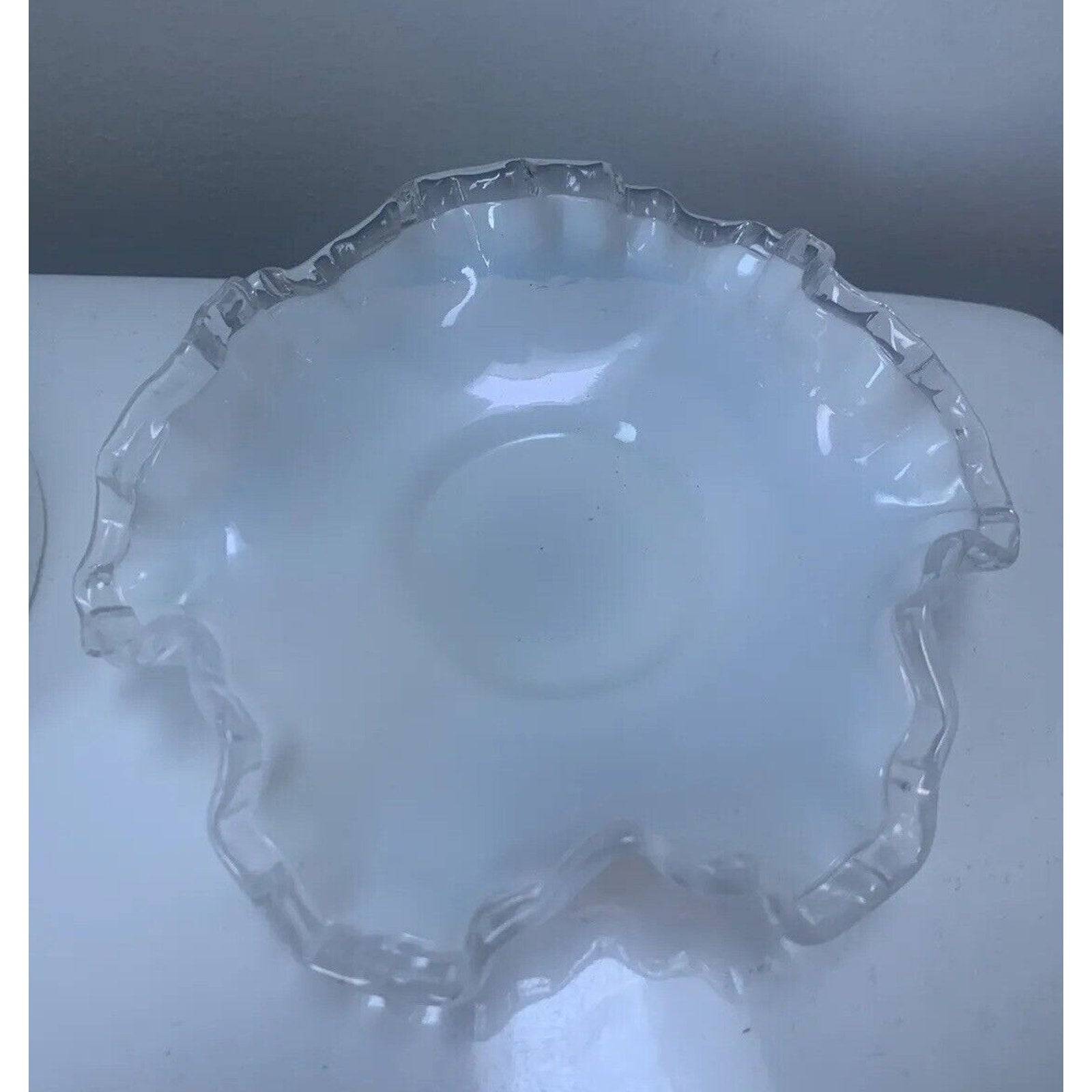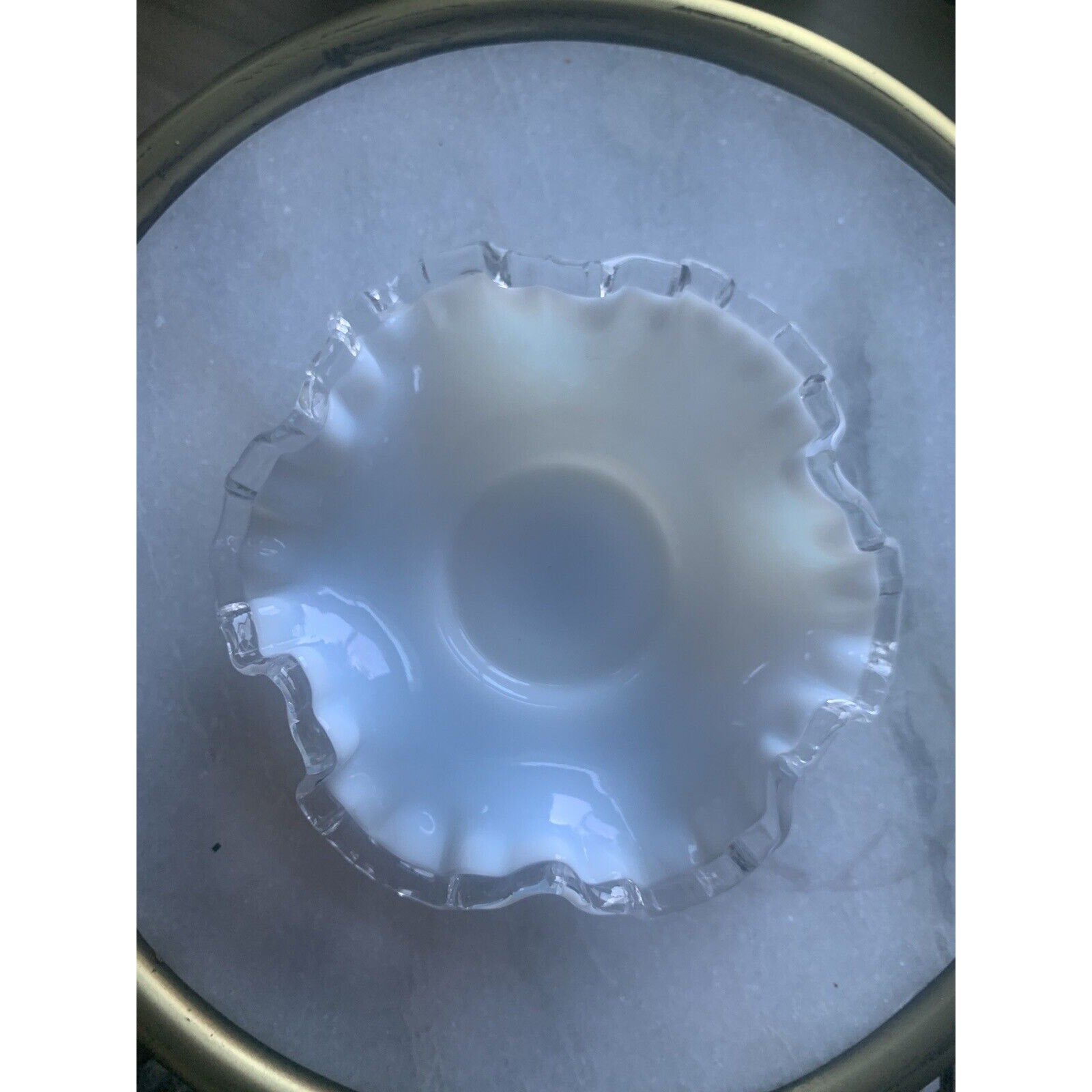 Opalescent Fenton Style Silver Crest White Glass Bonbon Candy Dish