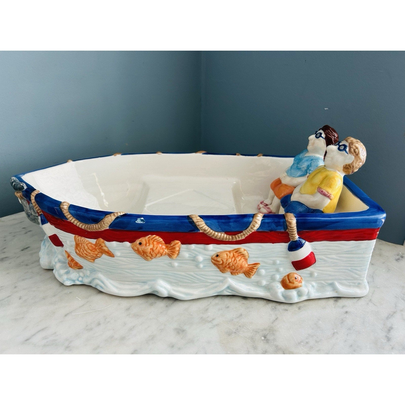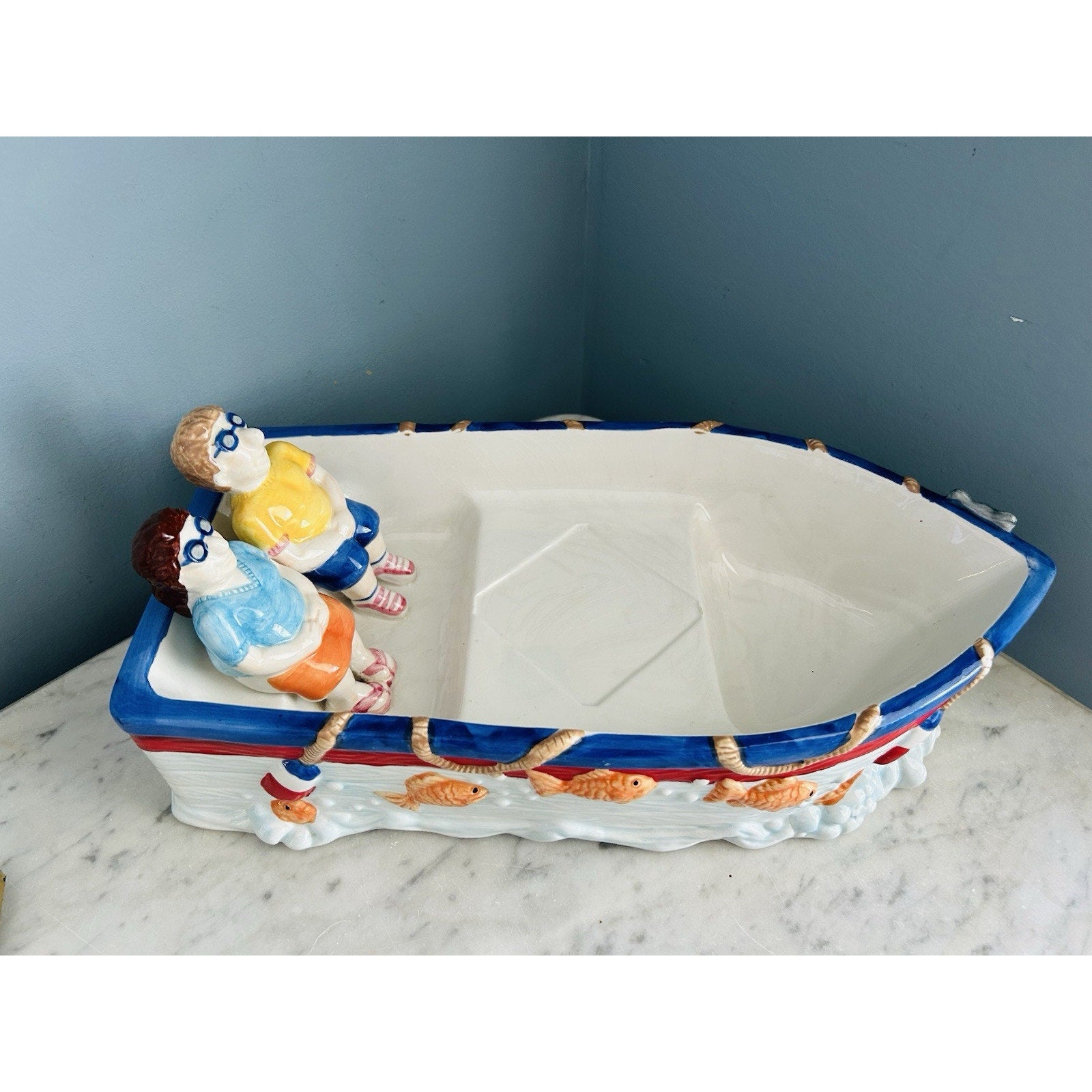 Platter Ceramic Boat Nautical Chip Dip Tray FWC Birthday Party Salsa Dip Beach