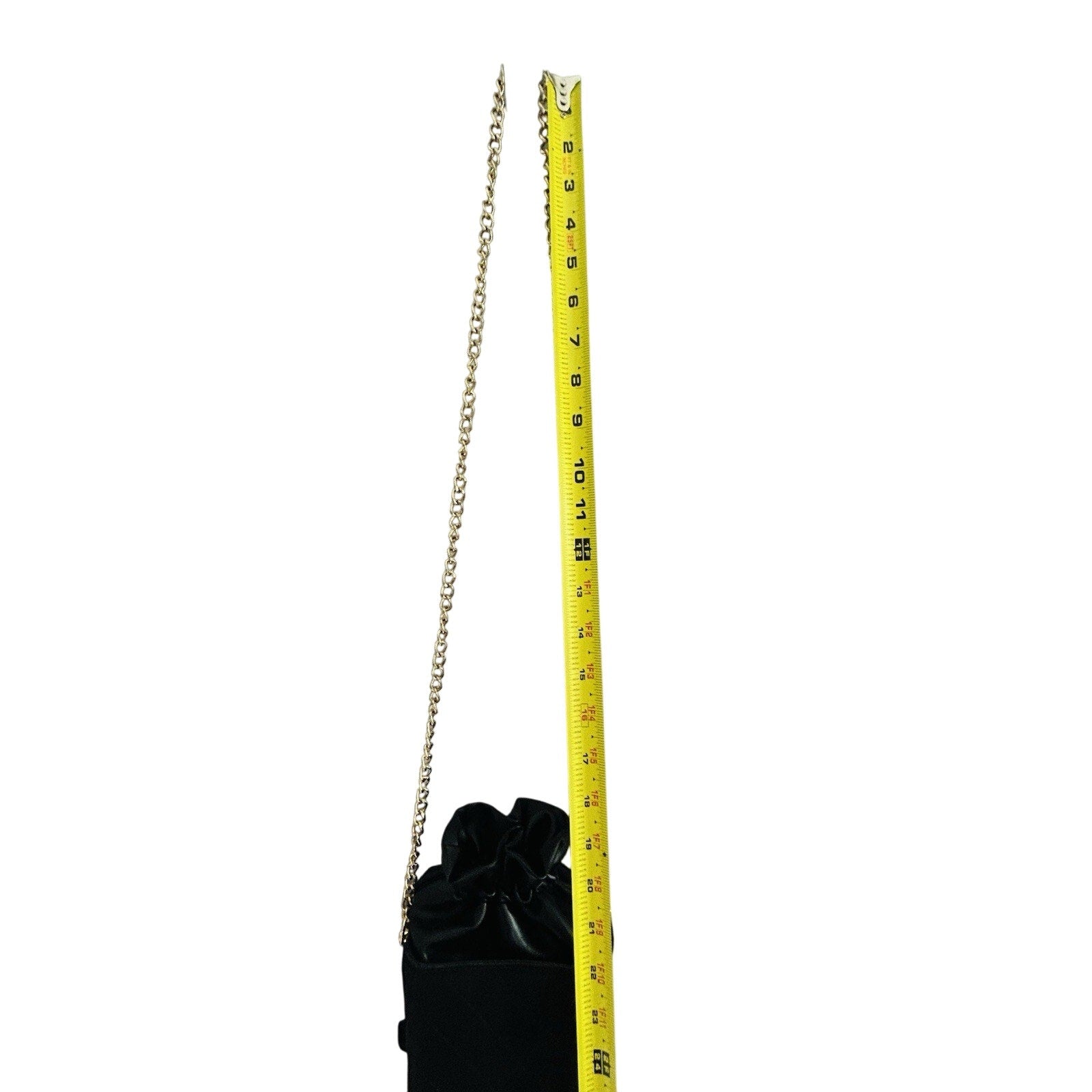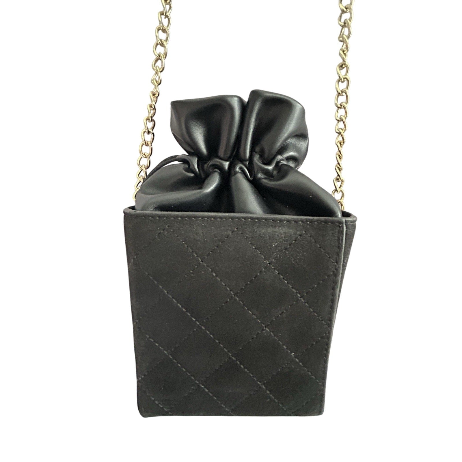 Quilted Mini Drawstring Shoulder Bag Black Pouch Gold Chain Crossbody