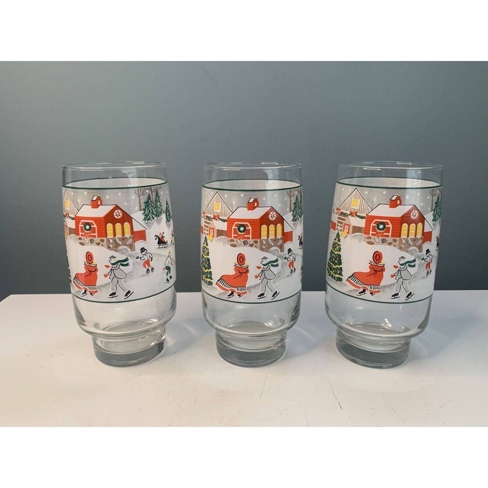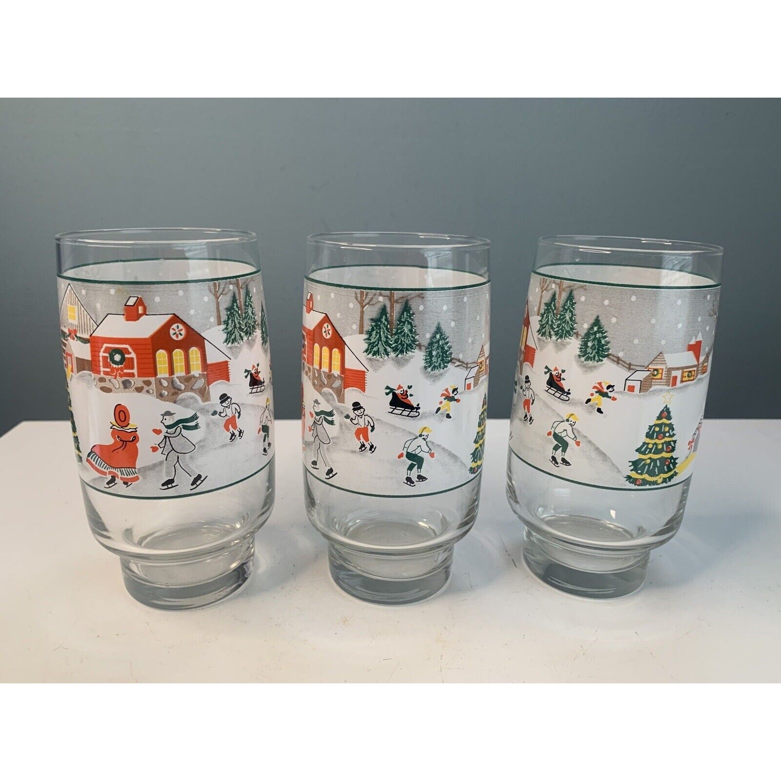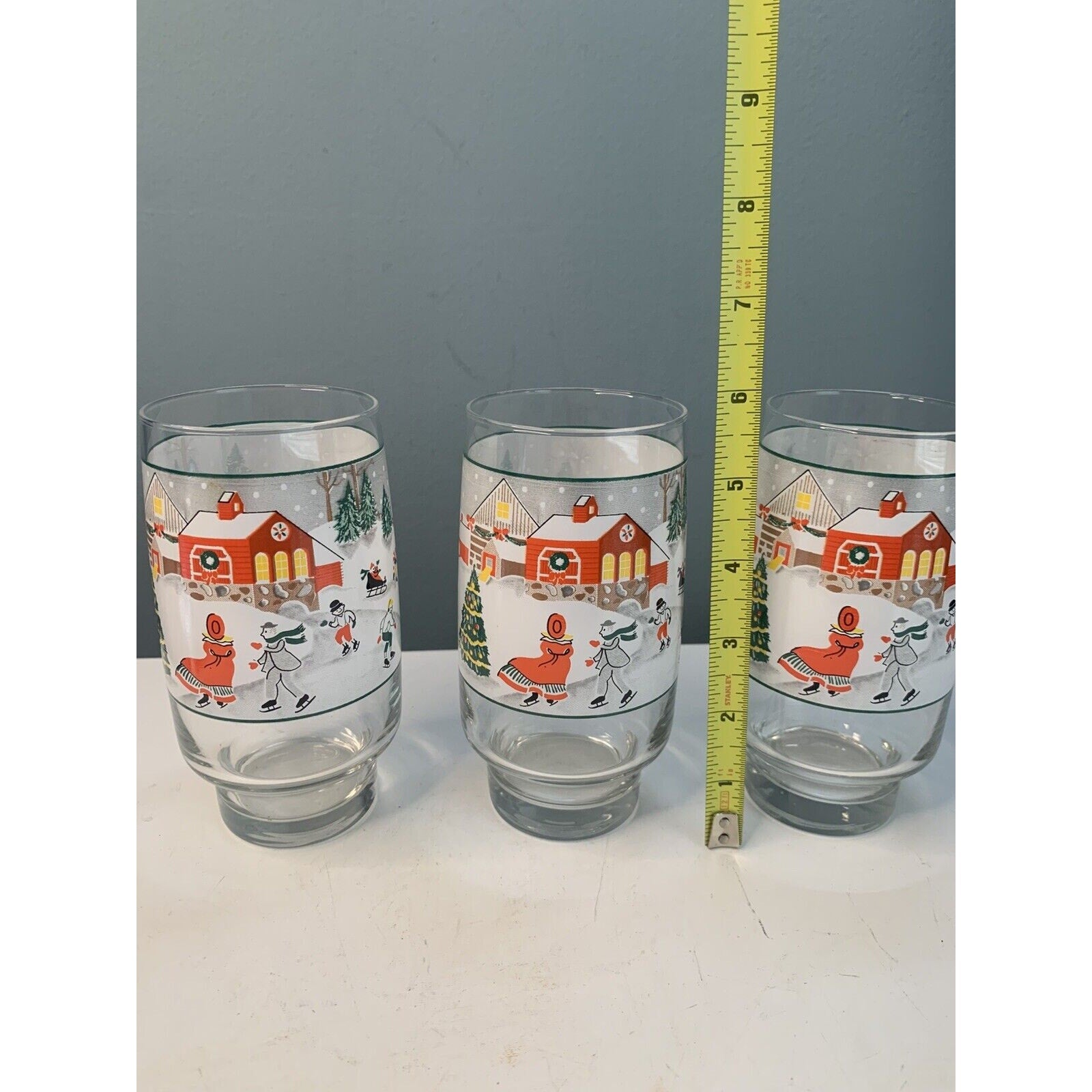 Crafted from high-quality glass, these tumblers are both durable and elegant. The set includes three tumblers, each measuring 6" in height and weighing 1 pound and 7 ounces. Ideal for any Christmas occasion, these original, licensed reproduction tumblers are sure to impress your guests.