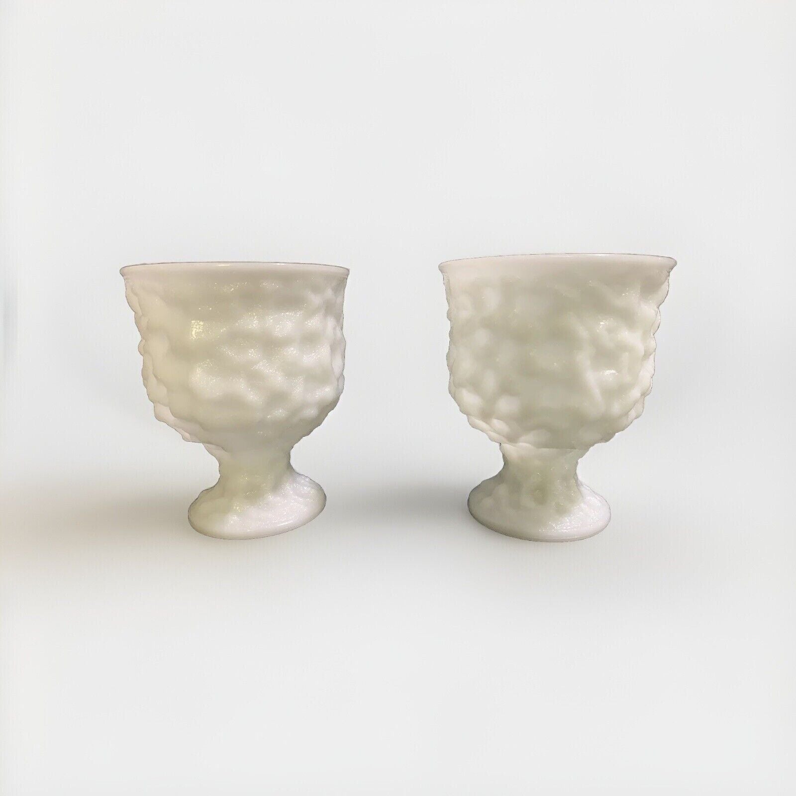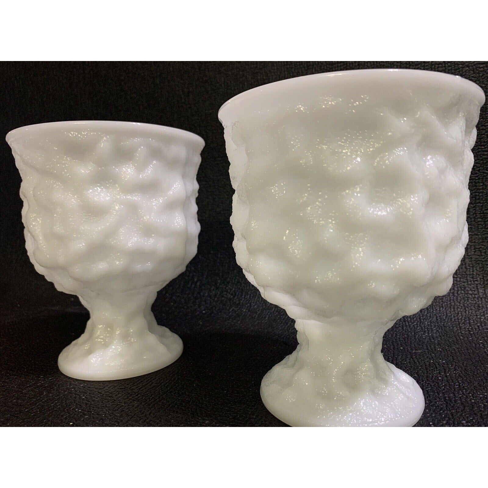 Set of 2 Brody Co Milk Glass crinkled pedestal planter Vases M3000 White Vintage