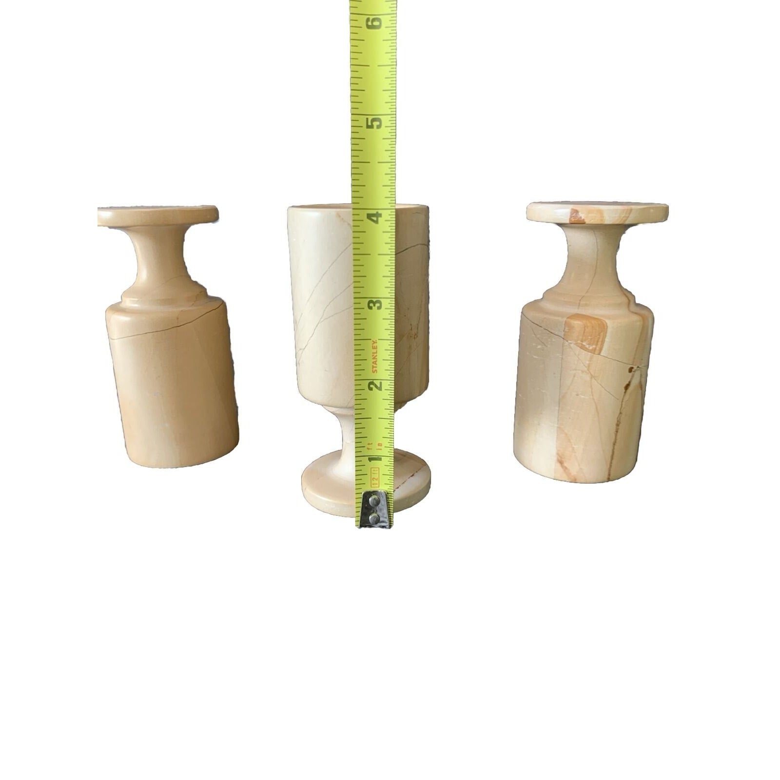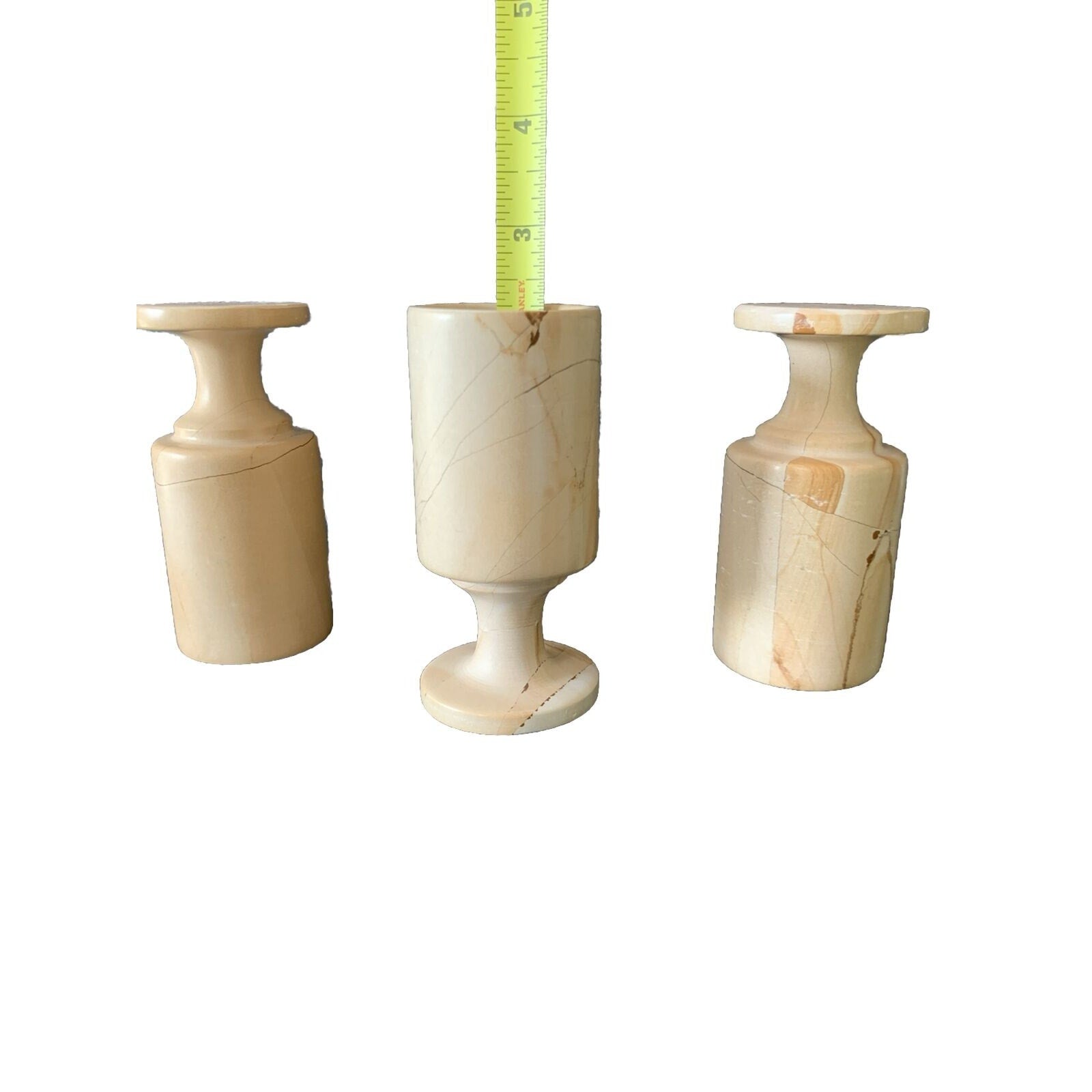 Set Of 3 Marble Onyx Shot Glasses Cups Gorgeous Vintage Hand Made Brown Tan