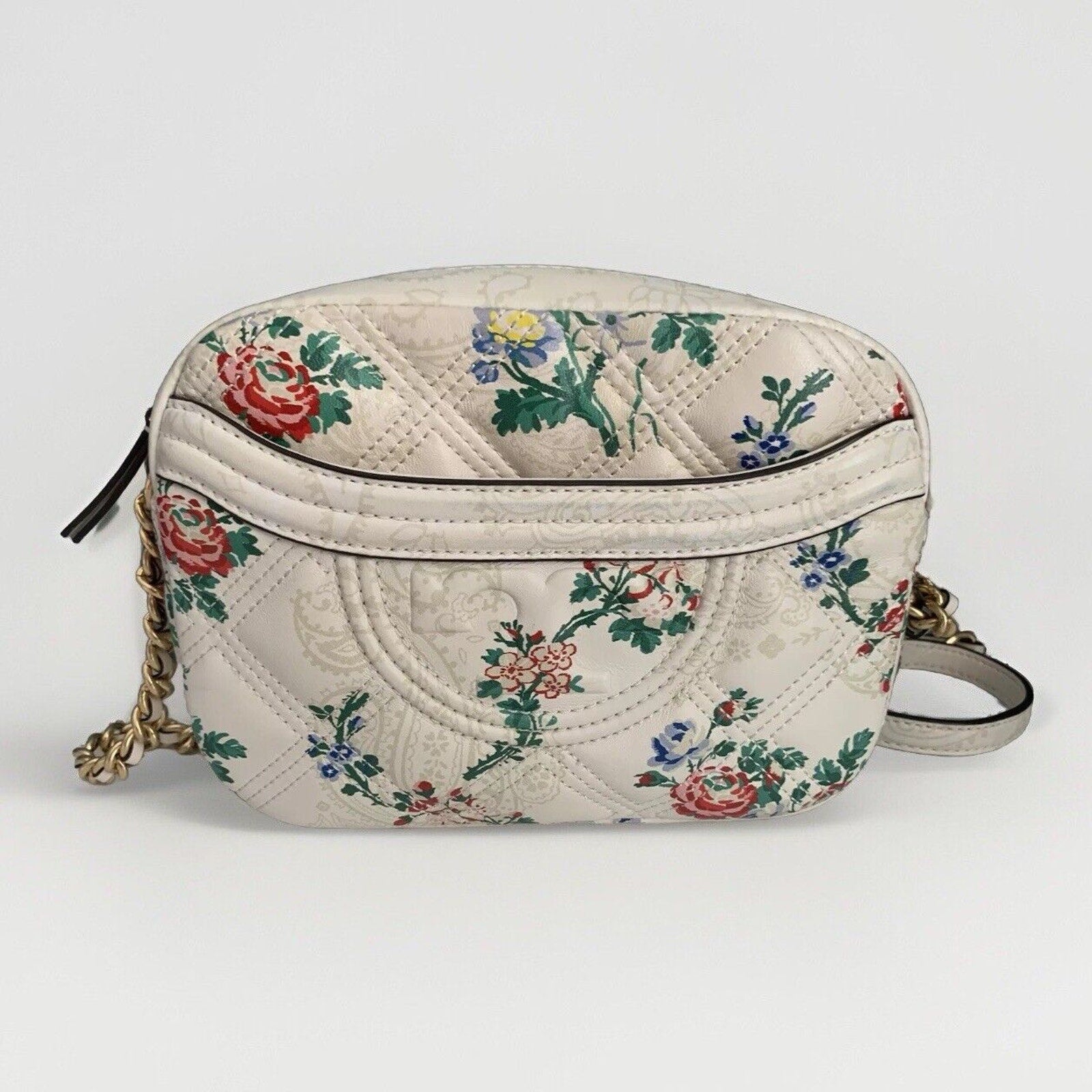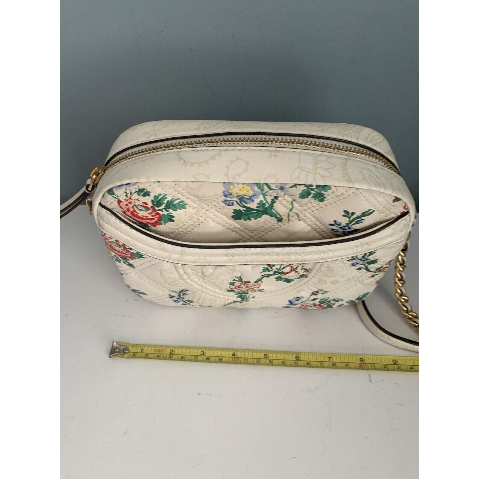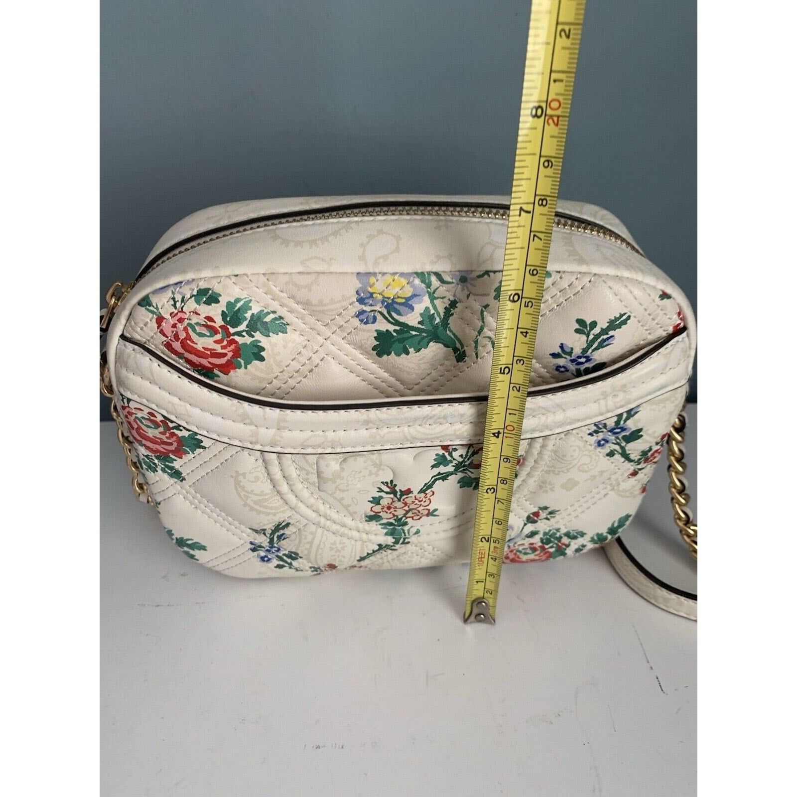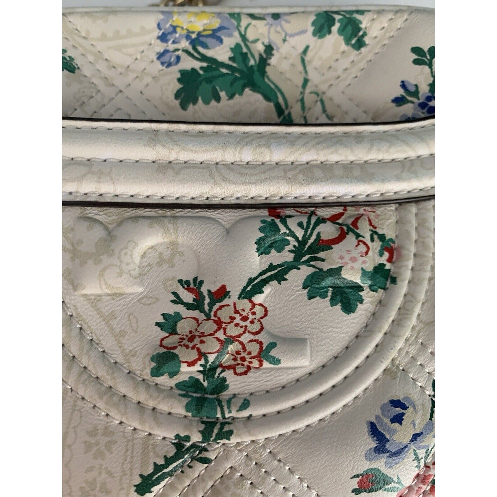 Tory Burch Floral Fleming Soft Printed Leather Purse Crossbody Bag Quilted Ivory