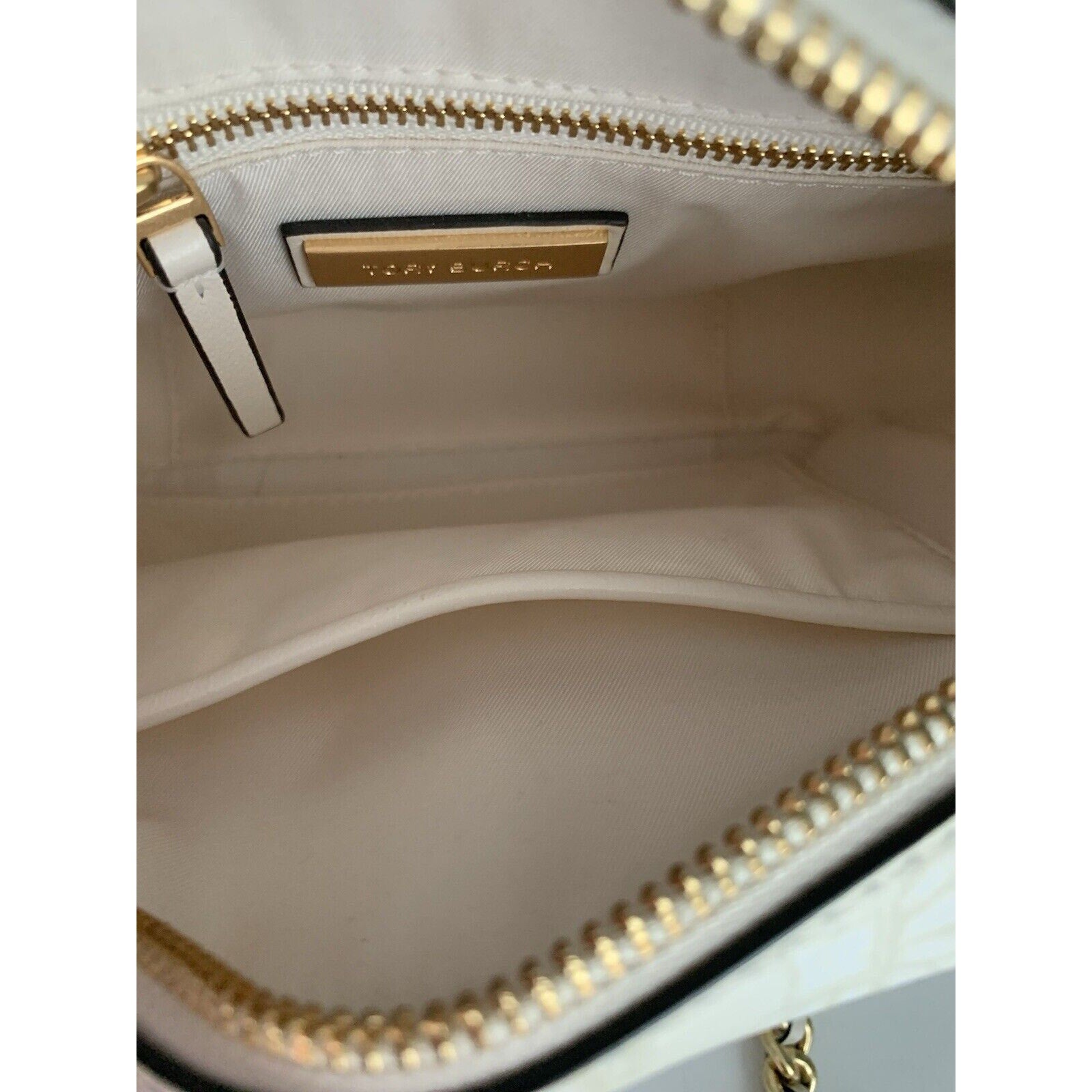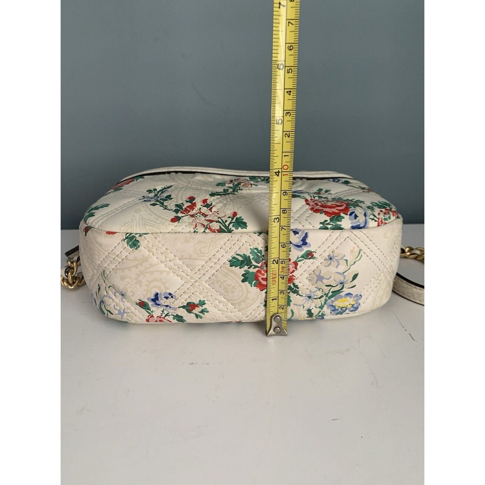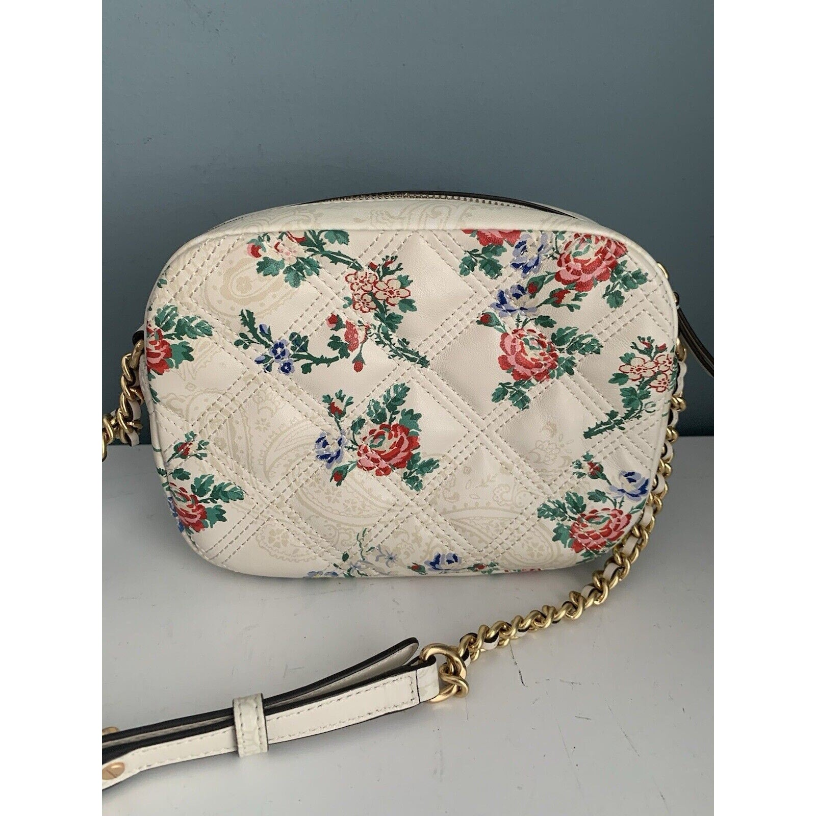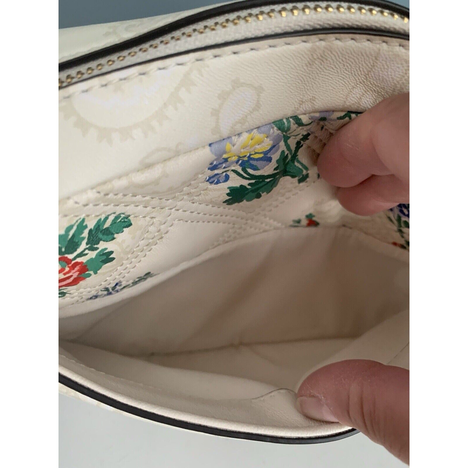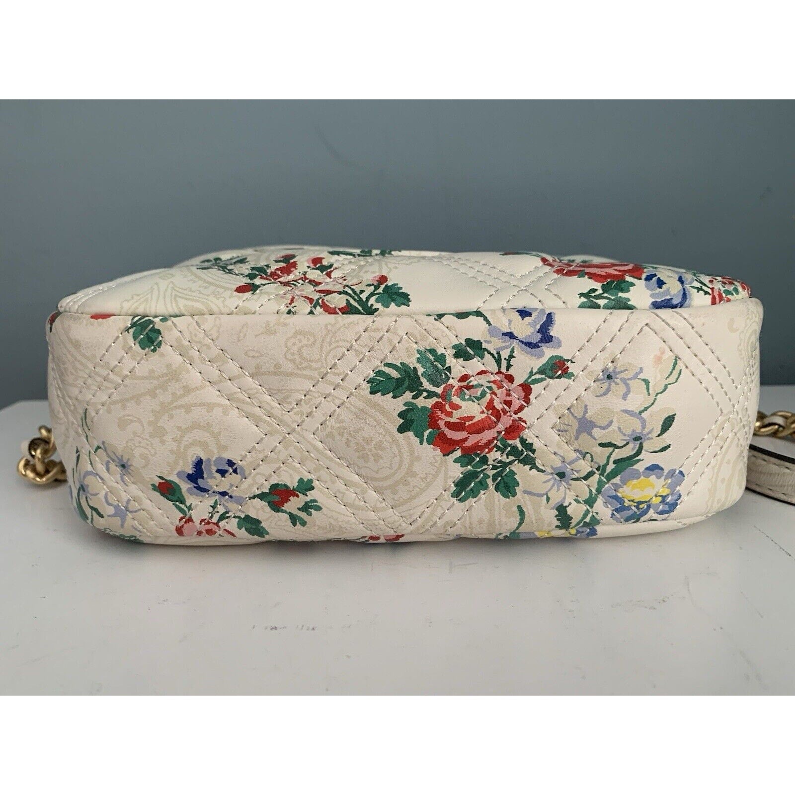 Tory Burch Floral Fleming Soft Printed Leather Purse Crossbody Bag Quilted Ivory