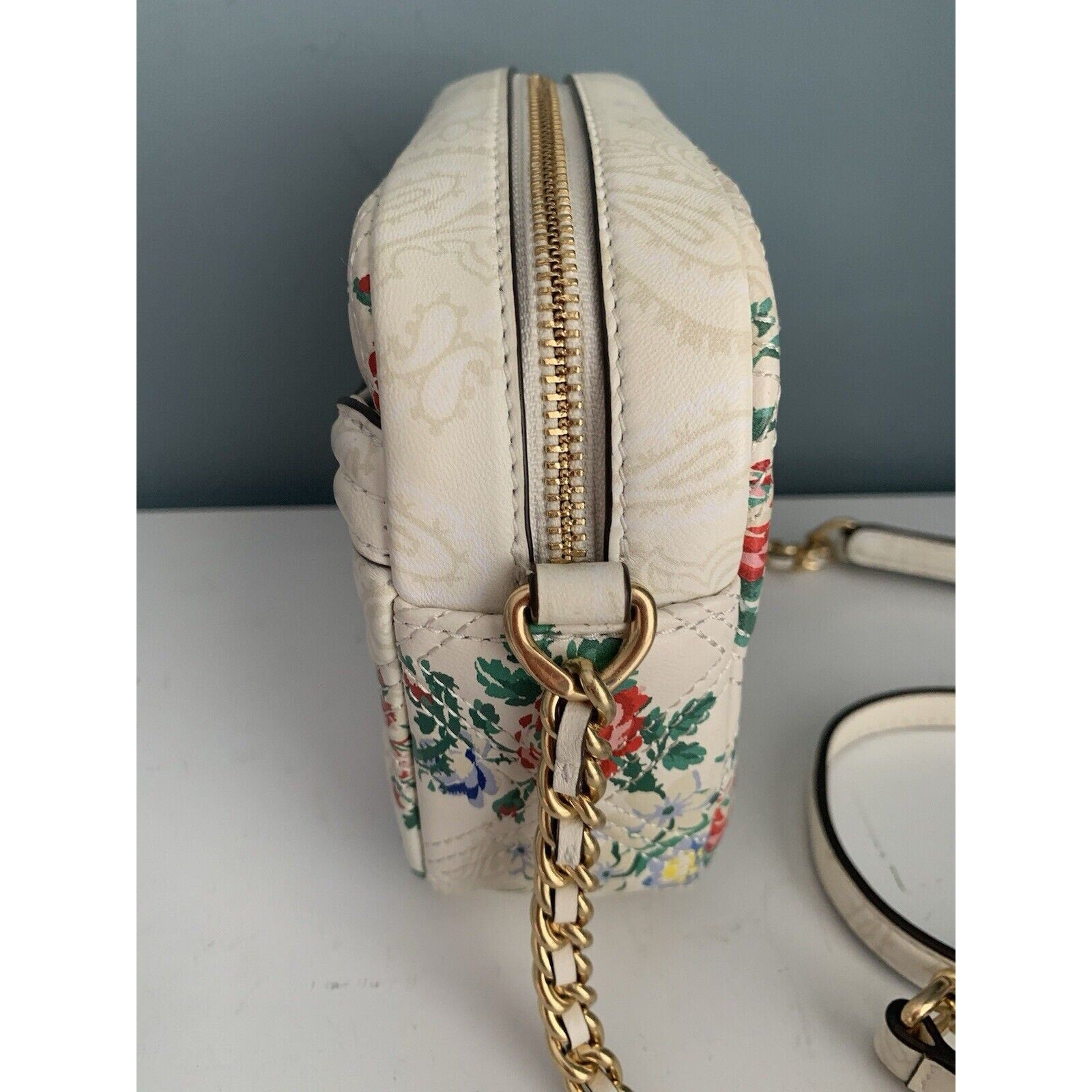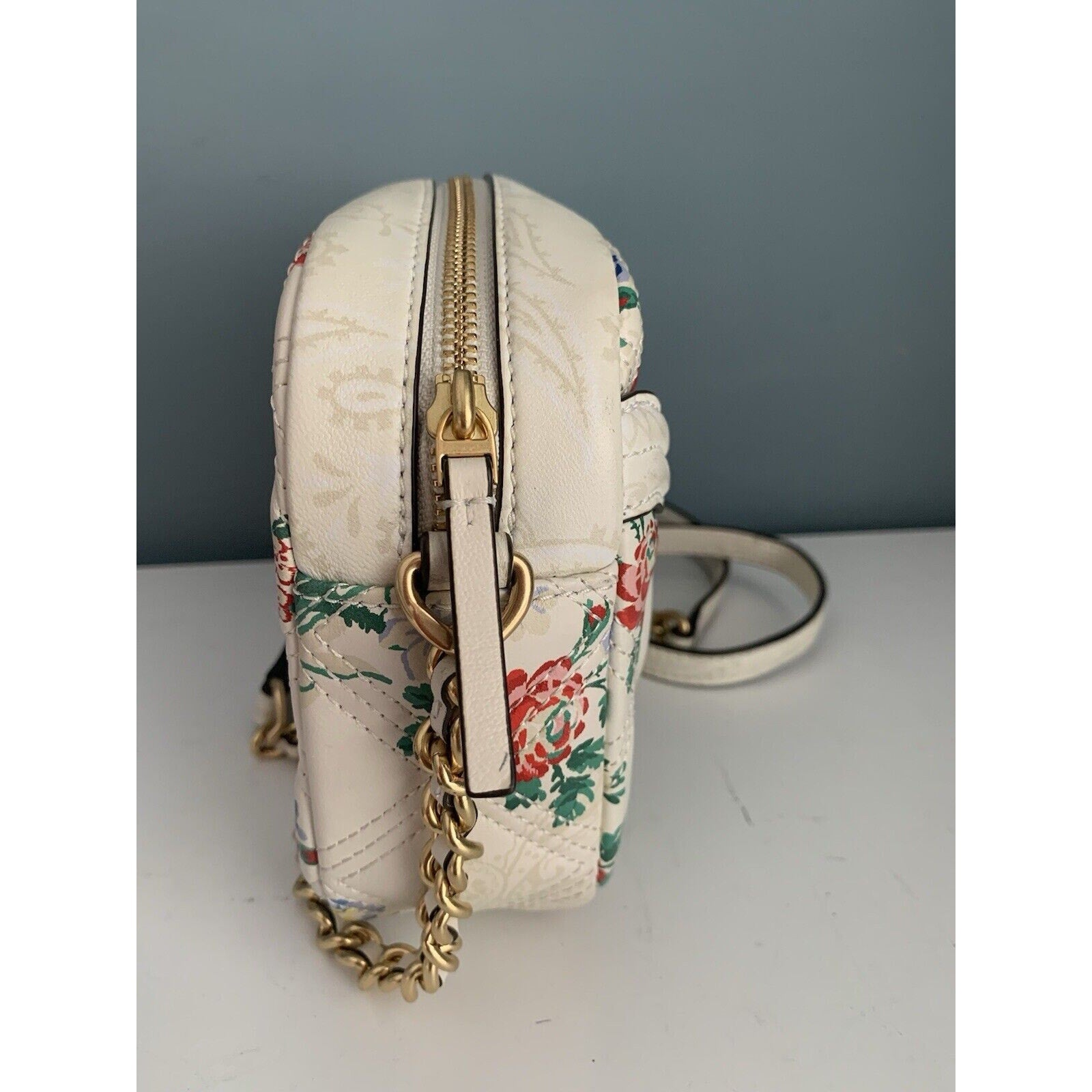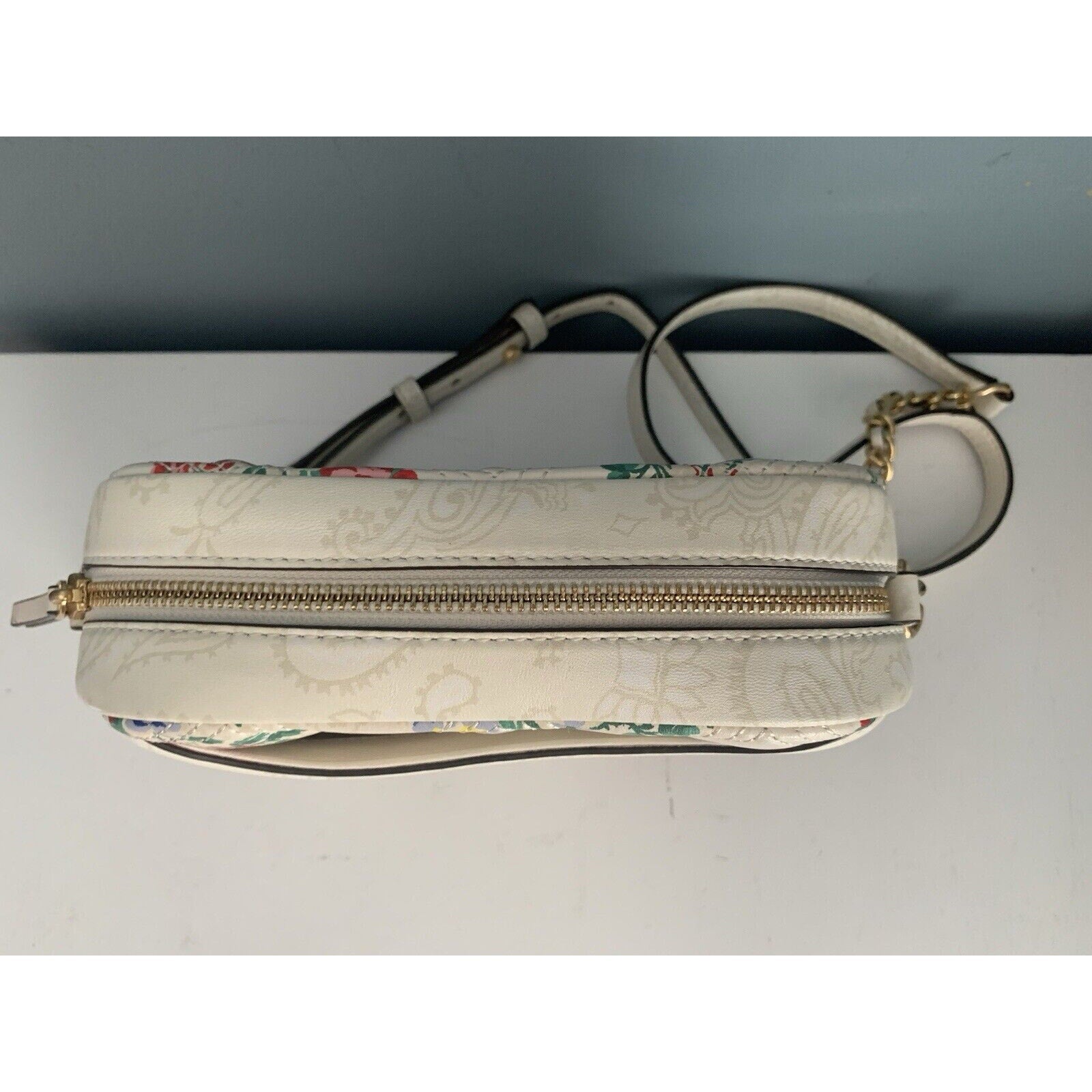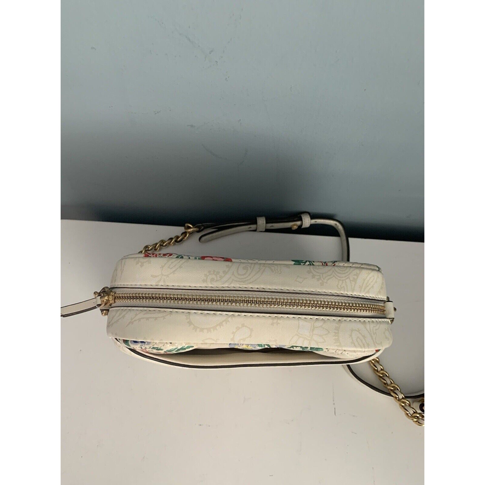 Tory Burch Floral Fleming Soft Printed Leather Purse Crossbody Bag Quilted Ivory