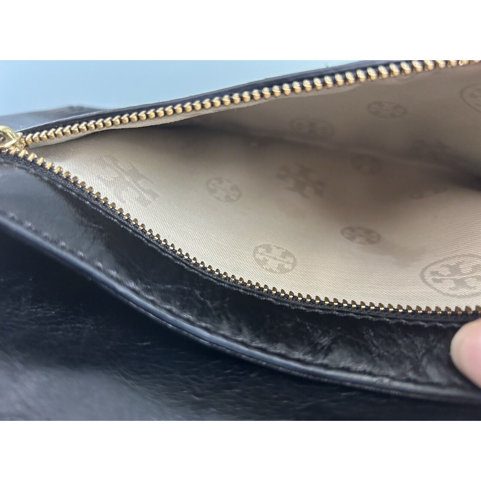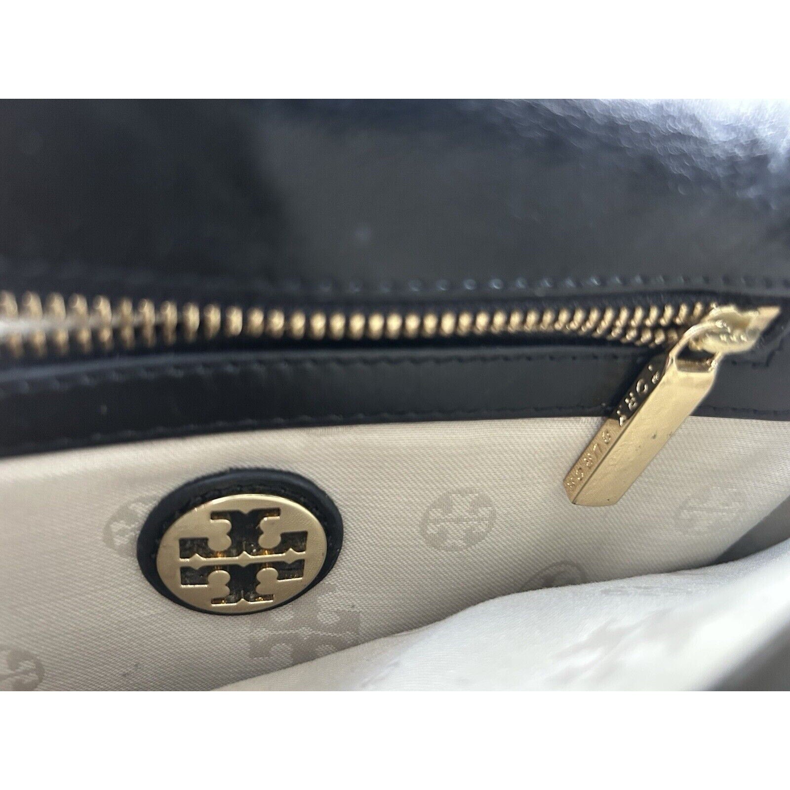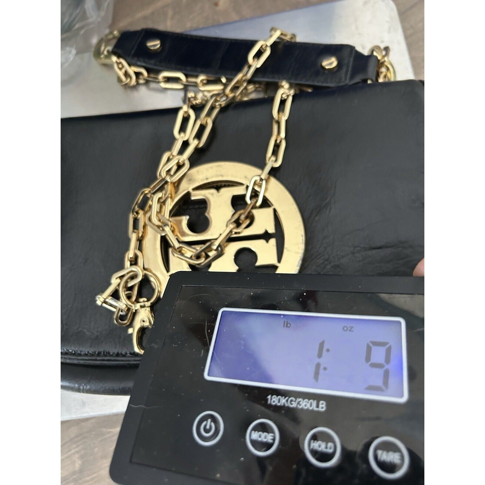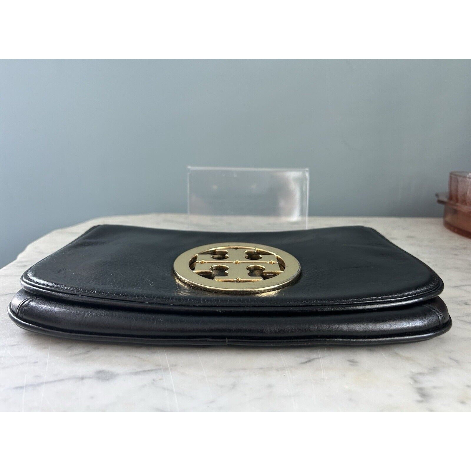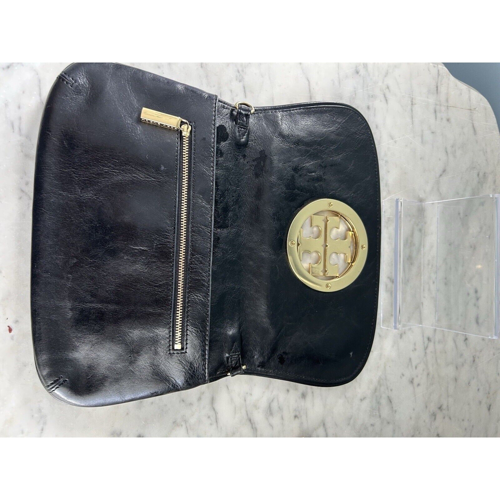 Tory Burch Reva Black Leather Purse Detachable Gold Chain Strap Crossbody Clutch