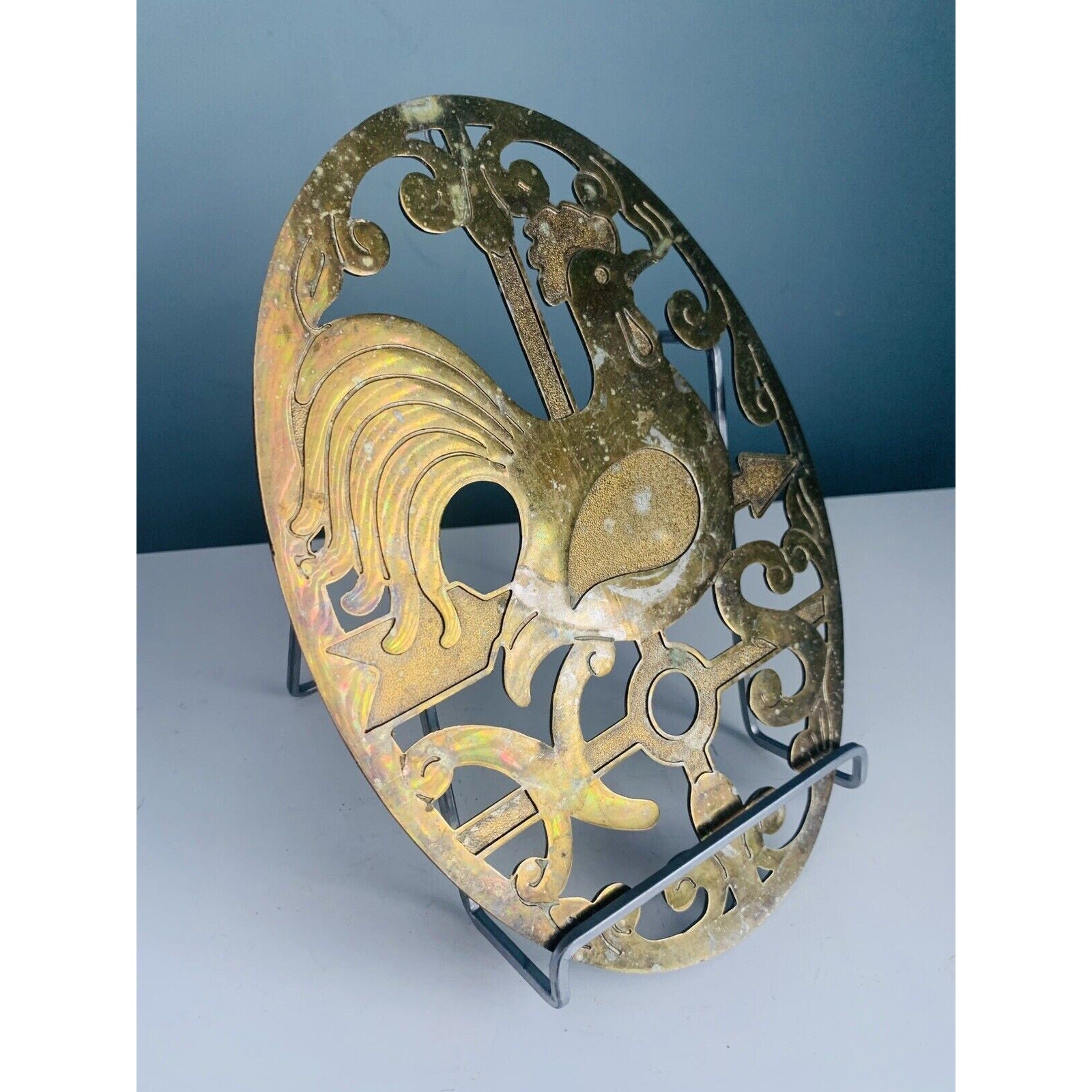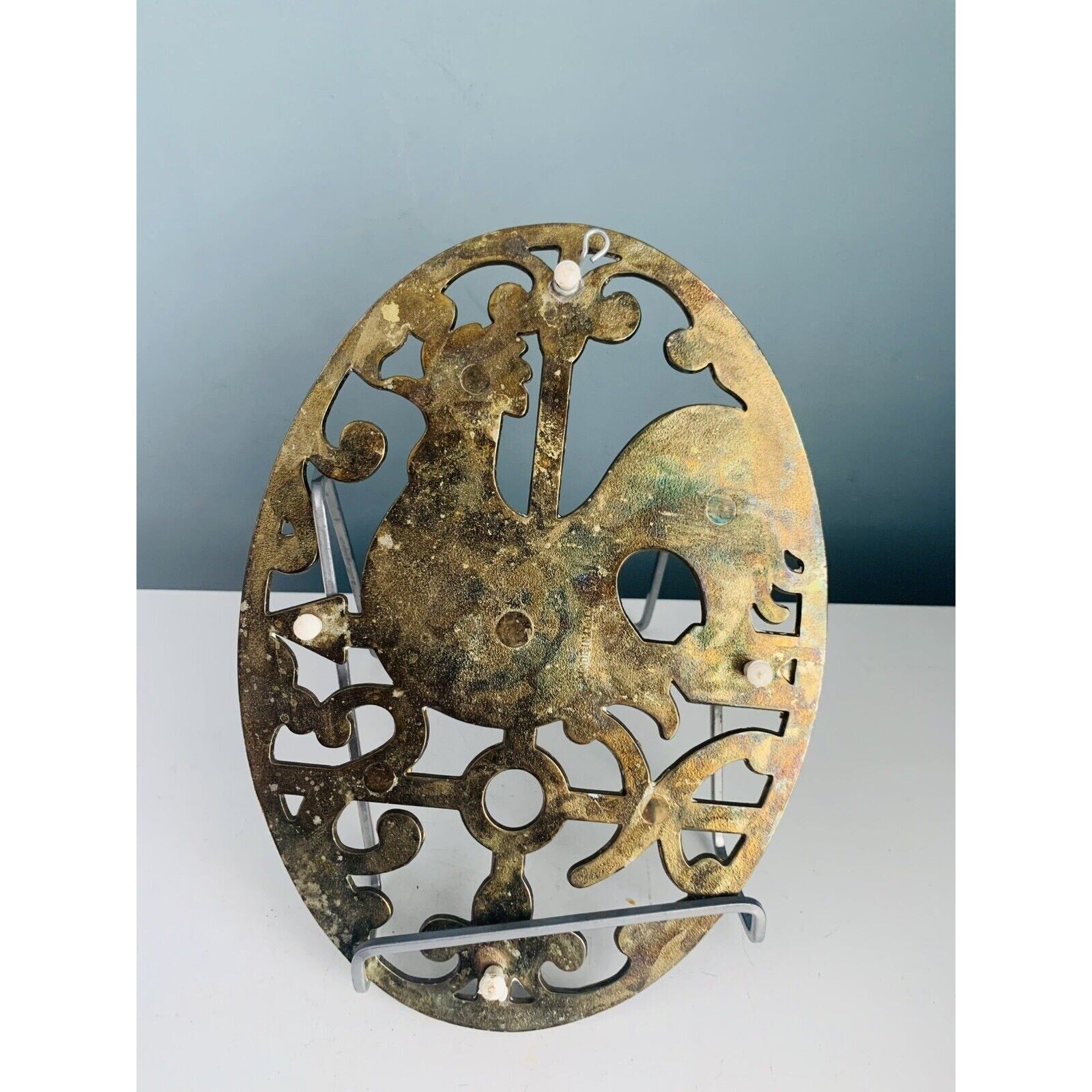 Trivet Hot Plate Rooster Silver Plate Oval Kitchen Wall Decor Made In Italy