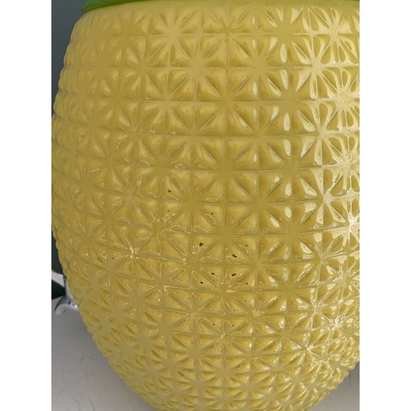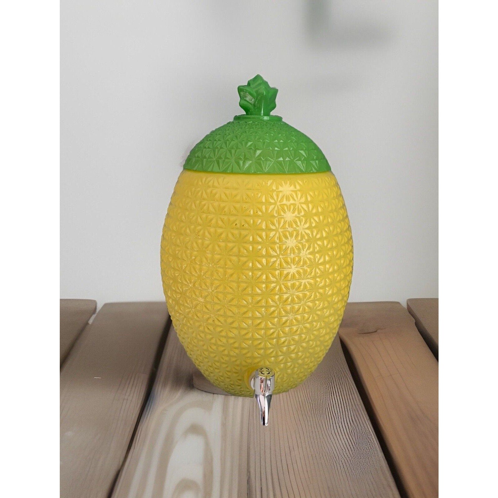 This unique and stylish Two's Company Pineapple Glass Beverage Dispenser is perfect for adding a touch of tropical vibe to your kitchen or dining table. The dispenser features a spigot crock design that is both functional and attractive. It is made of high-quality glass material with a painted finish and weighs 6 pounds and 8 ounces.