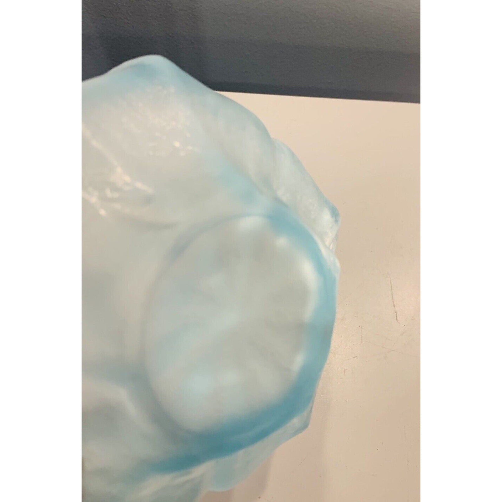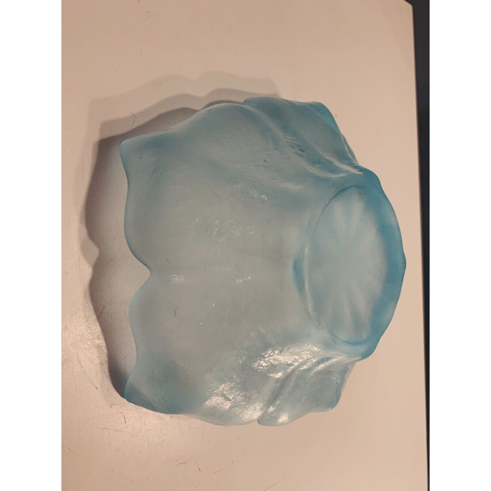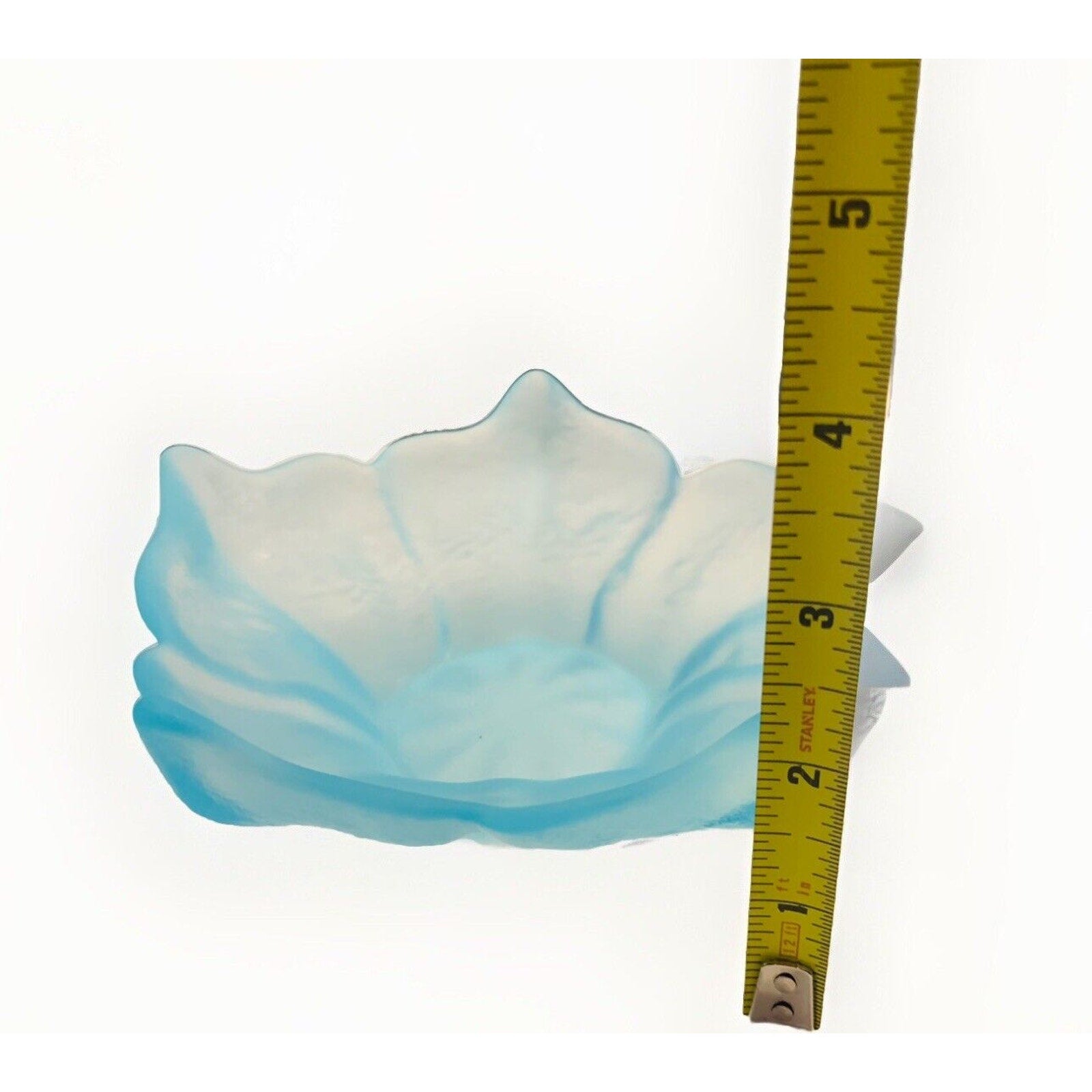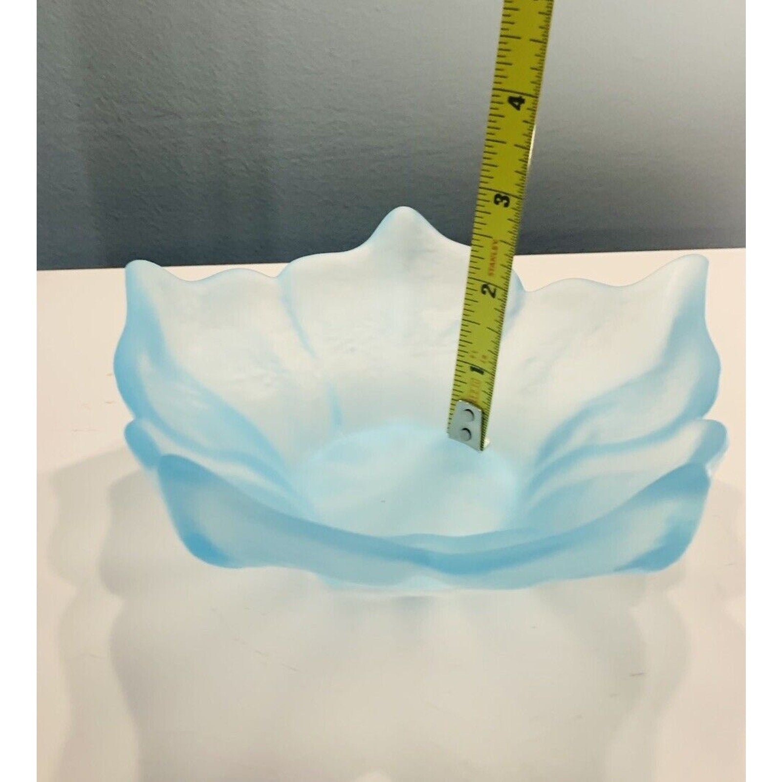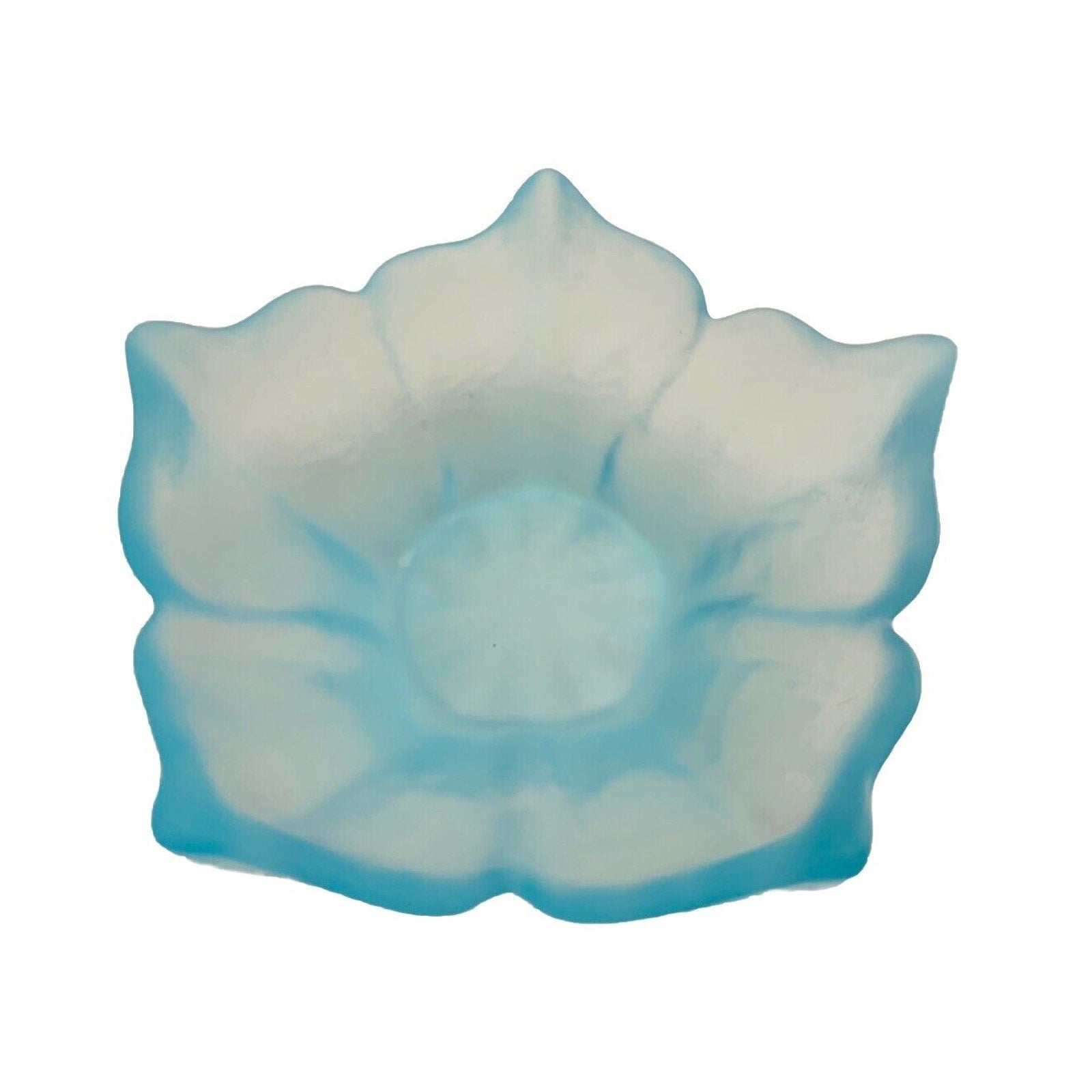 Viking Epic Satin Blue Glass Lotus Dish Bowl Flower Shaped Frosted Vintage Petal