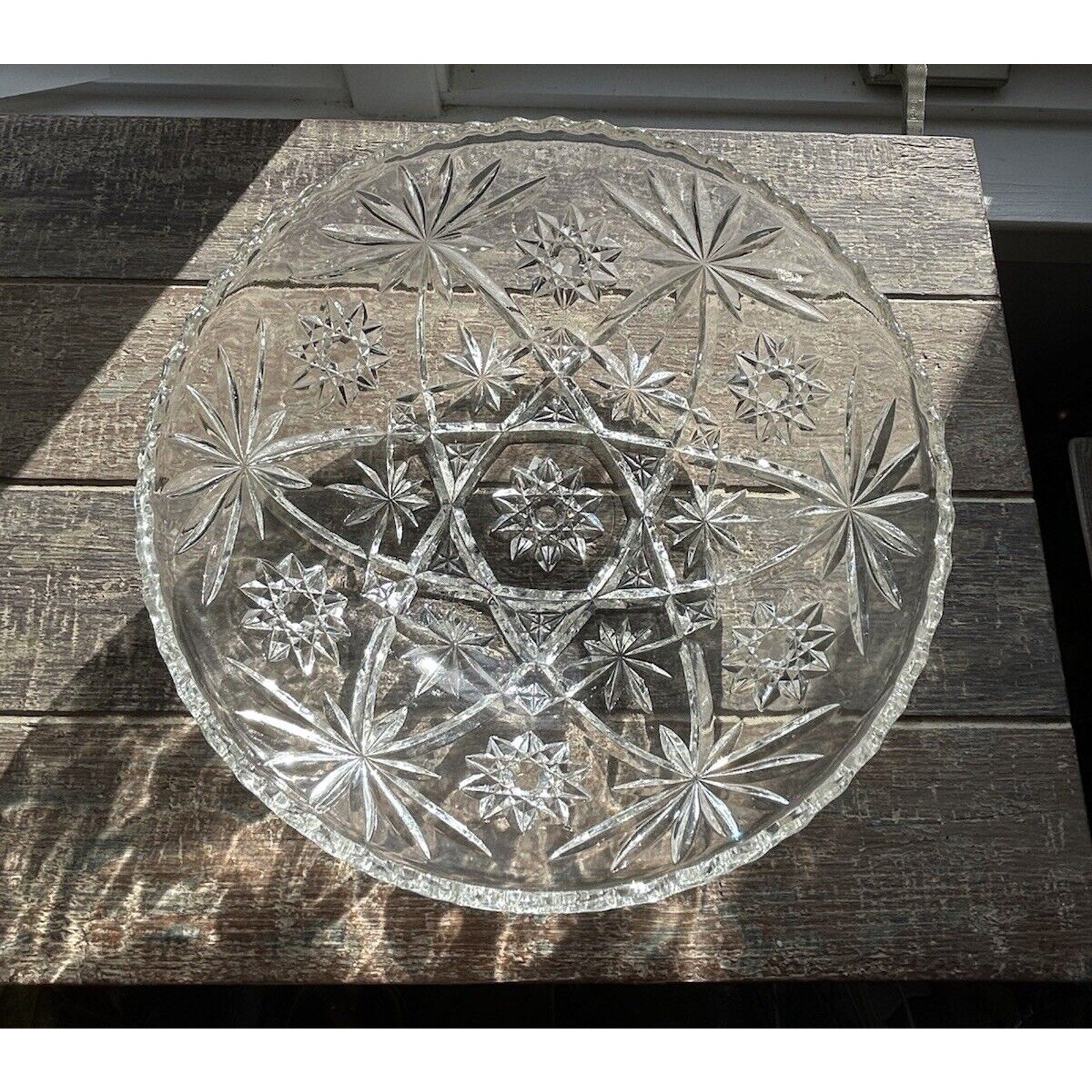 Vintage Anchor Hocking Clear Cut Glass Star of David Large 10.5” Serving Bowl