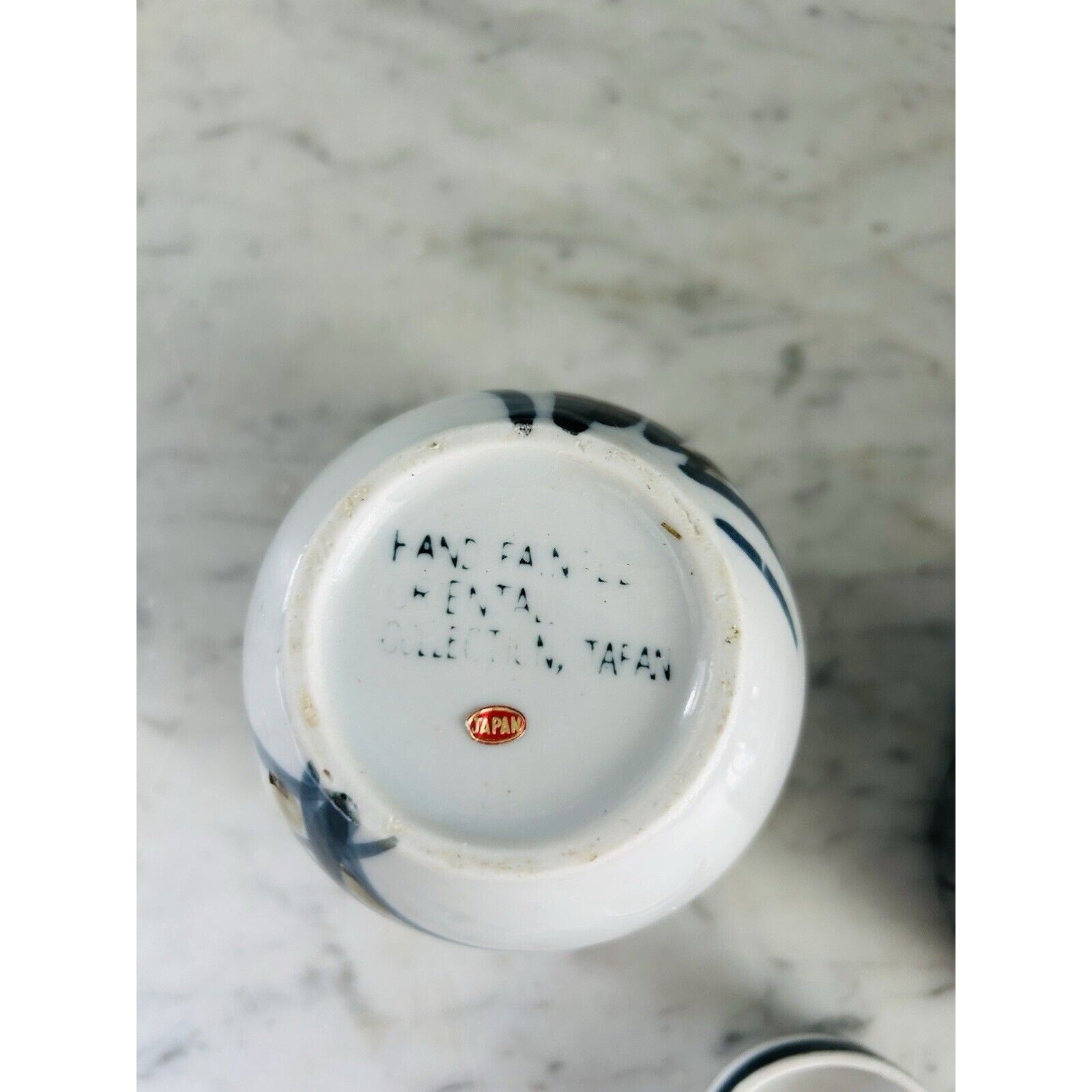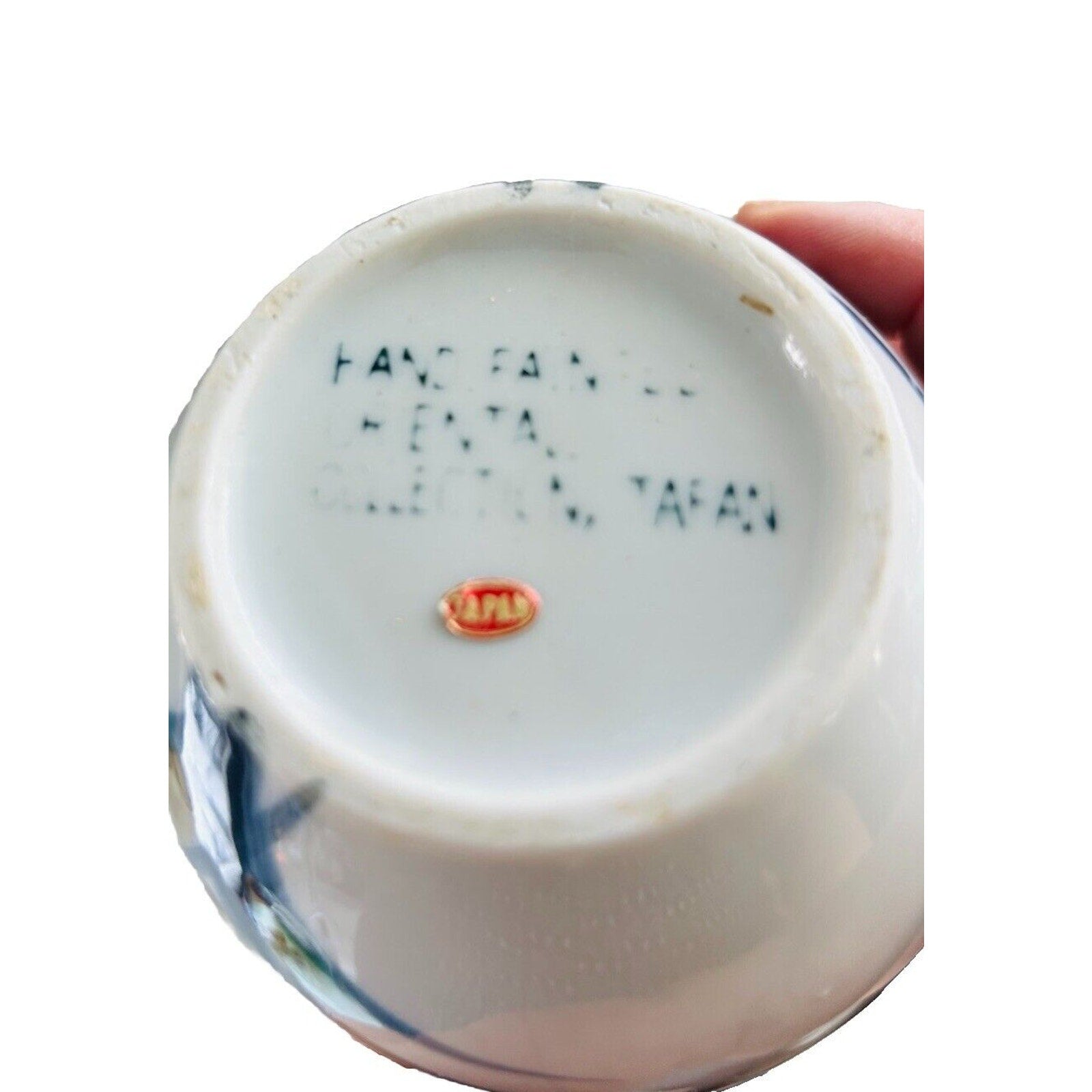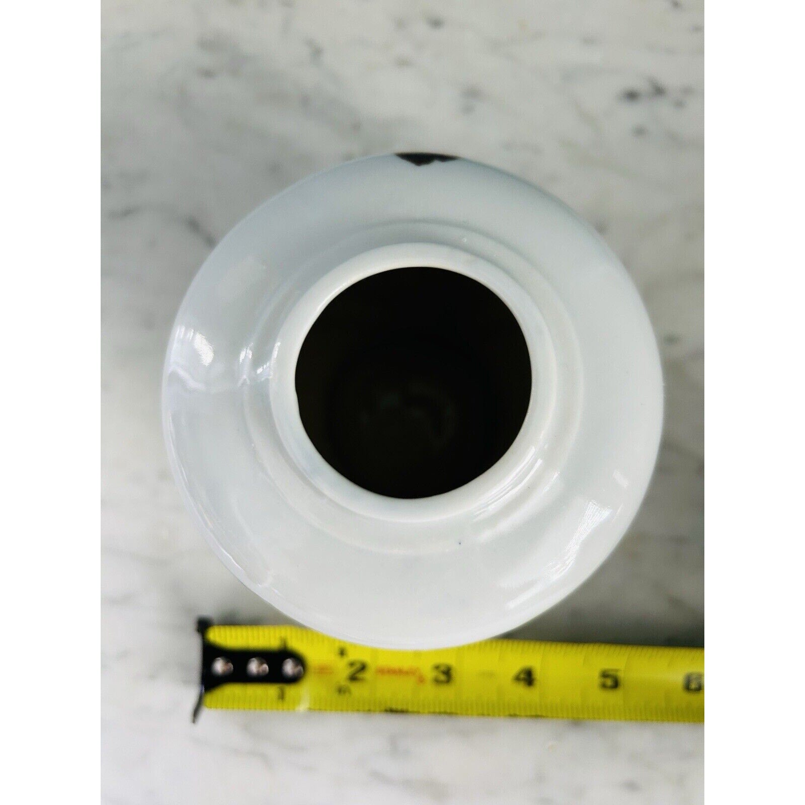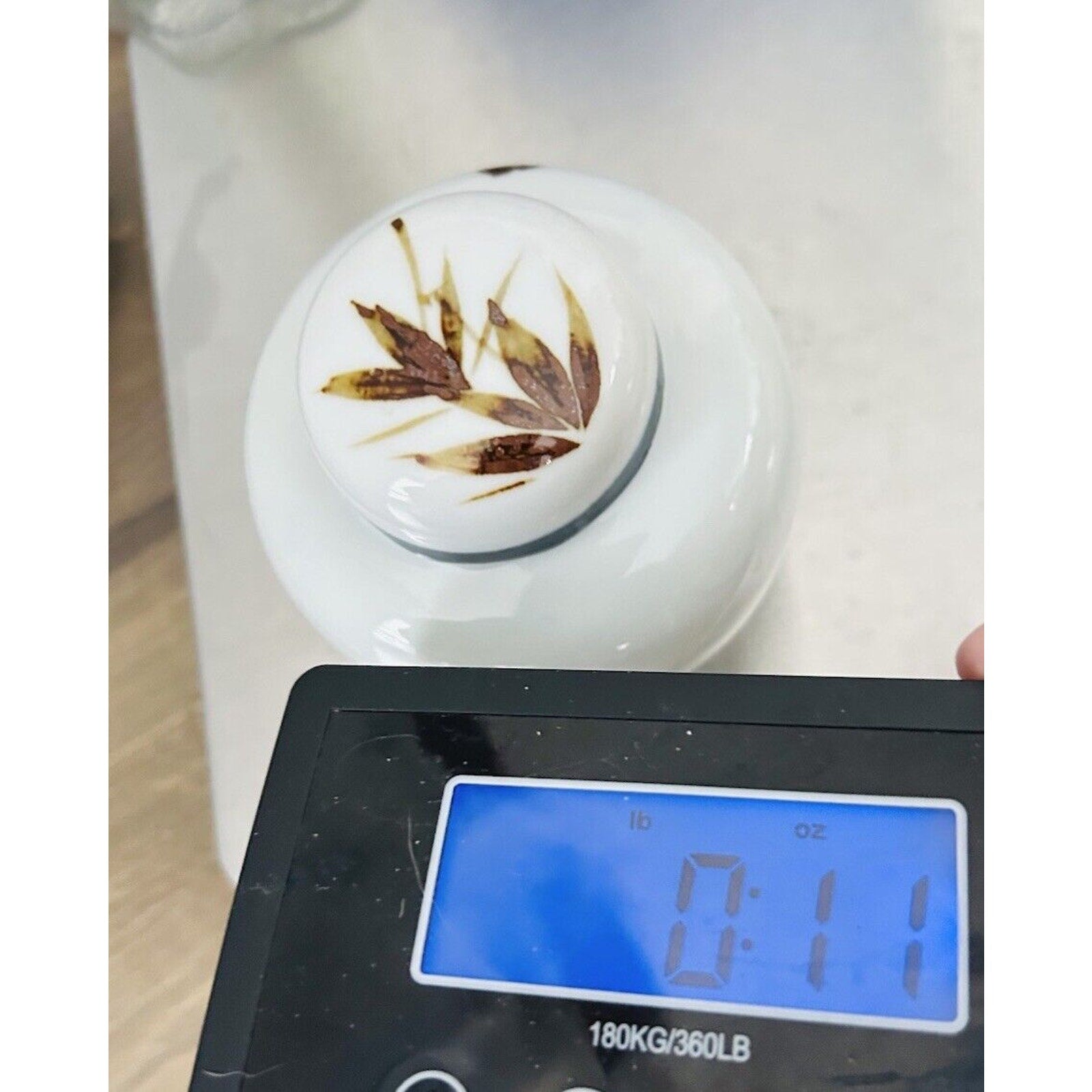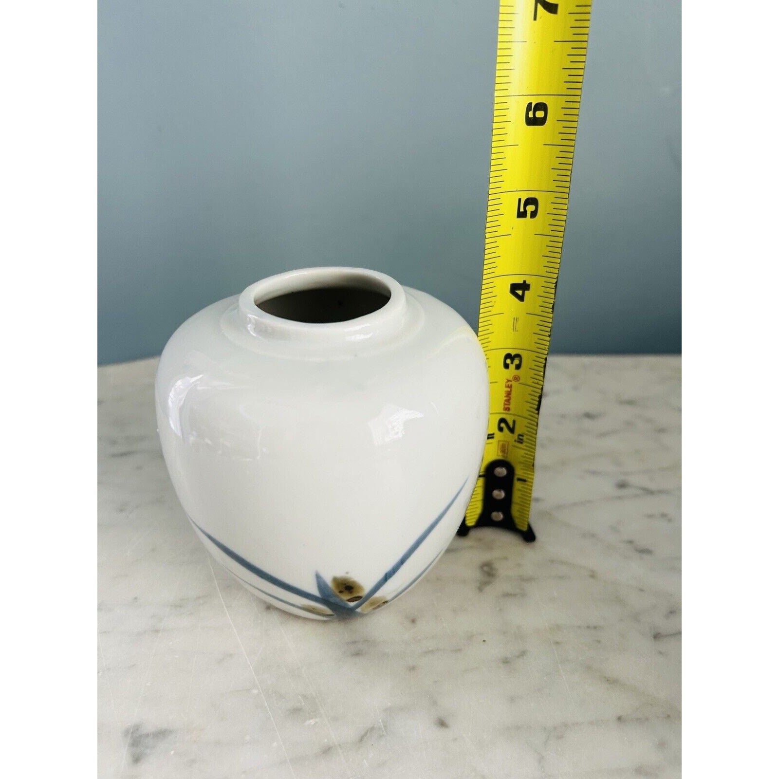 Great condition. No chips or cracks. This is a small round ceramic vase with a multicolor floral design, hand-painted in an Asian style. It features a lid and is part of the Oriental Collection by the brand Ginger. Handmade in Japan, this vase showcases a brown Lily flower subject and has an item height of 4 inches and an item width of 5 inches. The item weight is 11 ounces. Blue leaves.