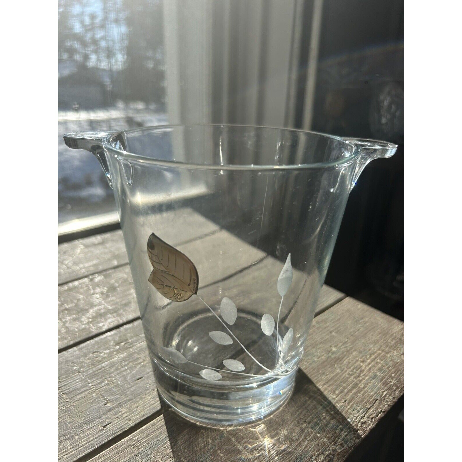 Vintage Cristal Mode Ice Bucket Hand Crafted Italy Silver Leaf Etched Glass