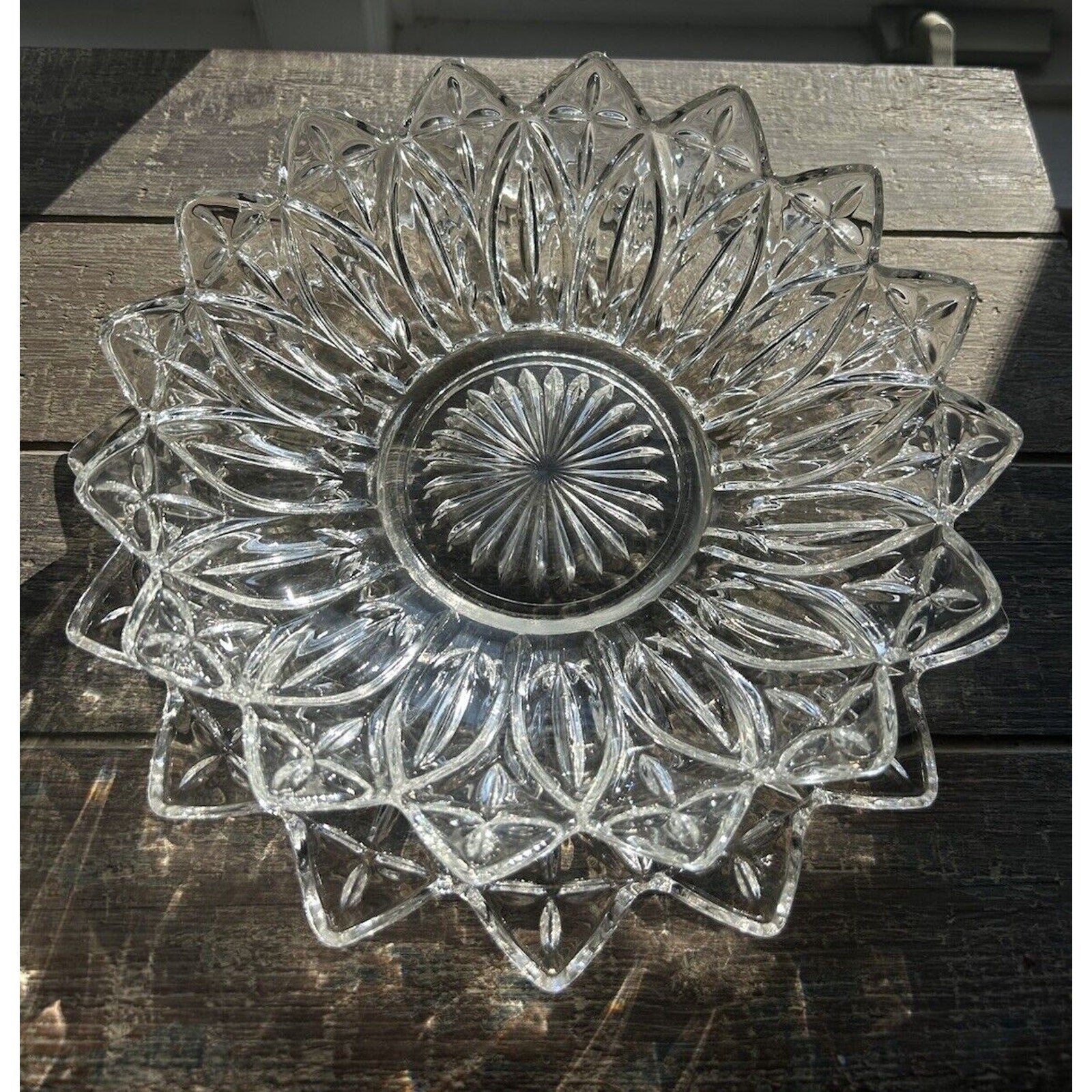 Vintage Federal Glass Petal Pattern Clear Glass Serving Bowl & Platter Flower
