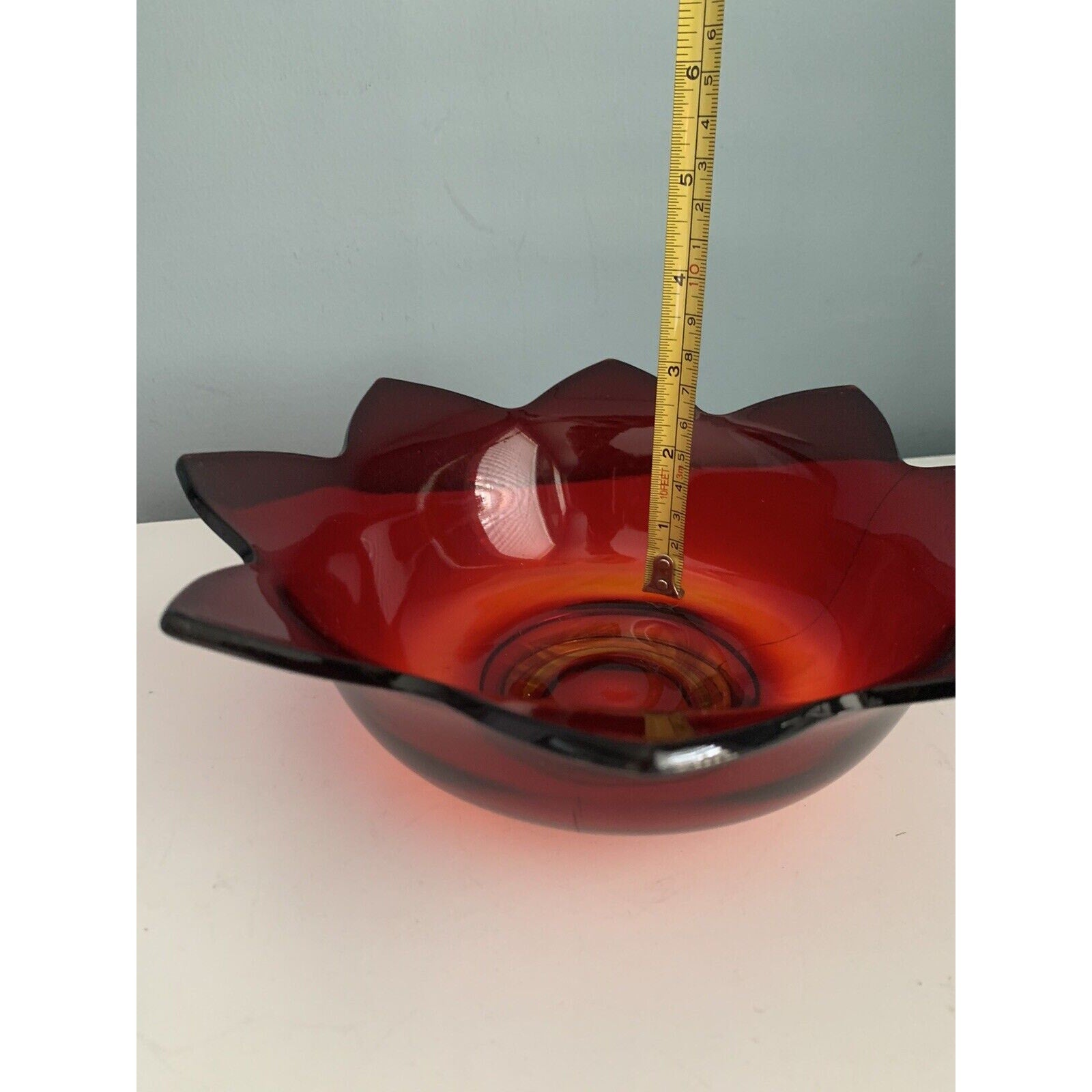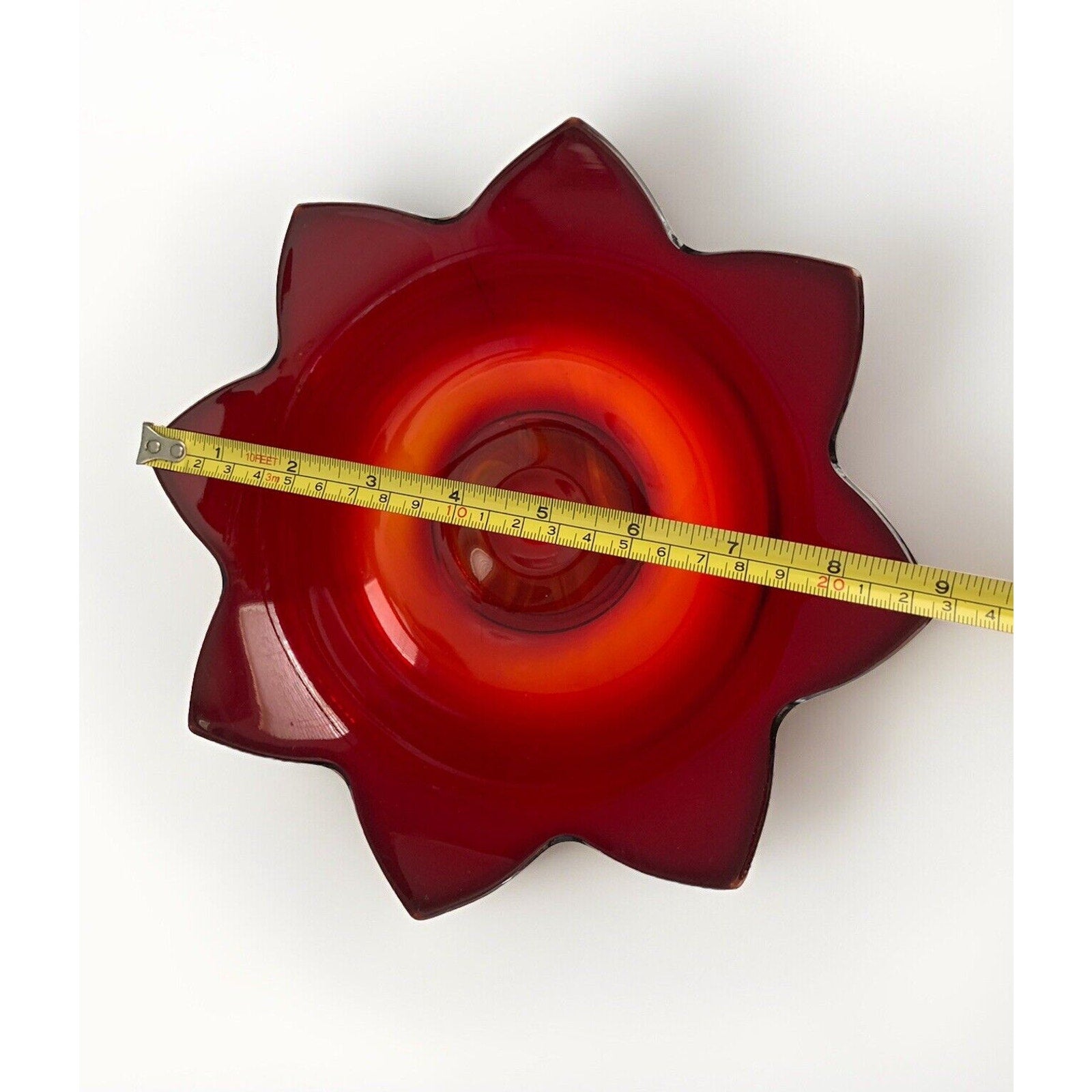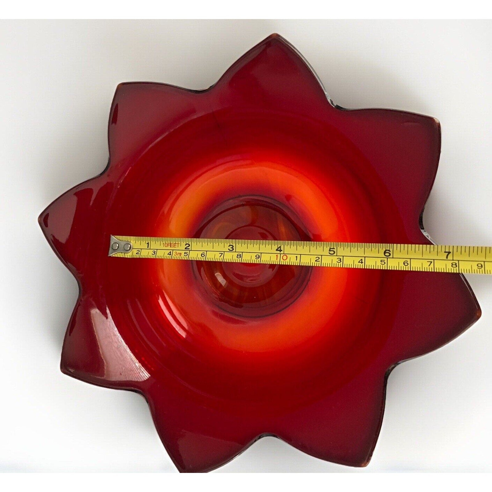 Vintage Fenton Amberina Ruby Red Orange Glass Glows 9” Lotus Bowl Flower