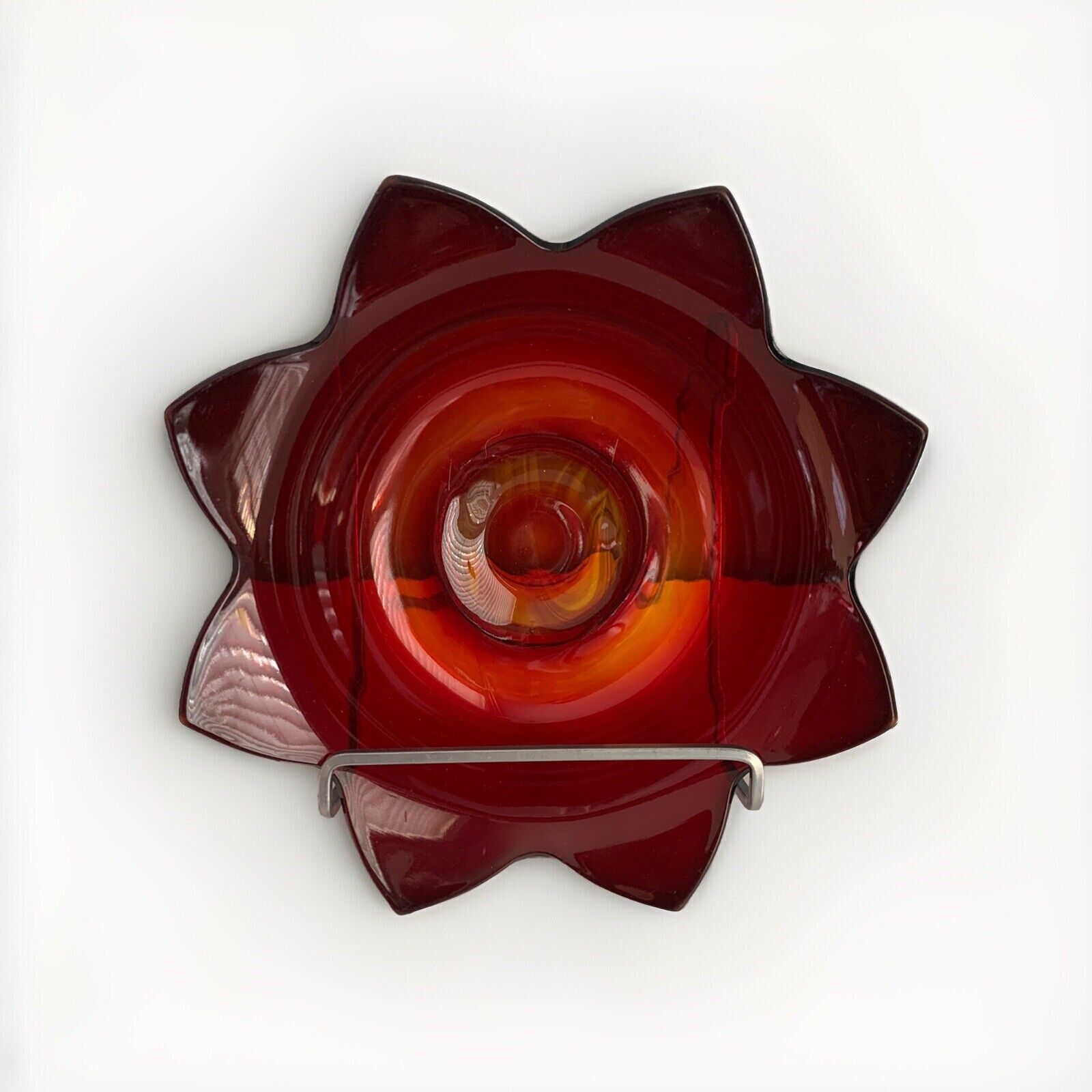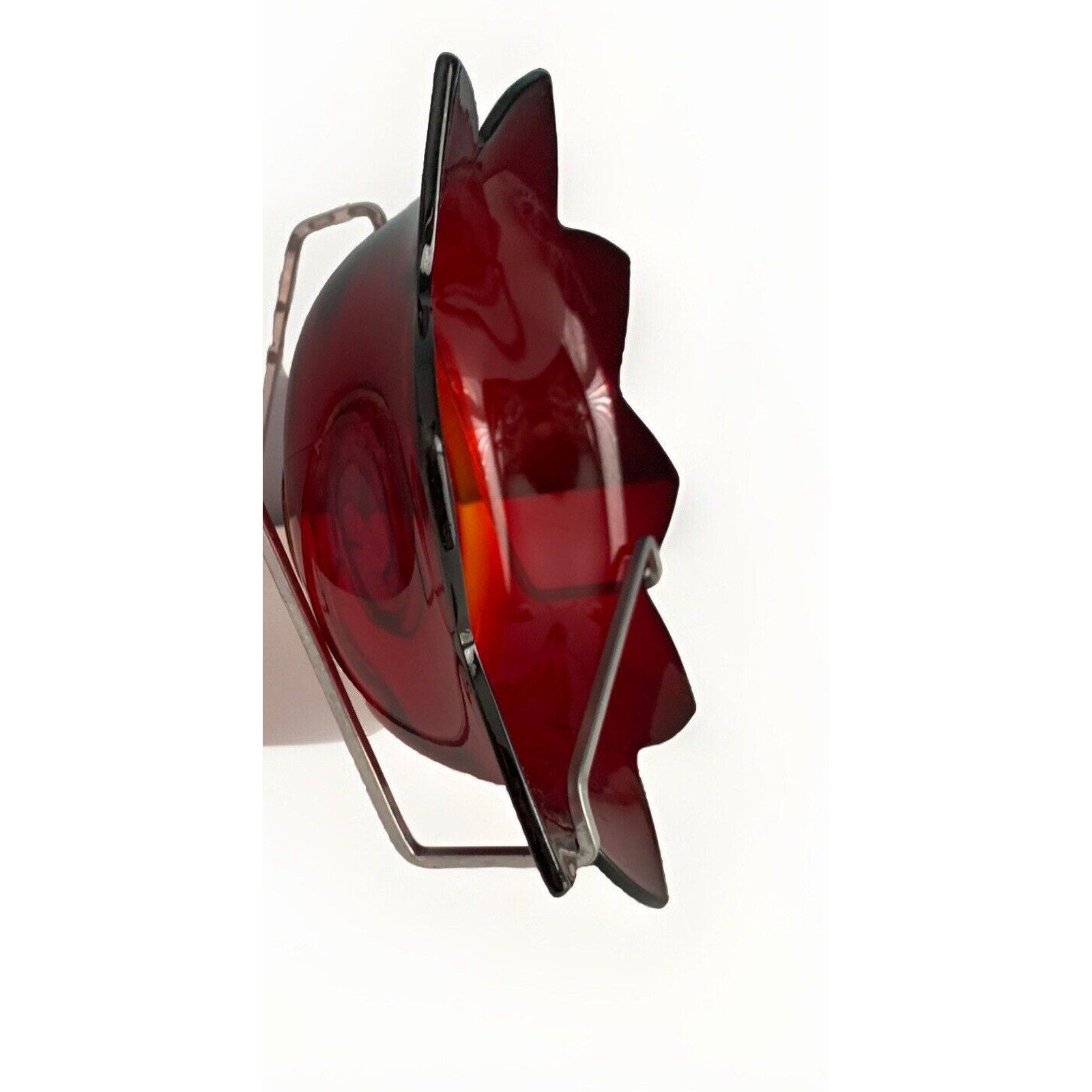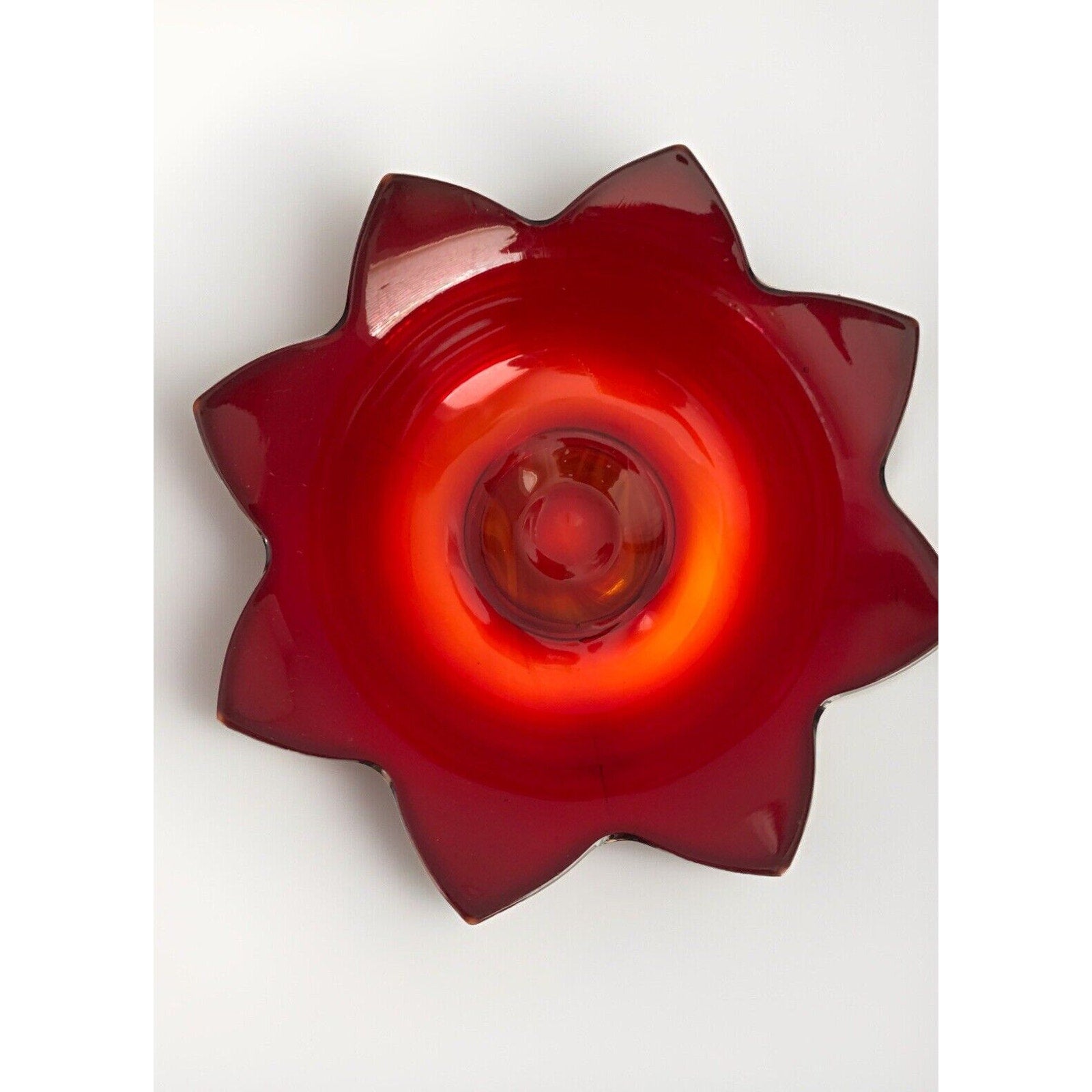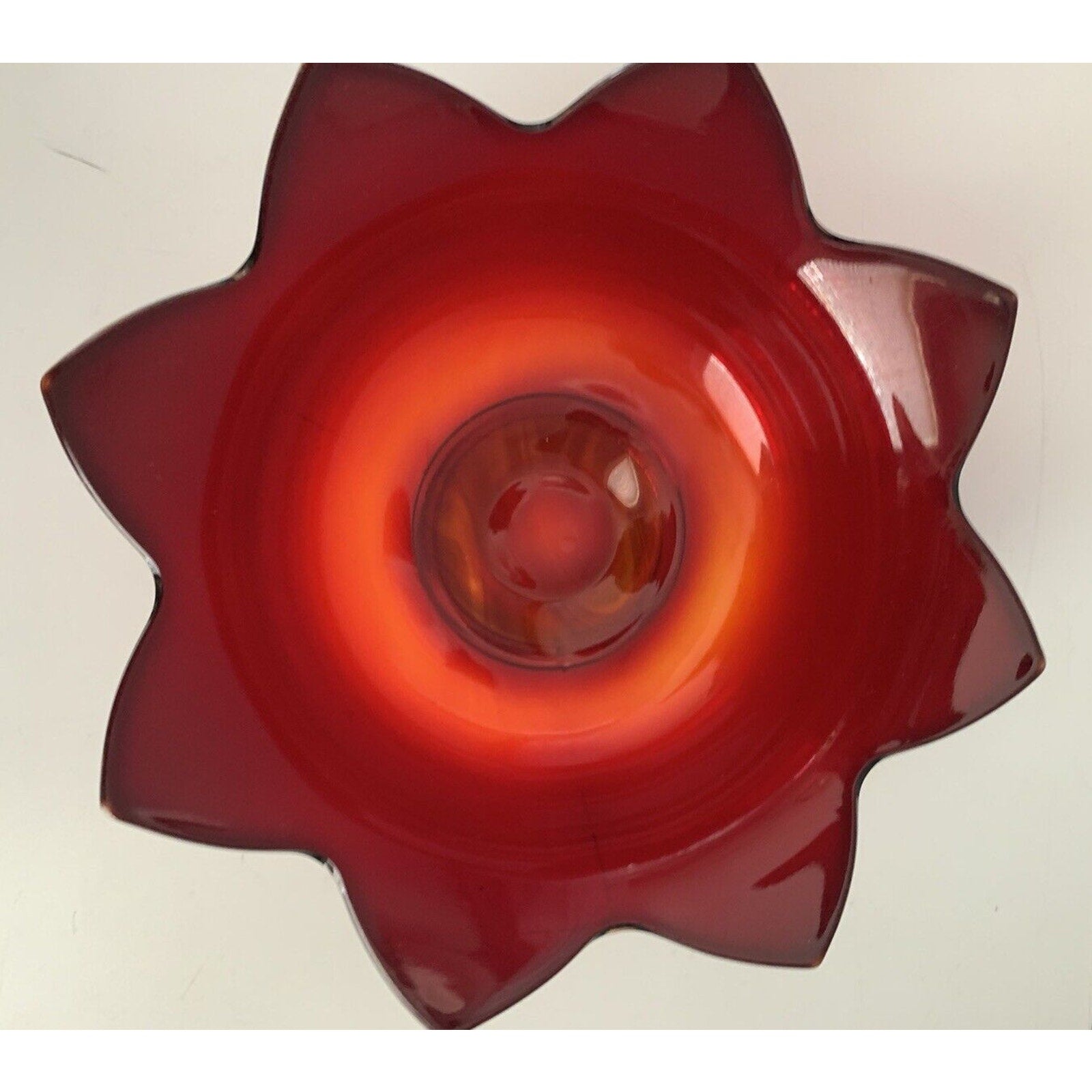 Vintage Fenton Amberina Ruby Red Orange Glass Glows 9” Lotus Bowl Flower