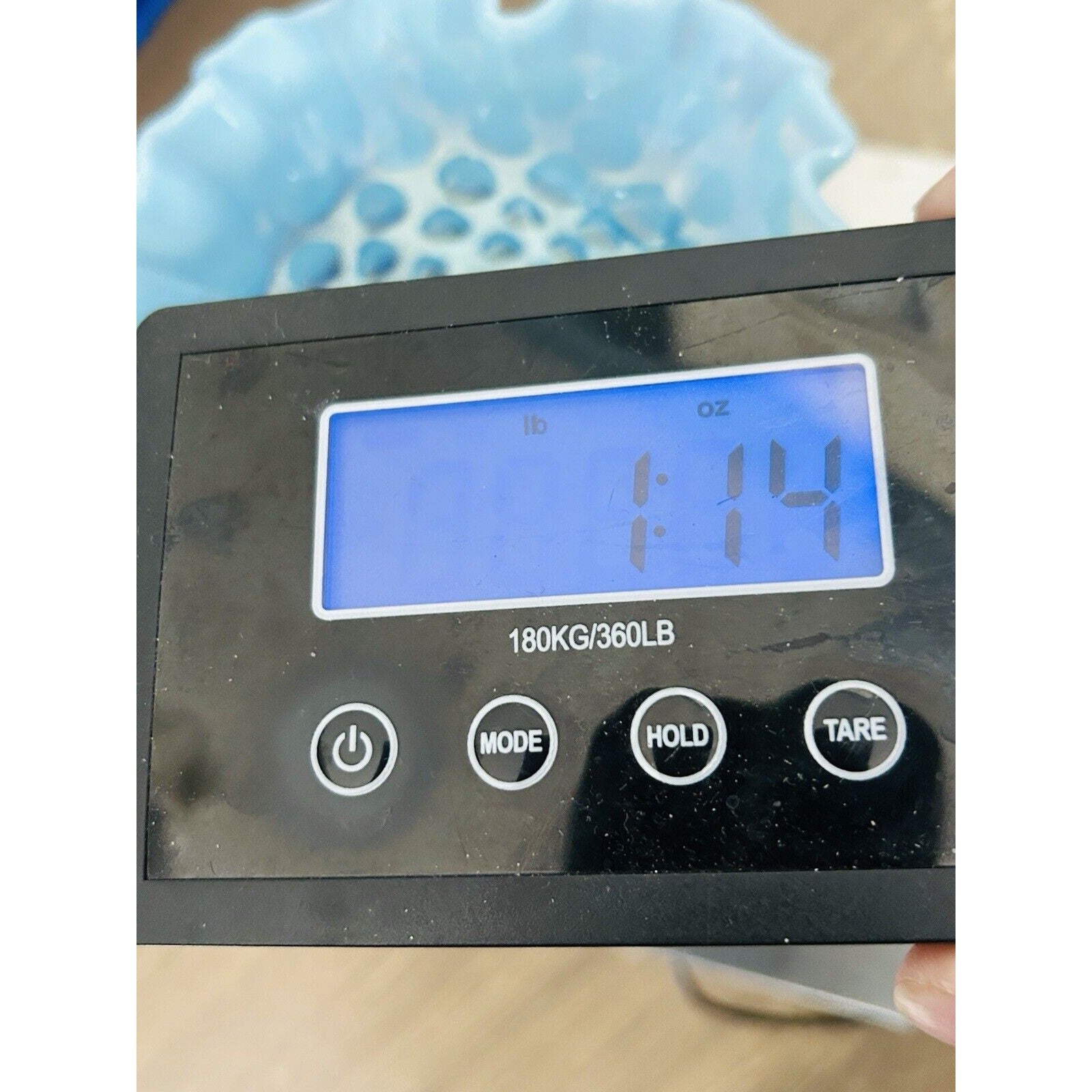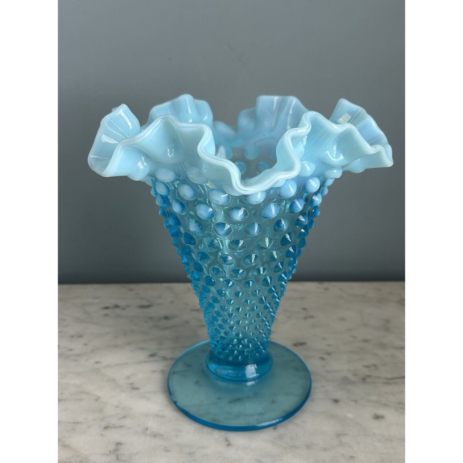 Vintage Fenton Aqua Blue Opalescent Glass Hobnail 8” Ruffled Cone Shaped Vase