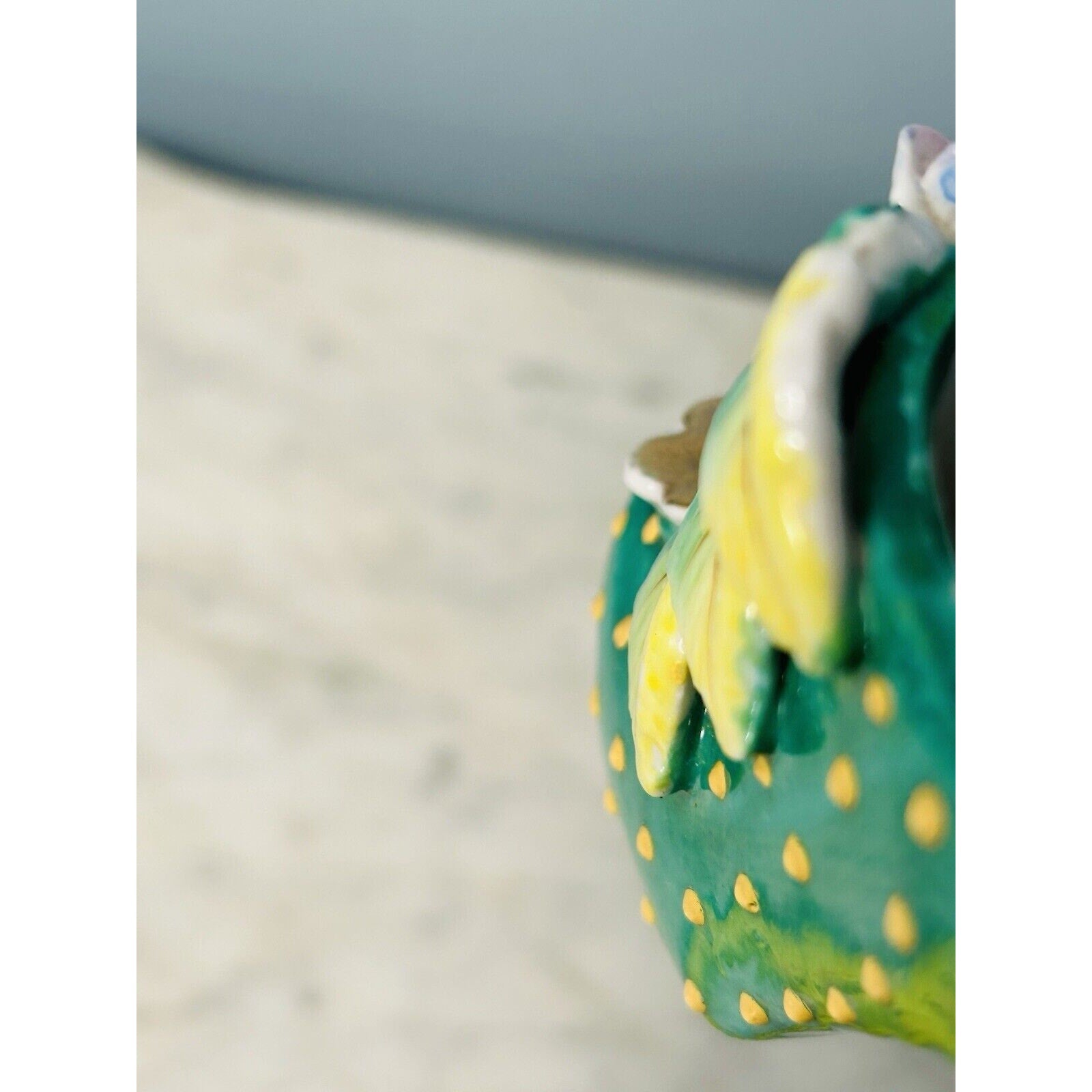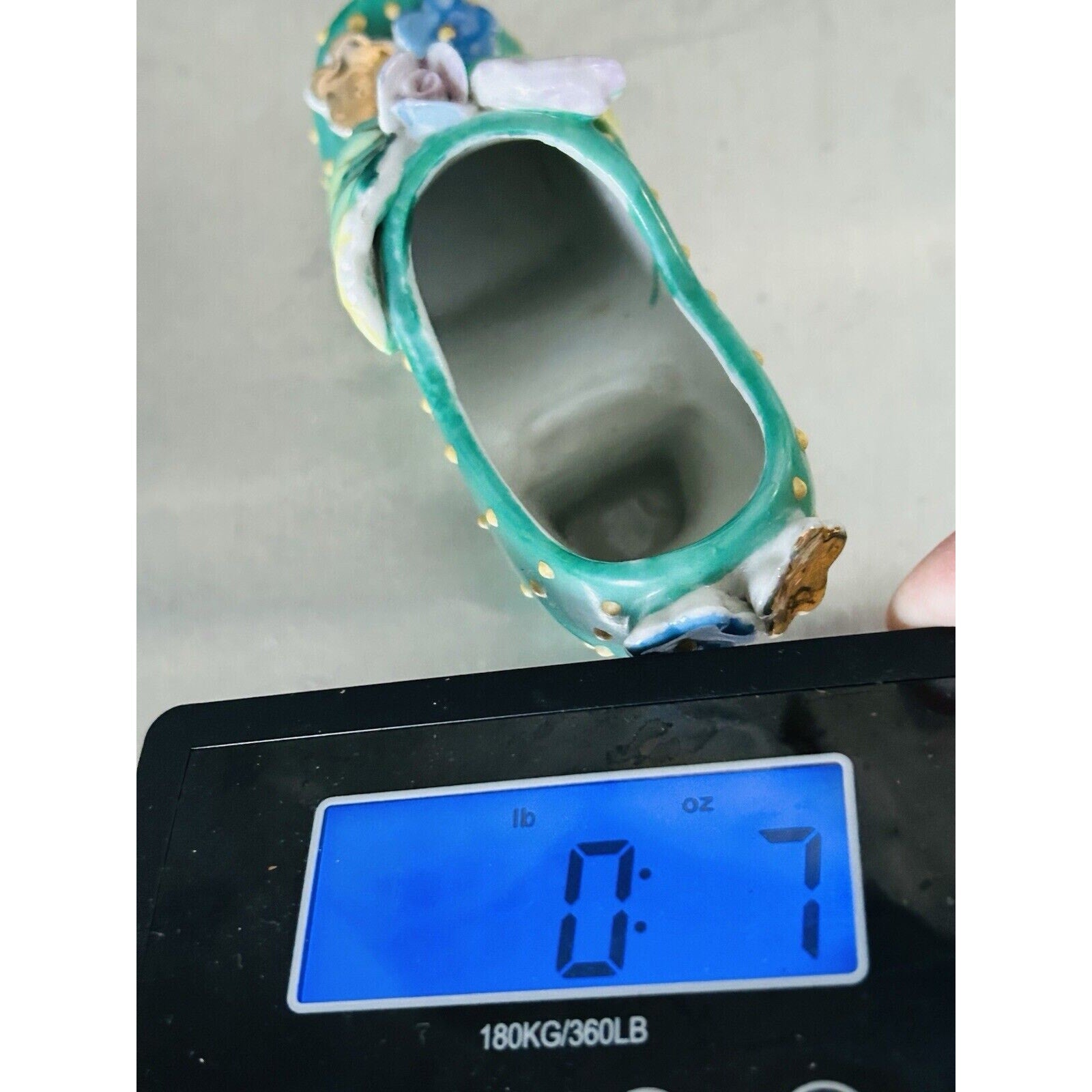 Vintage Hand Painted Shoe High Heel Polka Dots 3D Flowers Leaf Green 4" Japan