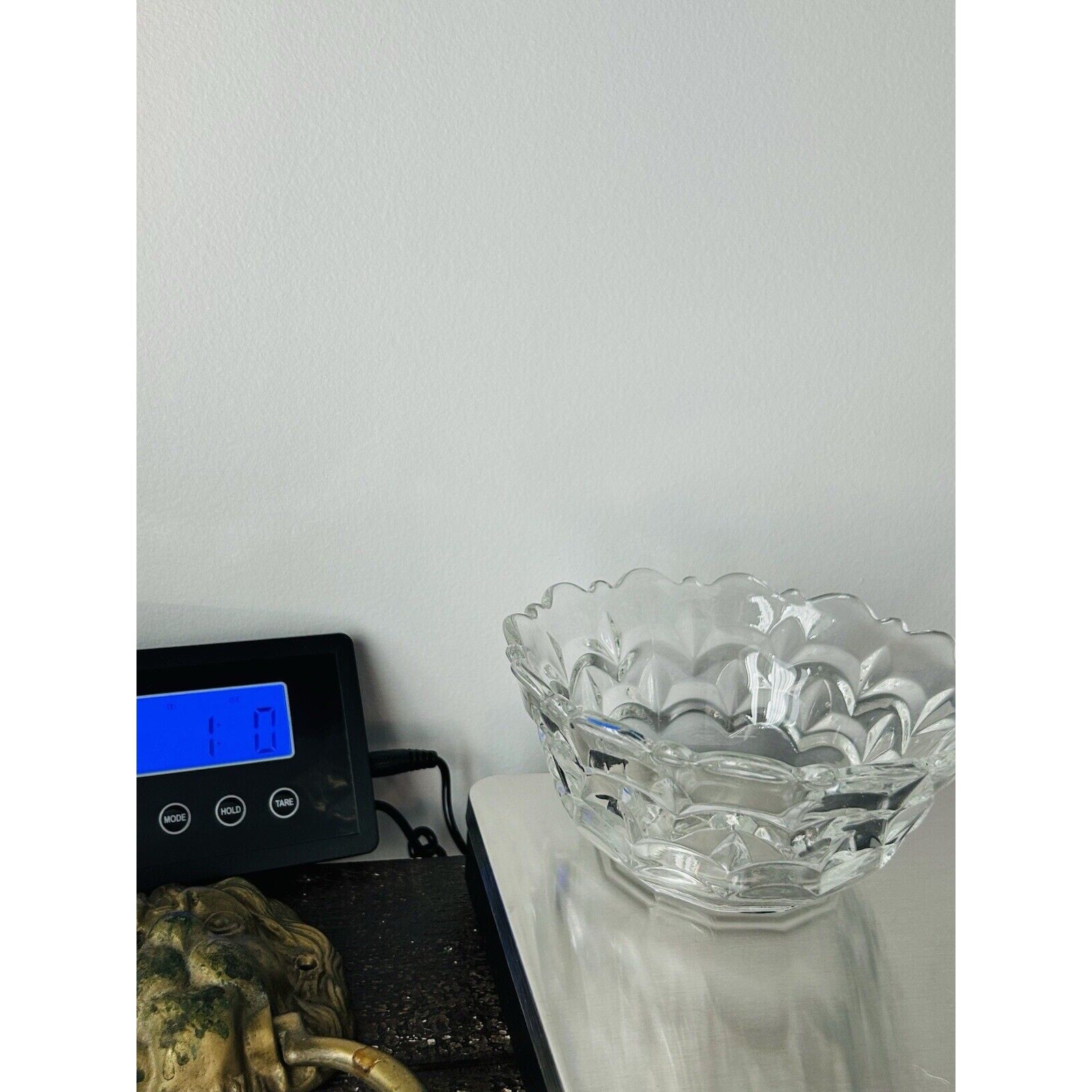 Great condition. No chips or cracks. Vintage Heisey 6 1/4” Nappy Bowl in clear glass, featuring an impressed diamond H backstamp and scalloped edges. This serving bowl has a height of 2 3/4” and a weight of 1 pound. Made of glass with a diameter of 6 1/4”.