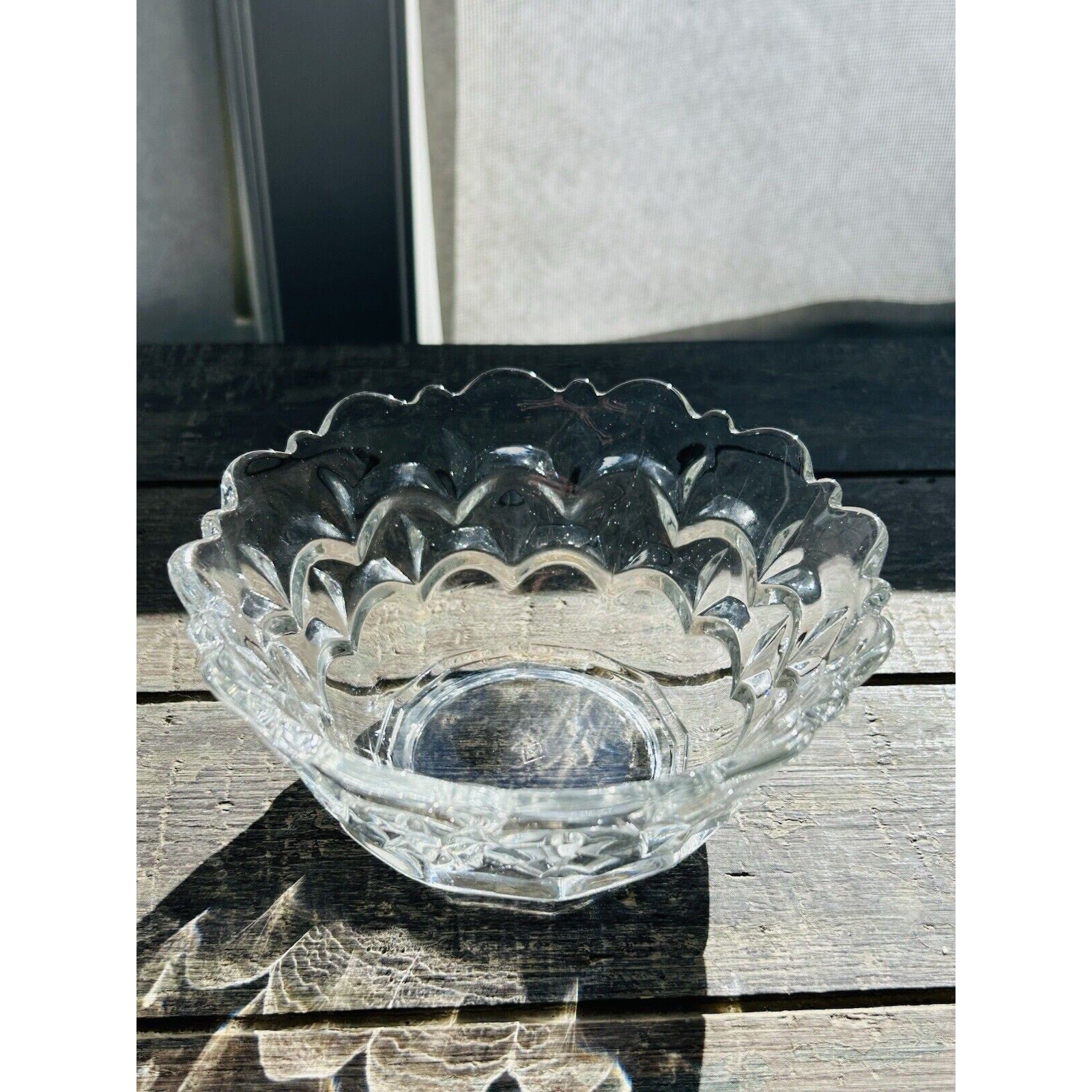 Vintage Heisey 6 1/4” Nappy Bowl Impressed Diamond H Scallops Clear Glass Dish