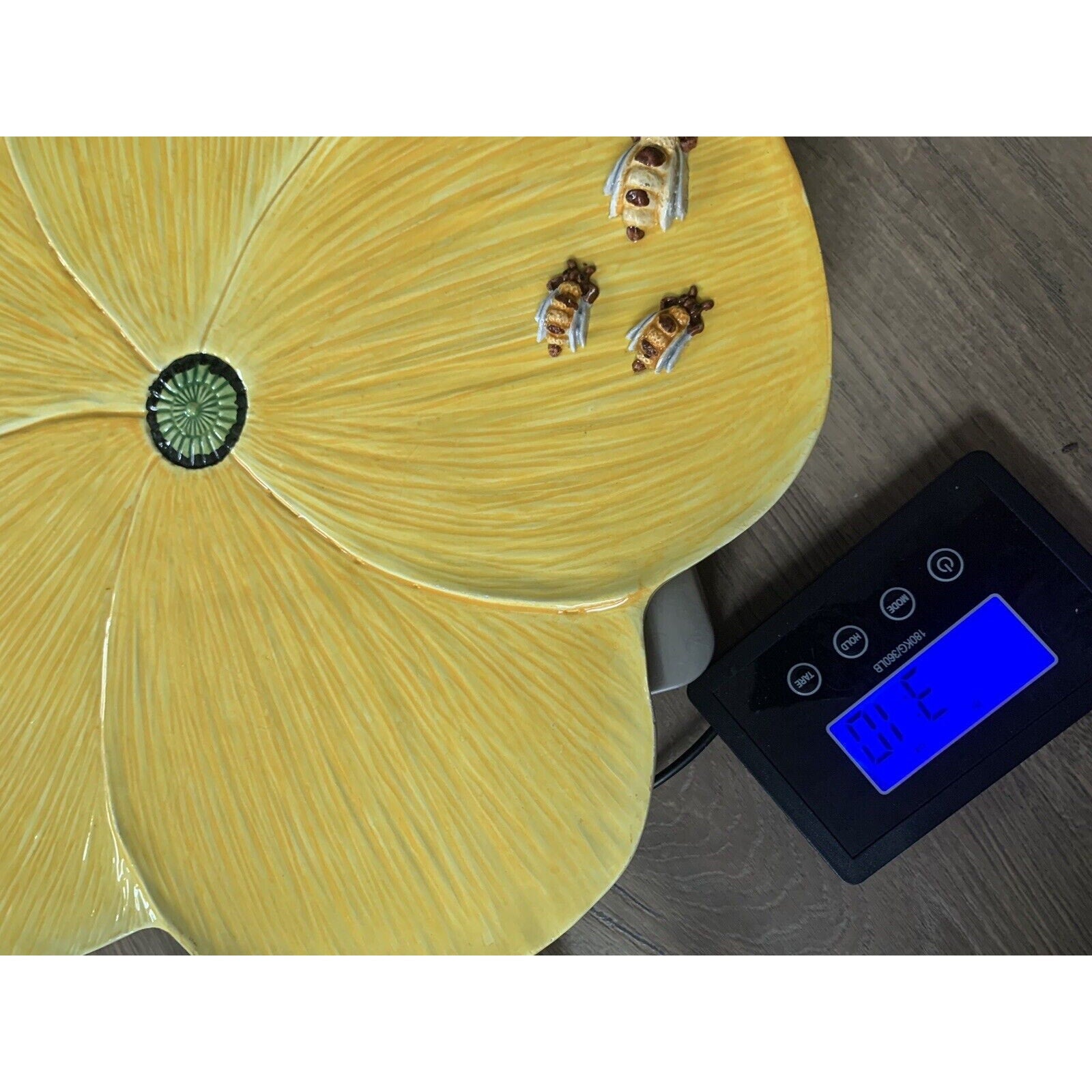 Vintage Italian Yellow Ceramic Flower Blossom Bees 3D Serving Tray Platter Dish