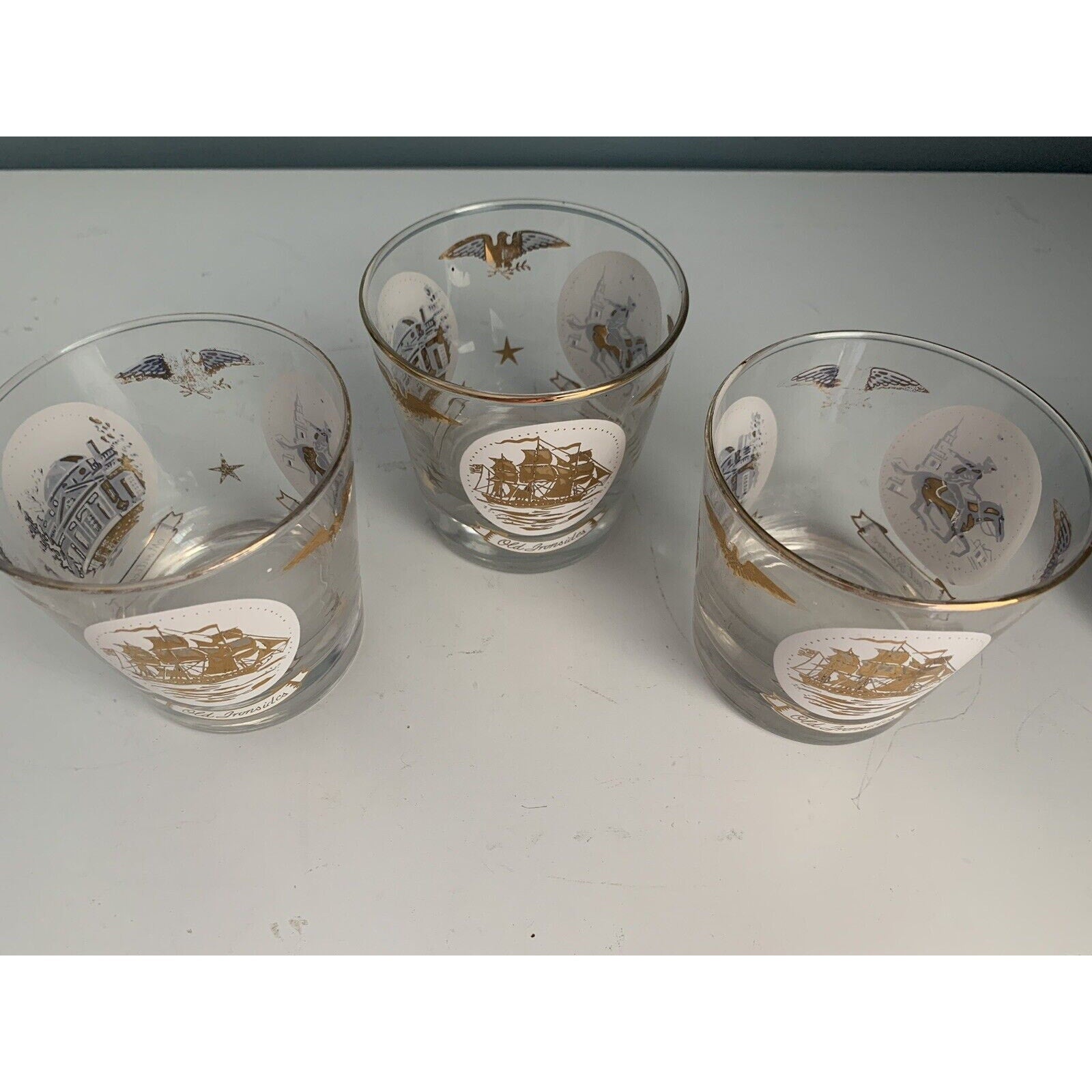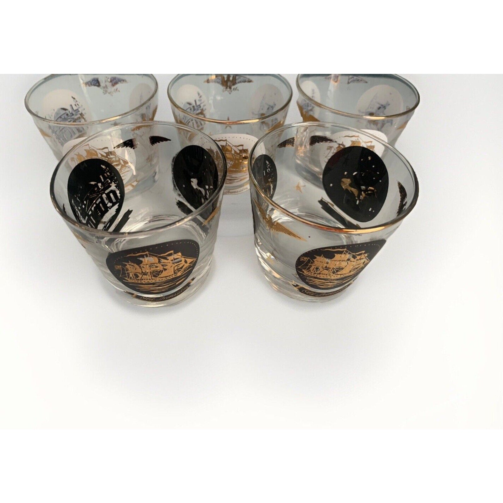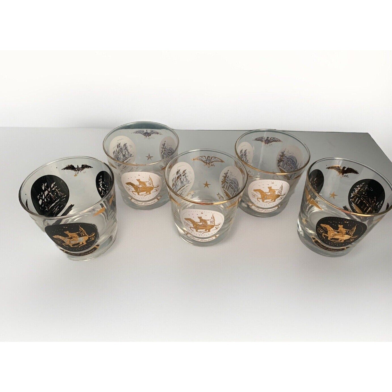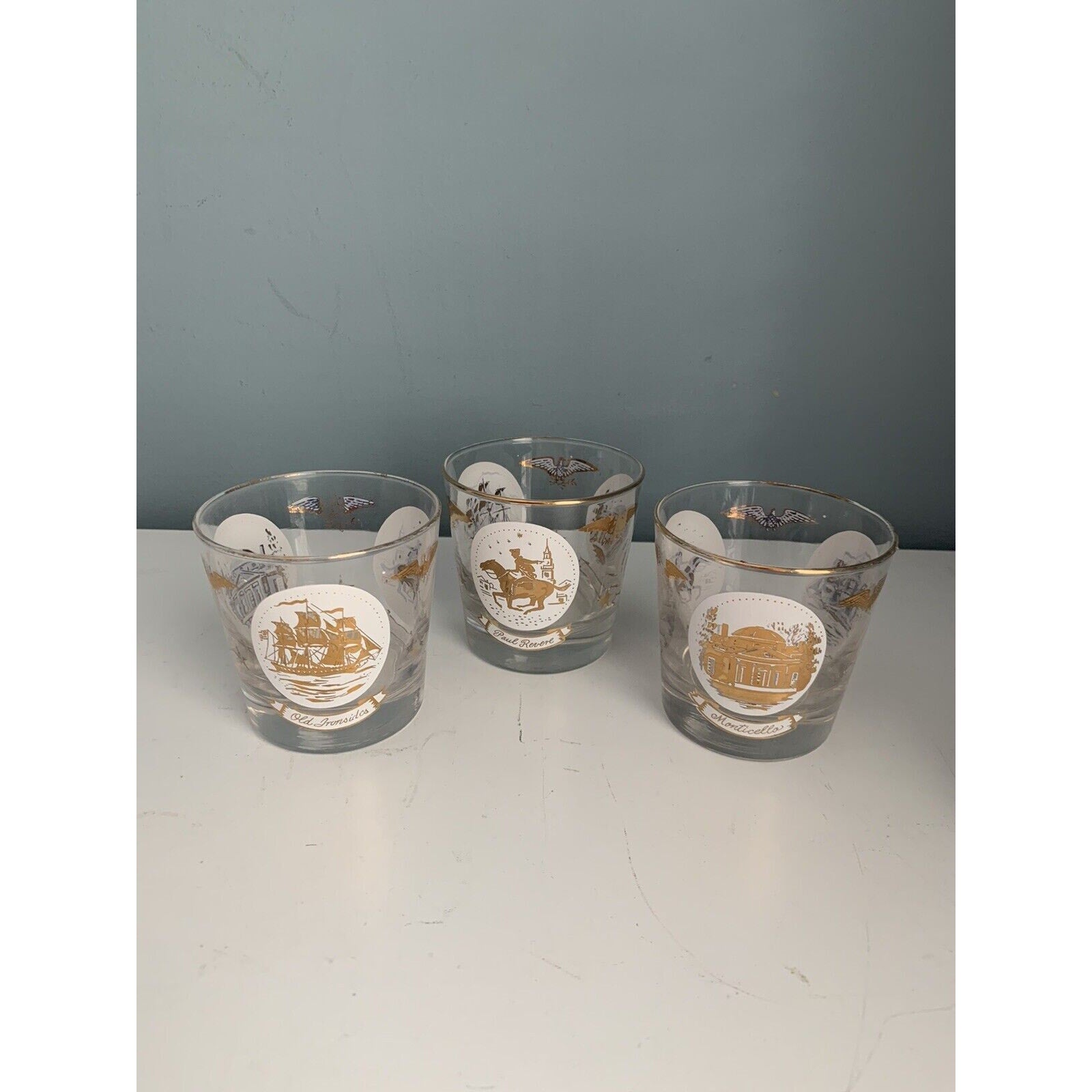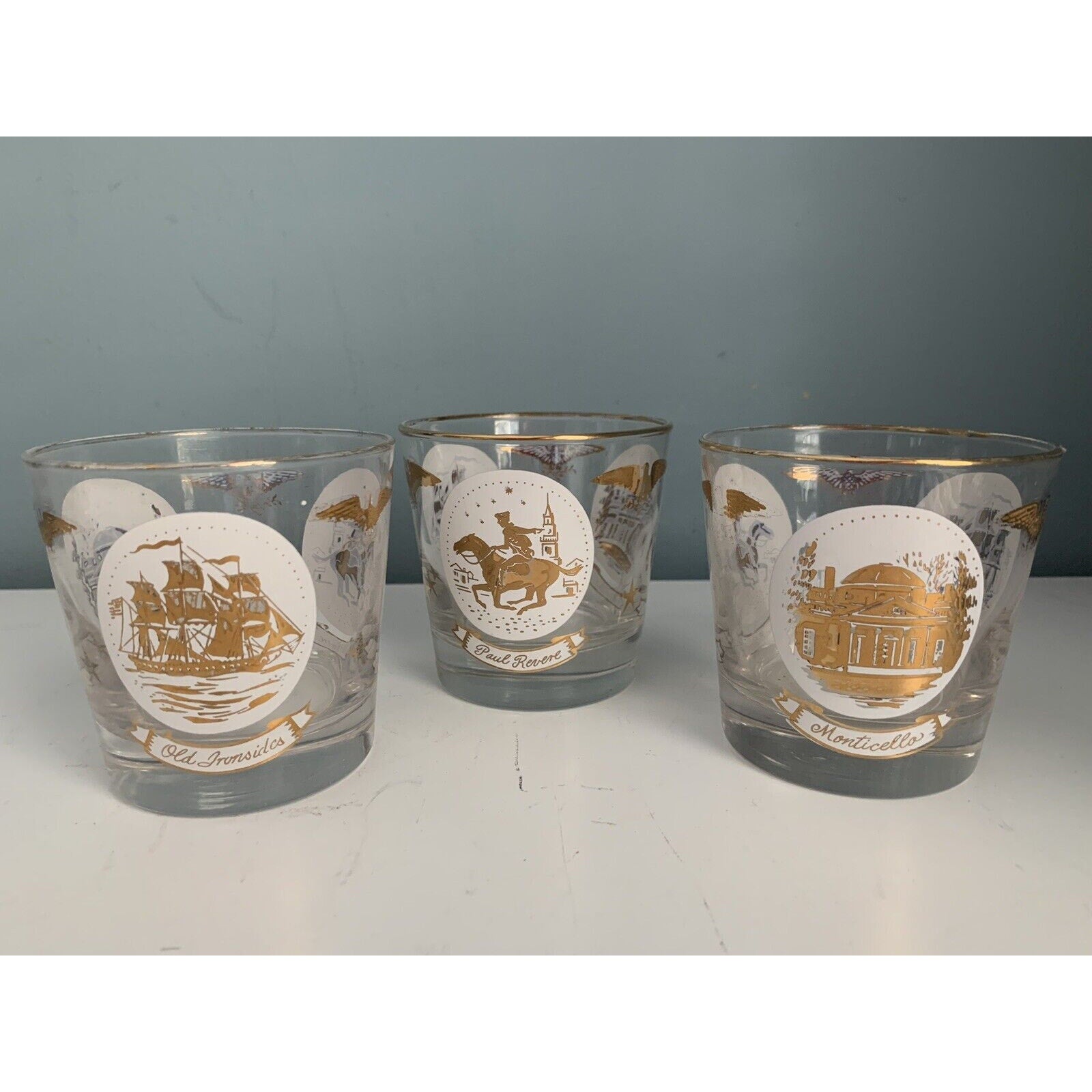 Vintage Libbey Americana Rocks Glass Paul Revere Old Ironsides Monticello 24K