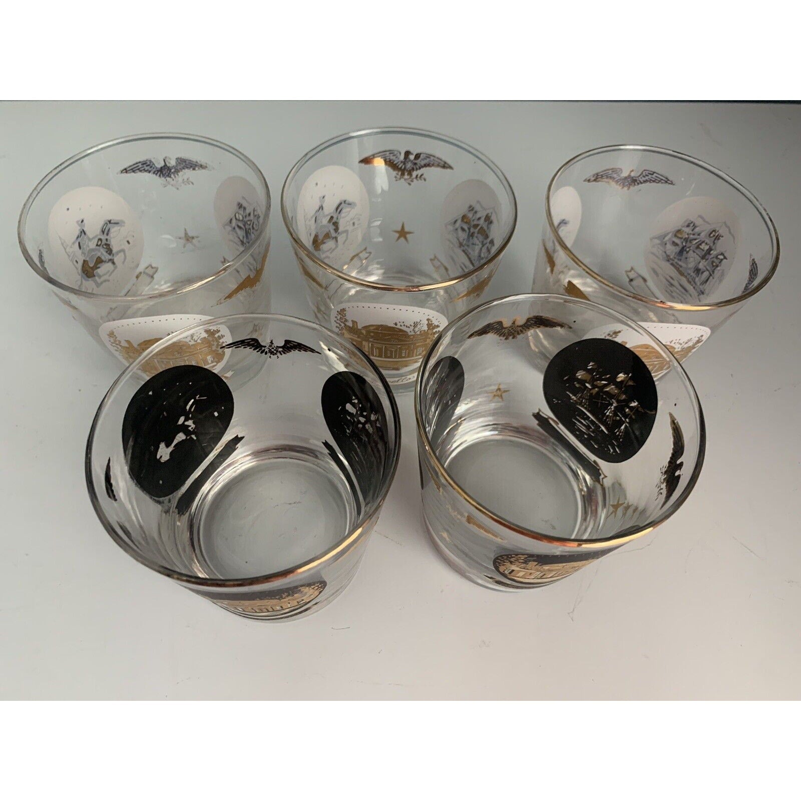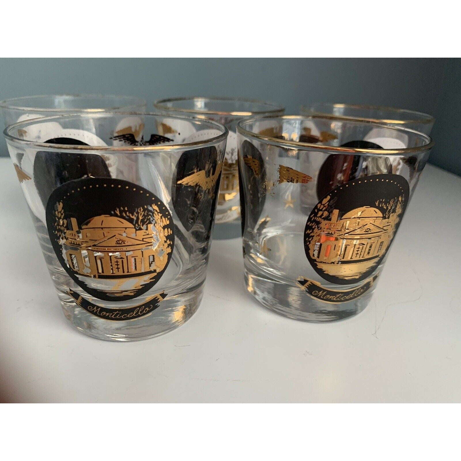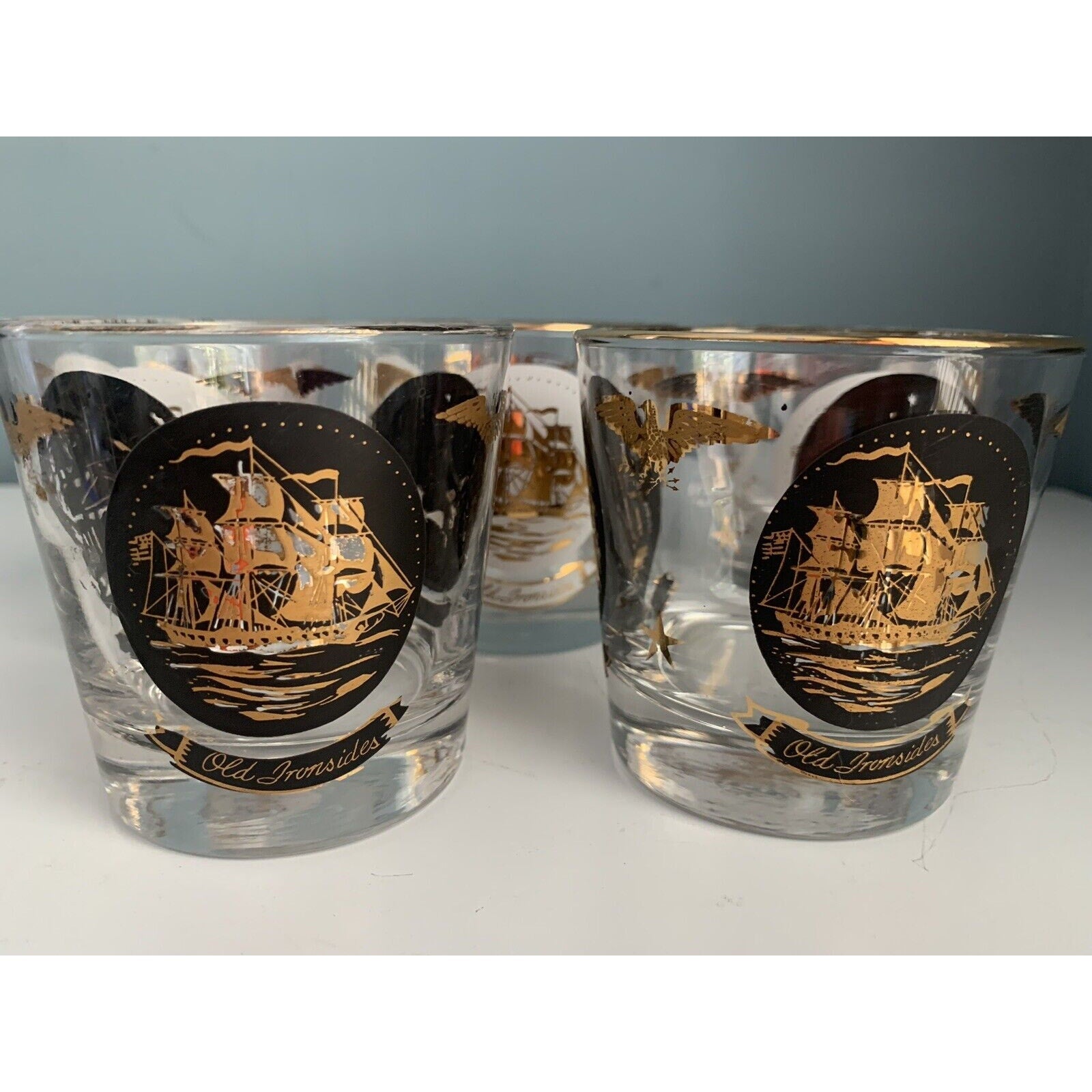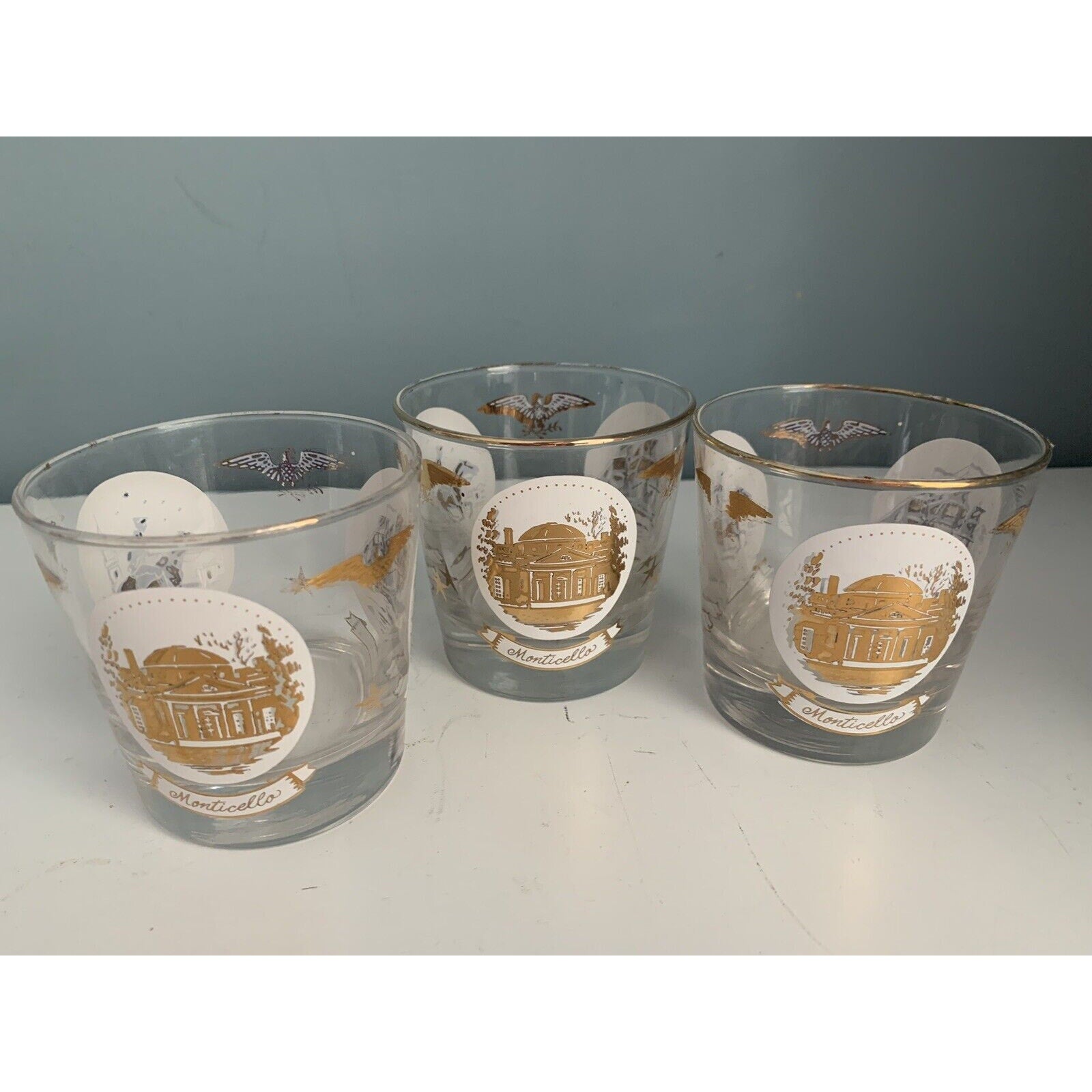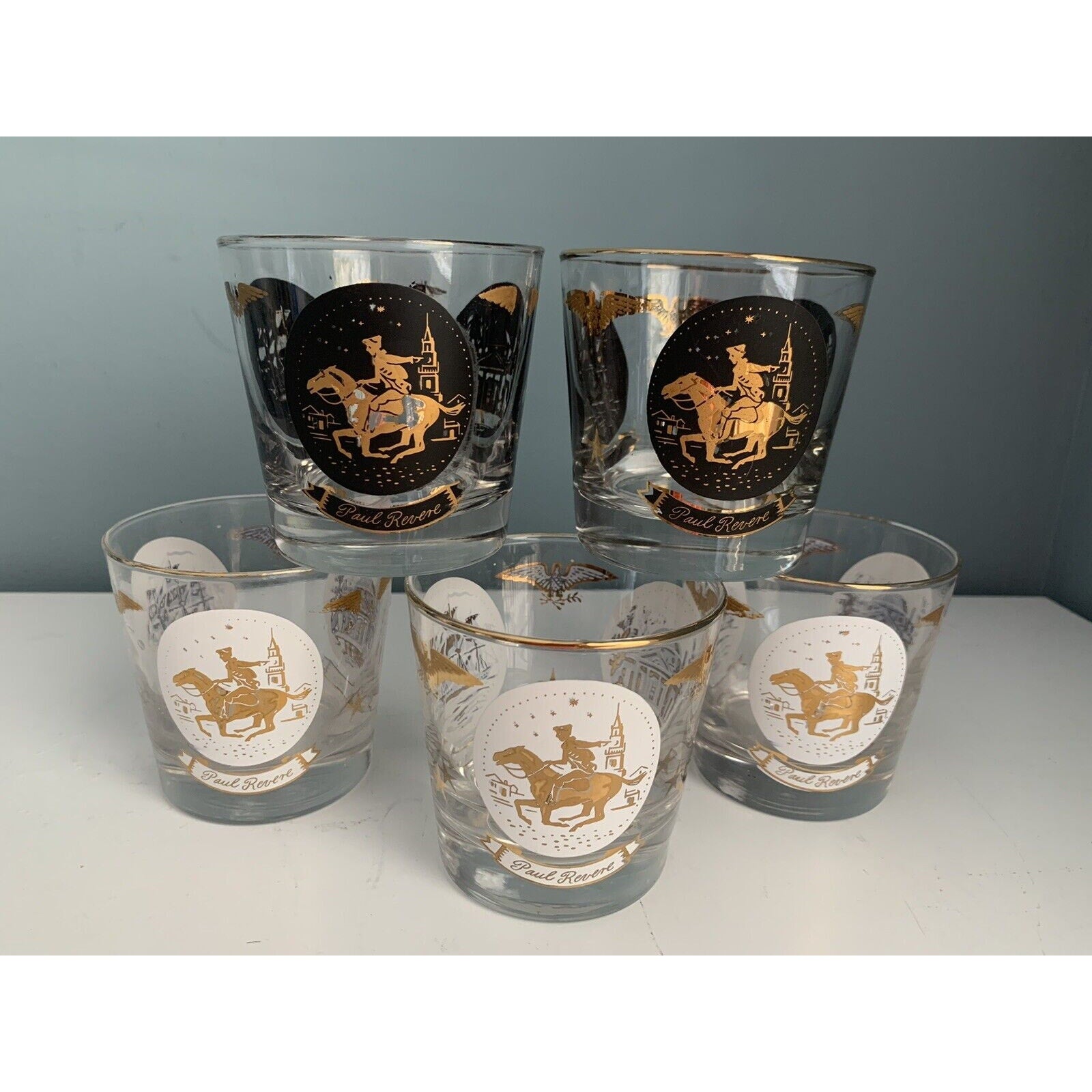 Vintage Libbey Americana Rocks Glass Paul Revere Old Ironsides Monticello 24K