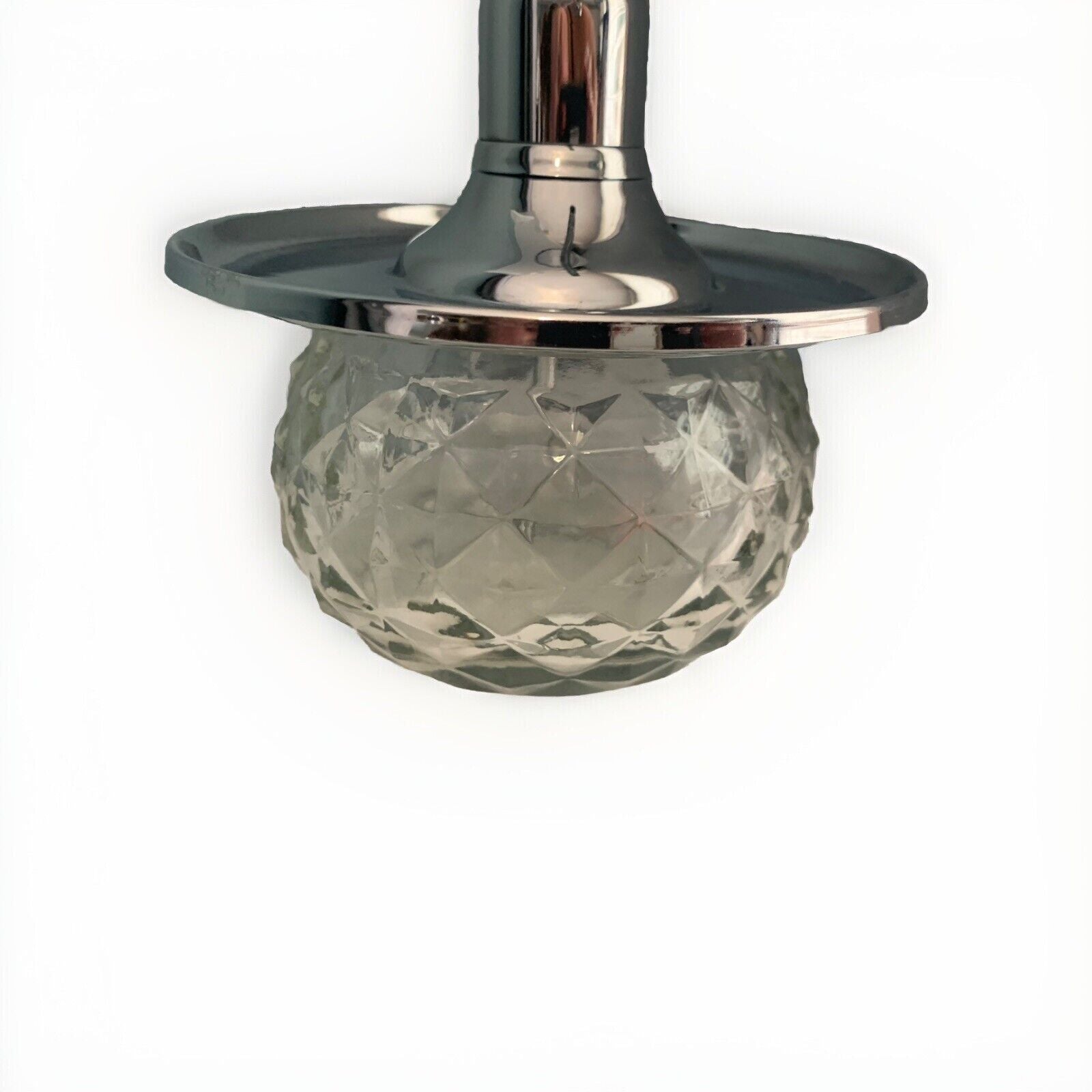 This vintage liquor dispenser is a must-have for any cocktail bar or home collection. Made of glass and chrome, it exudes mid-century modernism and adds a touch of elegance to any space. Measuring 12 inches in height and 7 inches in diameter, this round decanter is perfect for storing and displaying your favorite shots. The set includes 9 decanters, each with a unique design, and is an original piece from Park Industries. Add some charm to your bar with this stunning vintage dispenser.