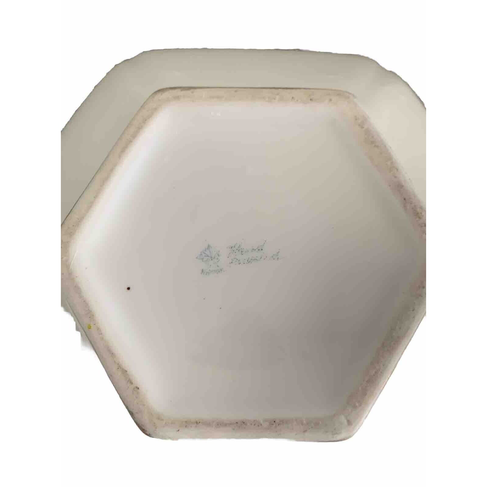 Add a touch of vintage elegance to your collection with this Nippon two-piece sugar bowl set. The hexagon-shaped bowl is made of delicate porcelain with a gold gilded moriage finish, and the lid is beautifully hand-painted. This item is perfect for all occasions and will be a great addition to your decorative cookware, dinnerware, and serveware collection.