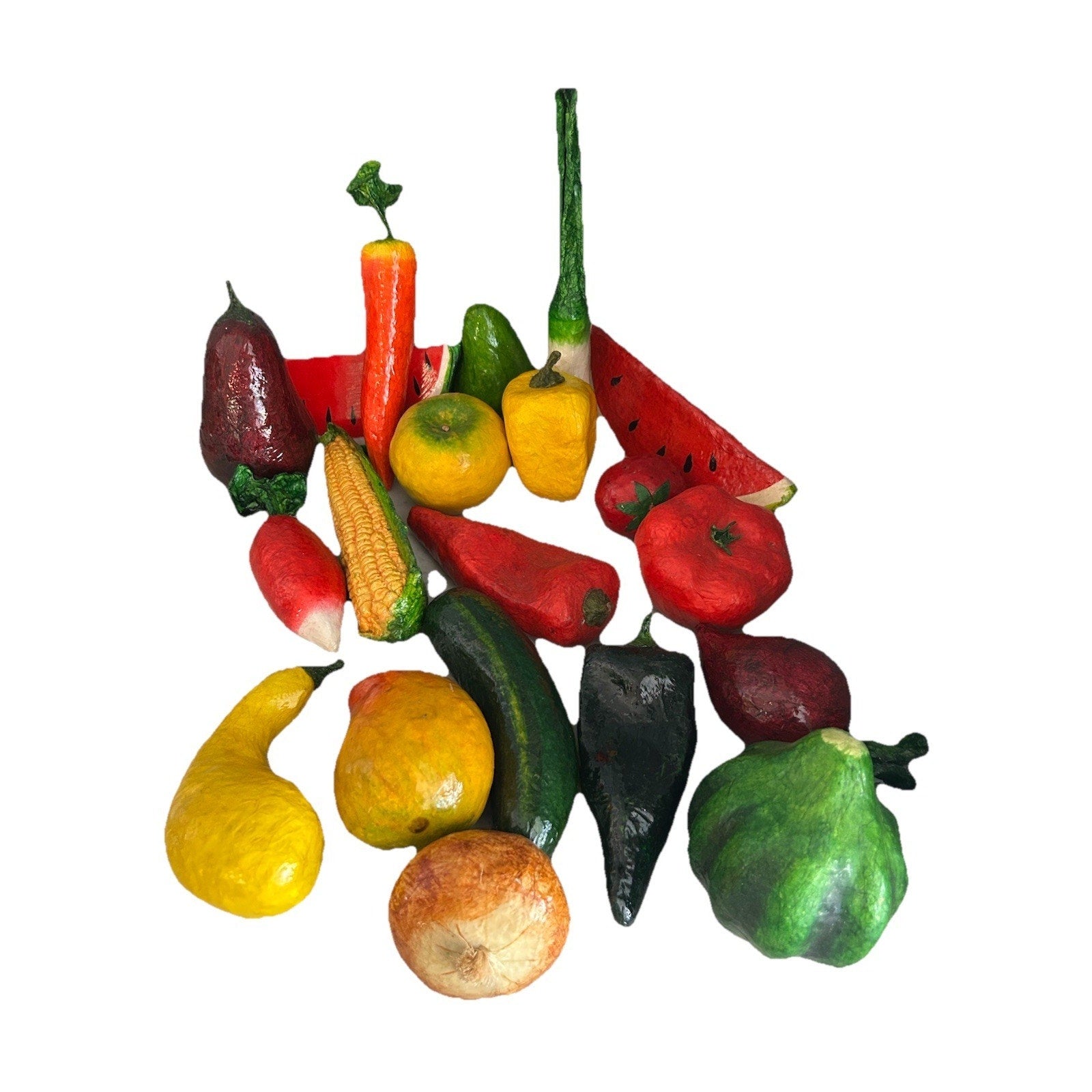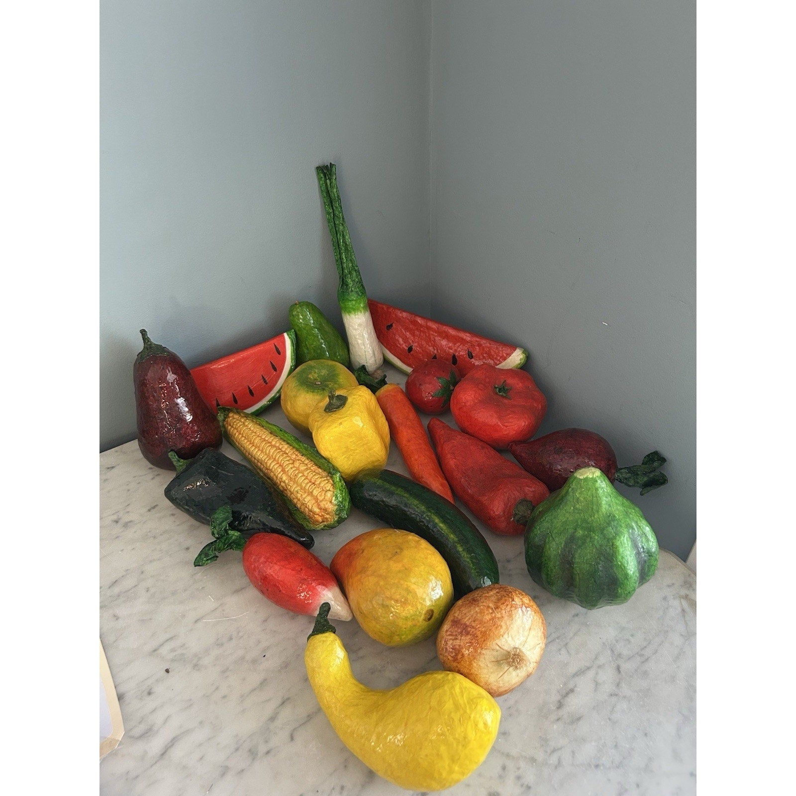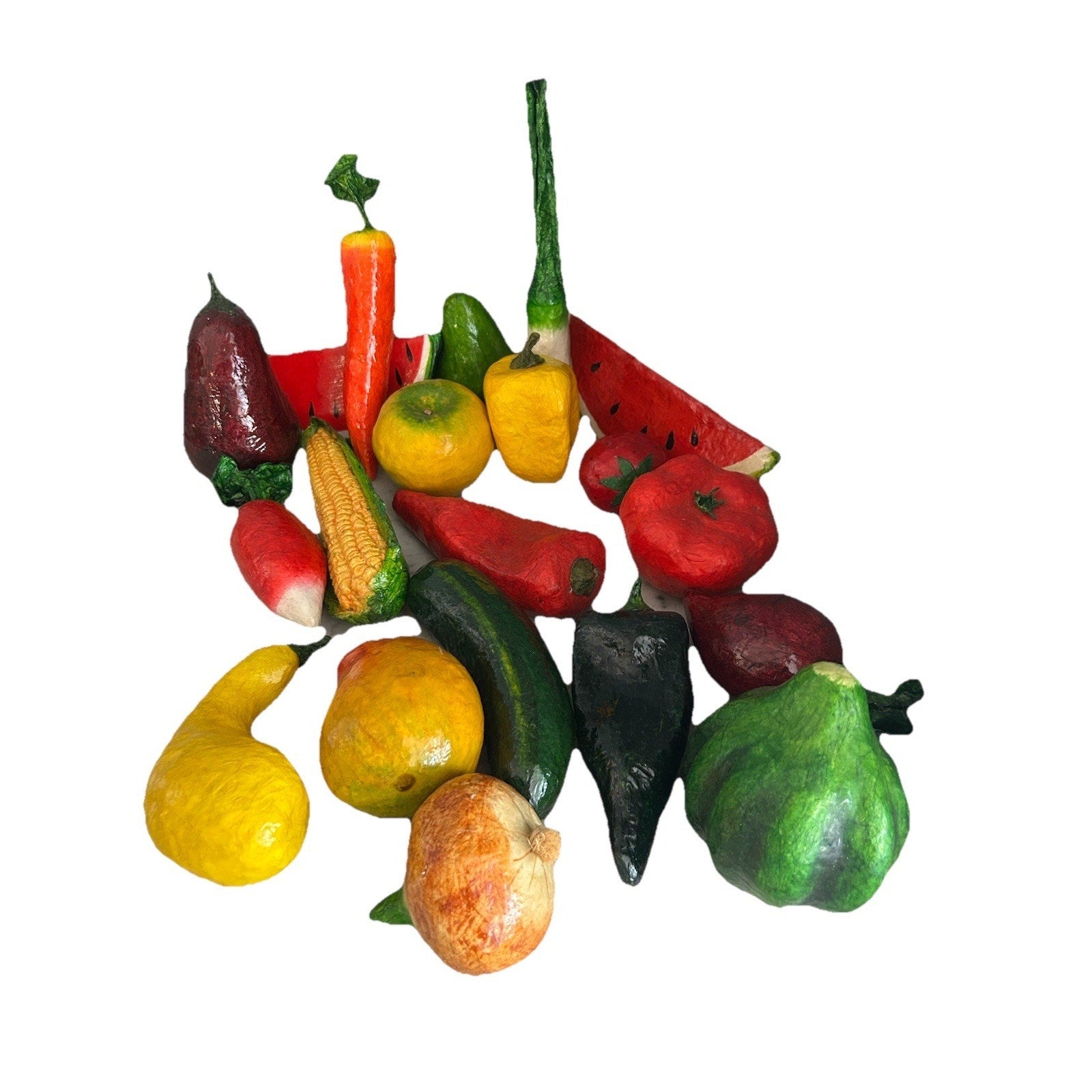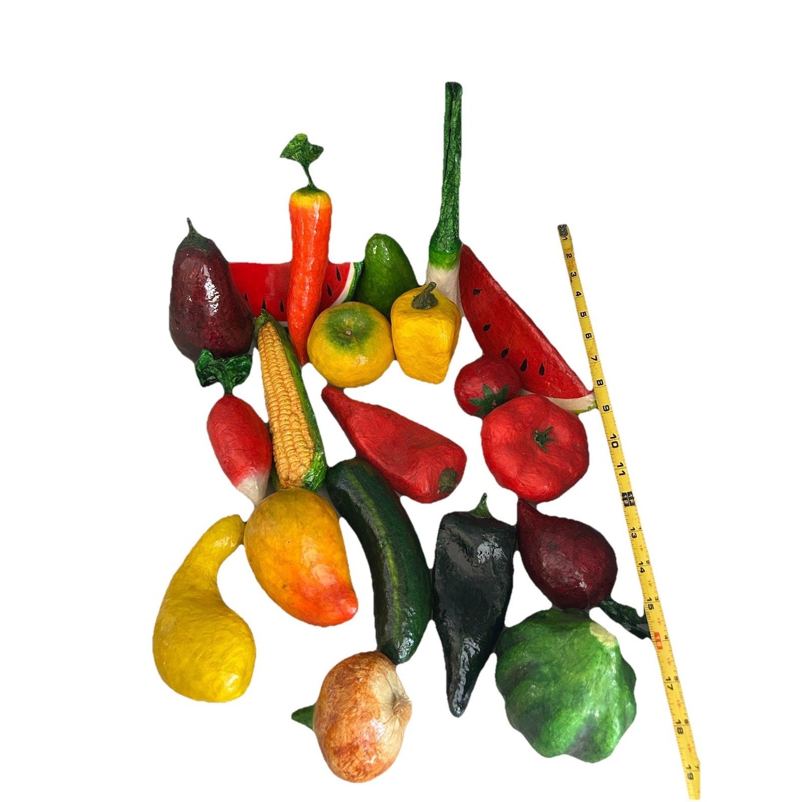 Vintage Paper Mache Handmade 20 Fruits & Vegetables MCM Folk Art faux Fake