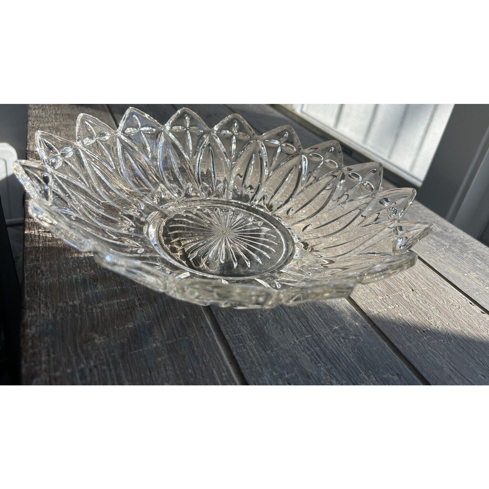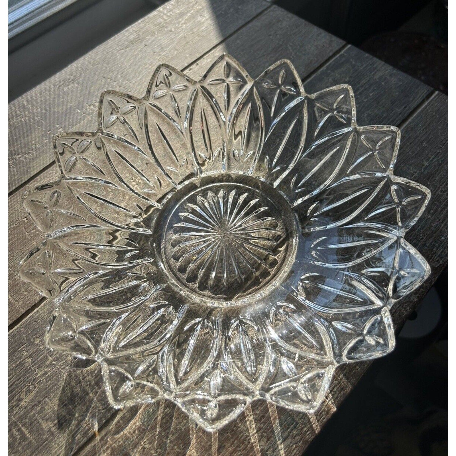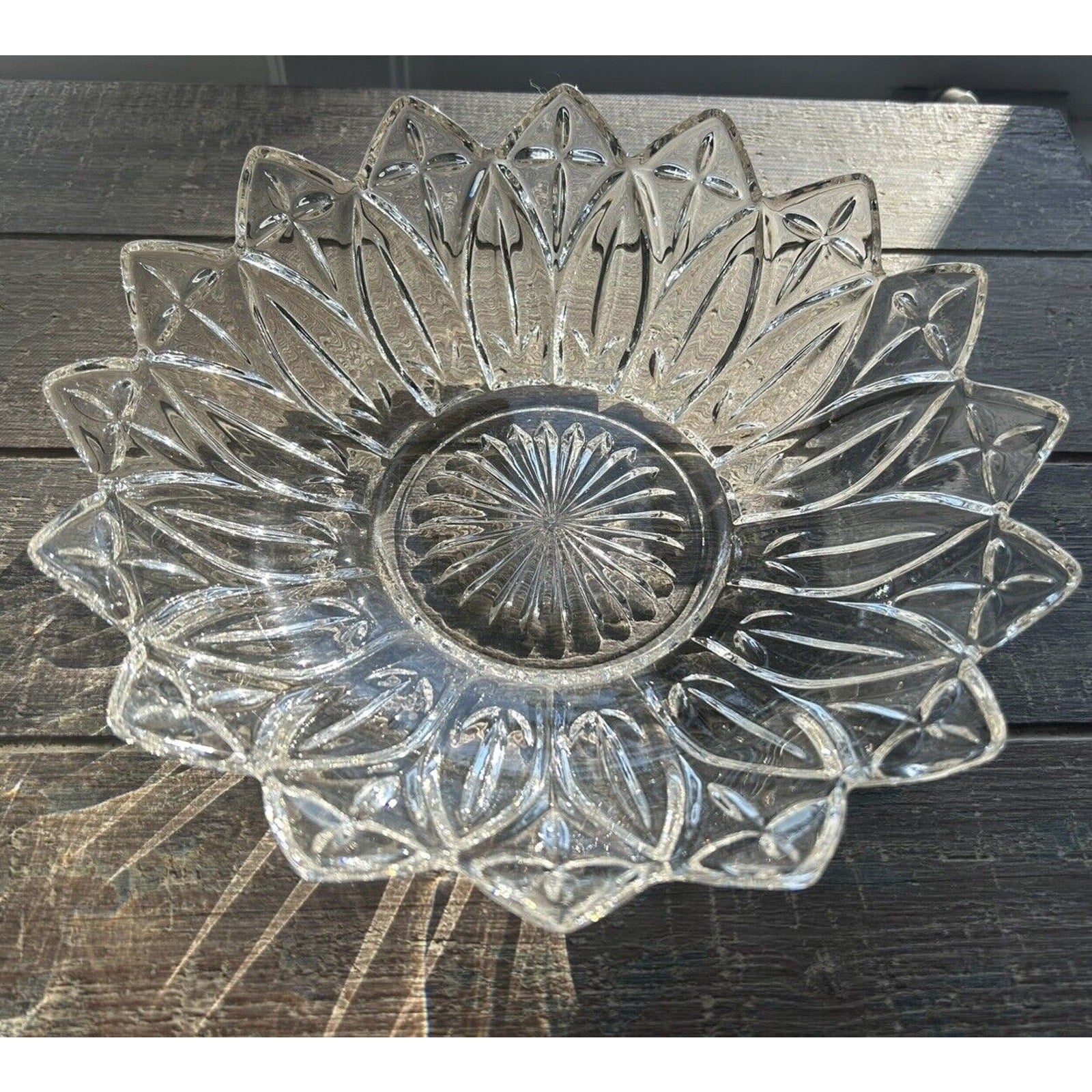 Vintage Petal Federal Glass Round 10” Berry Bowl dish Flower Clear