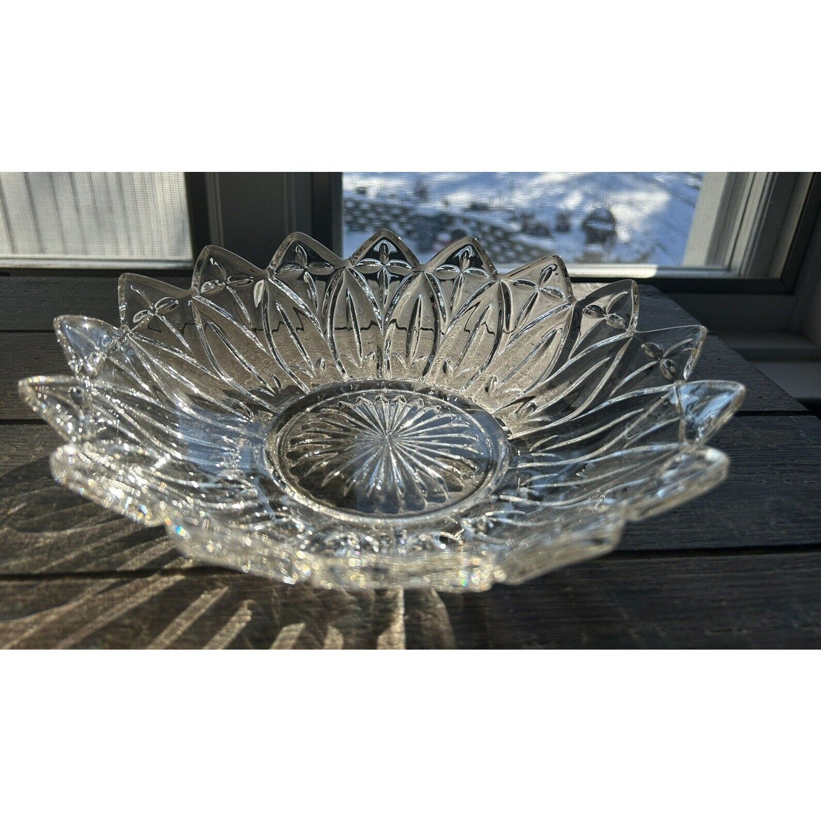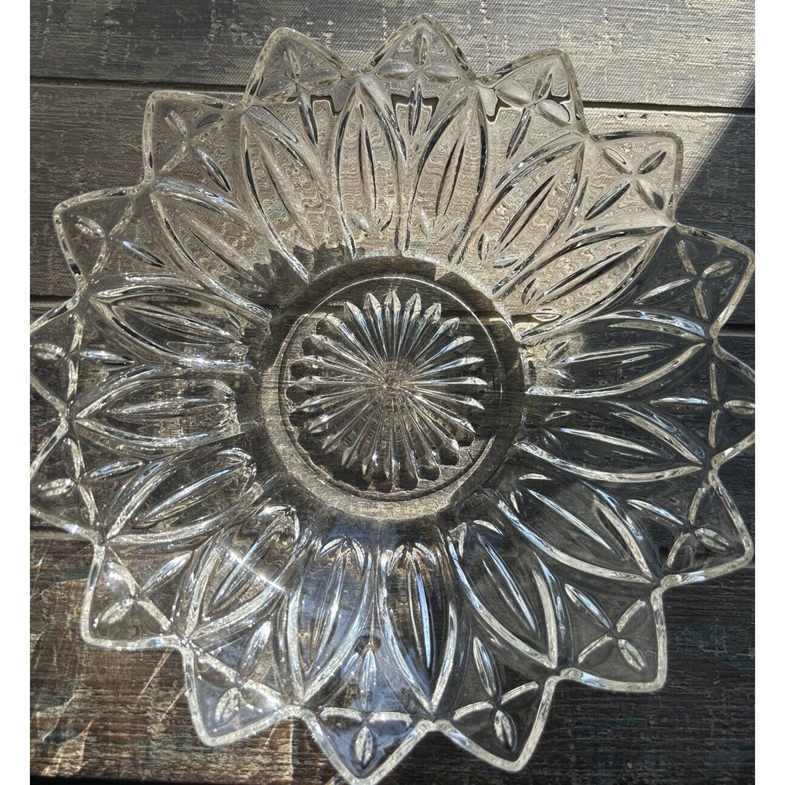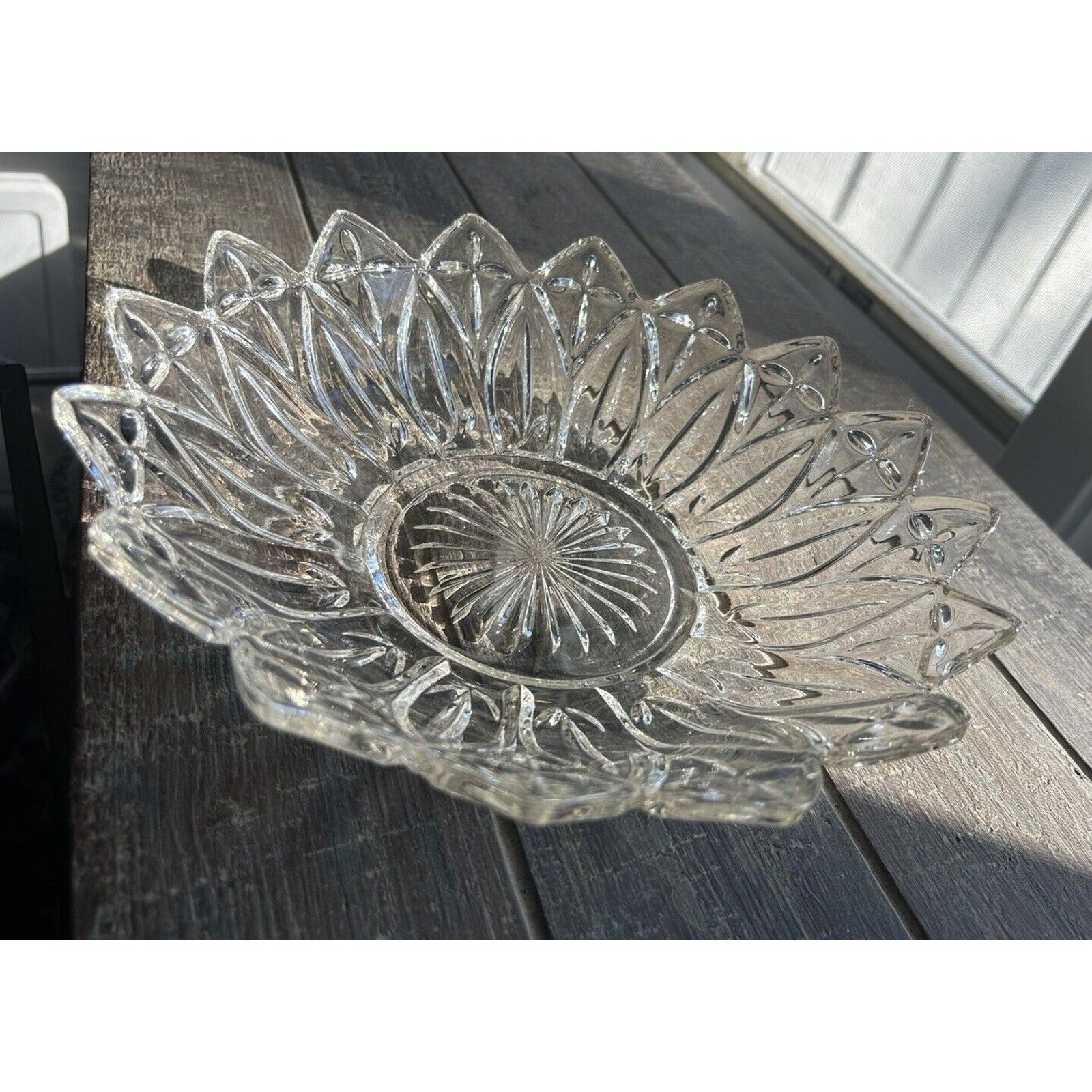 Vintage Petal Federal Glass Round 10” Berry Bowl dish Flower Clear