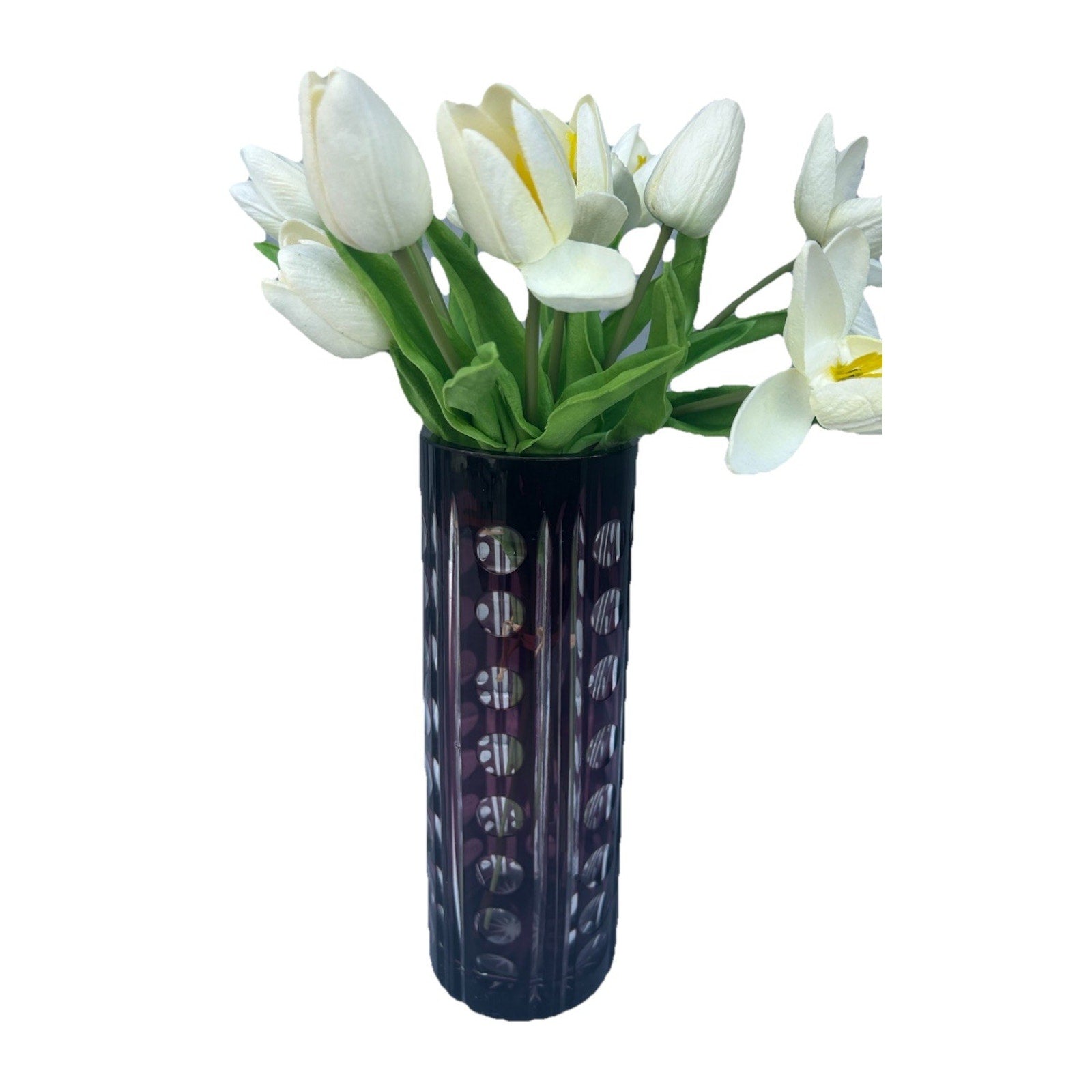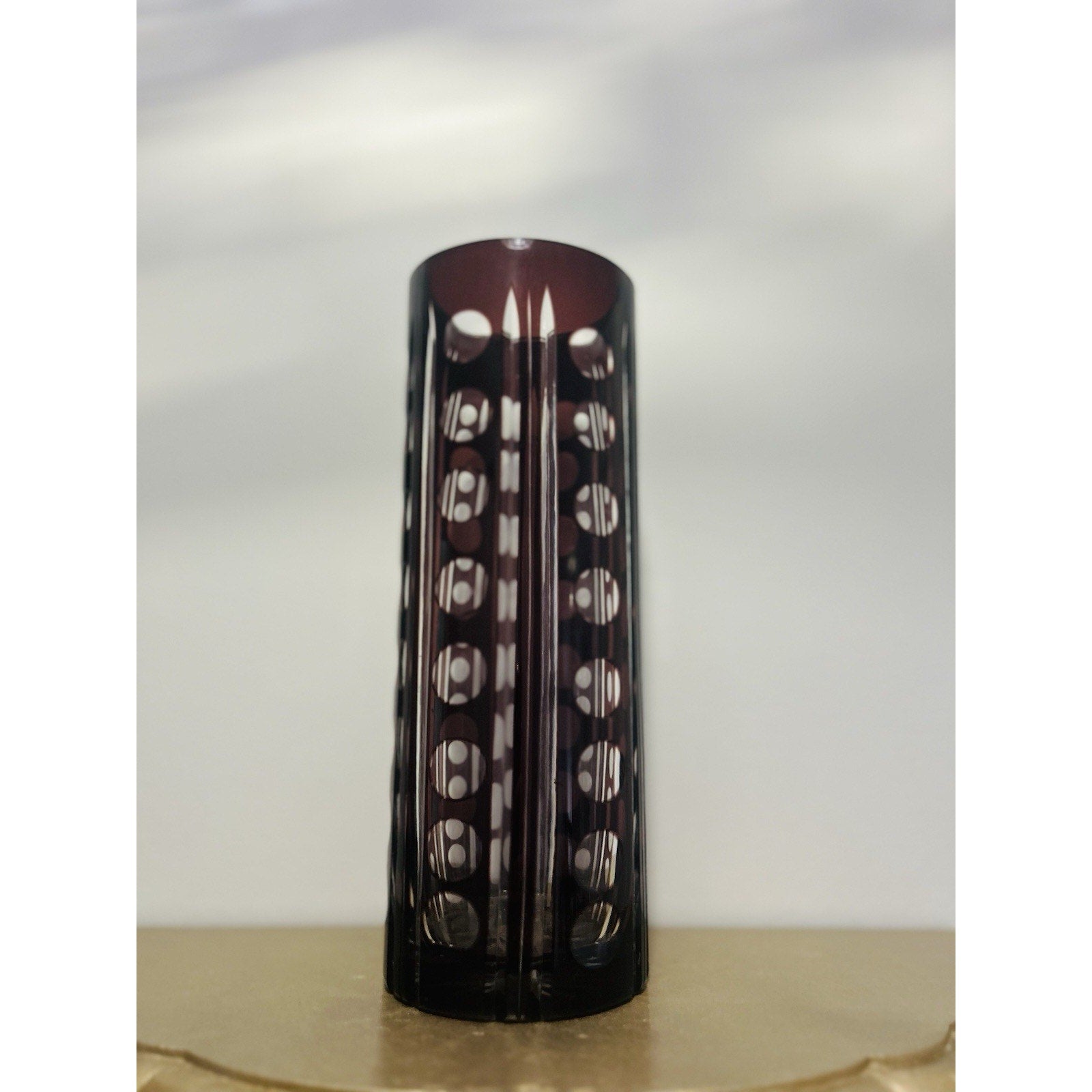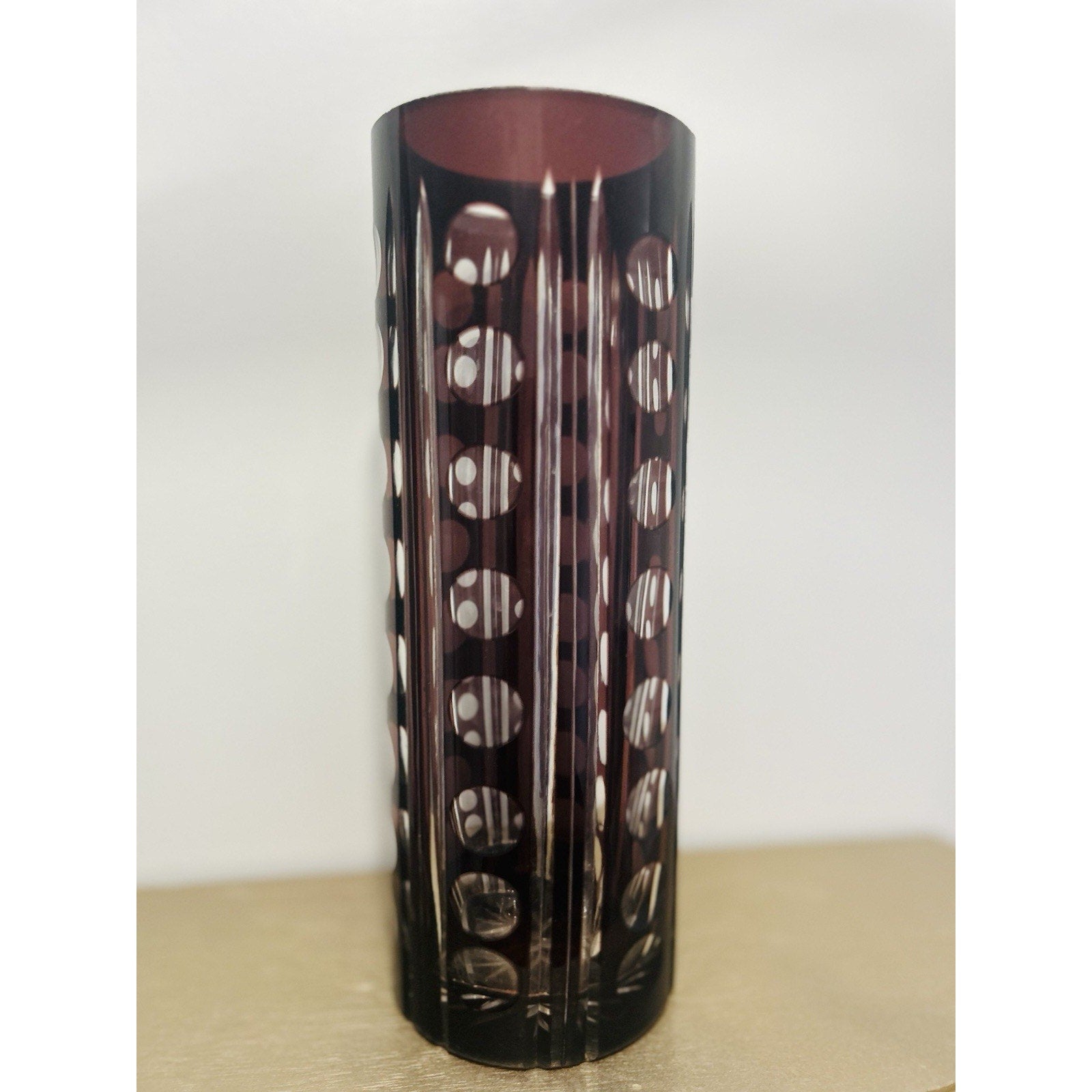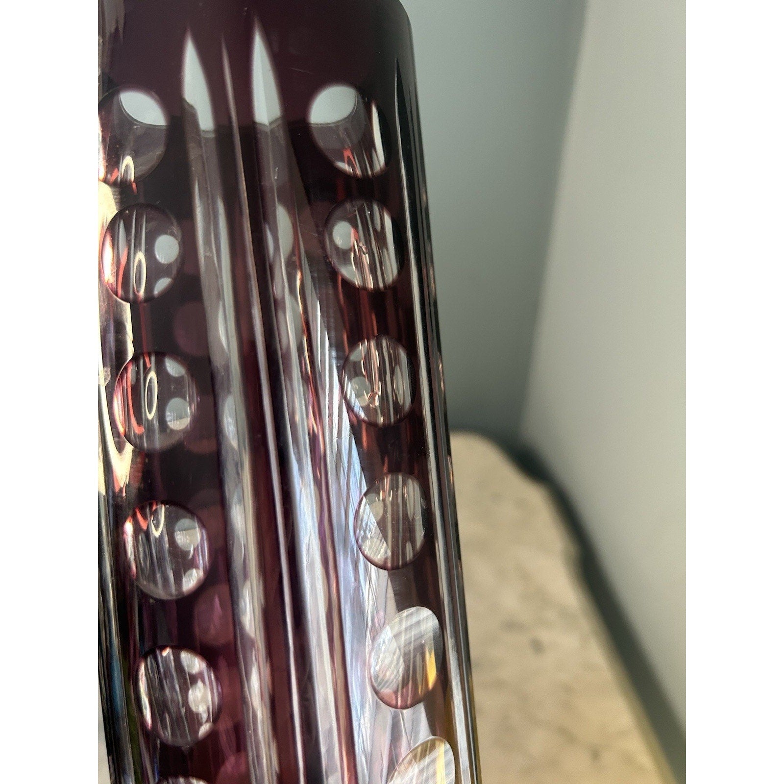 Vintage Purple Bohemian Tall Crystal Vase Amethyst 10” Tall Art Deco Geometric