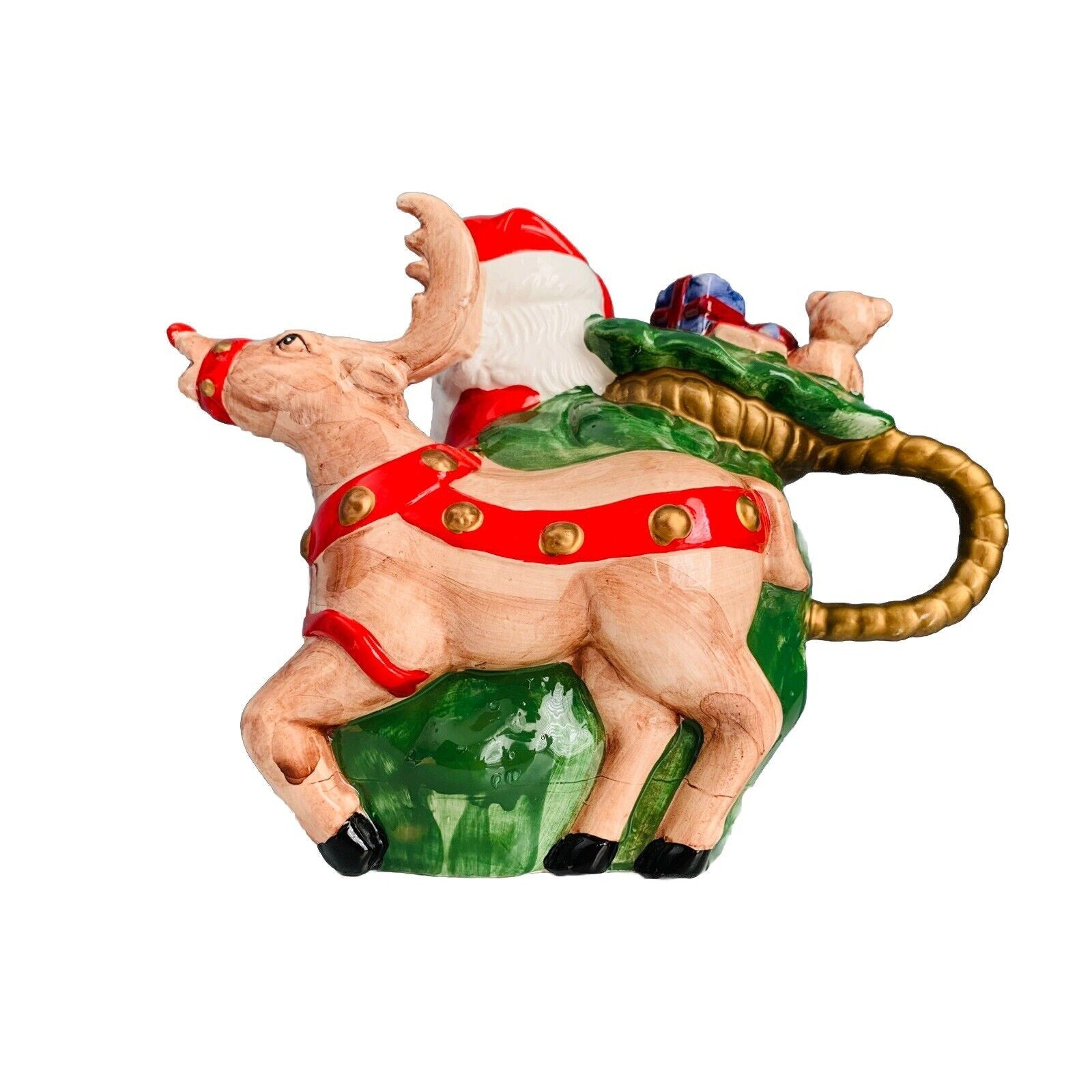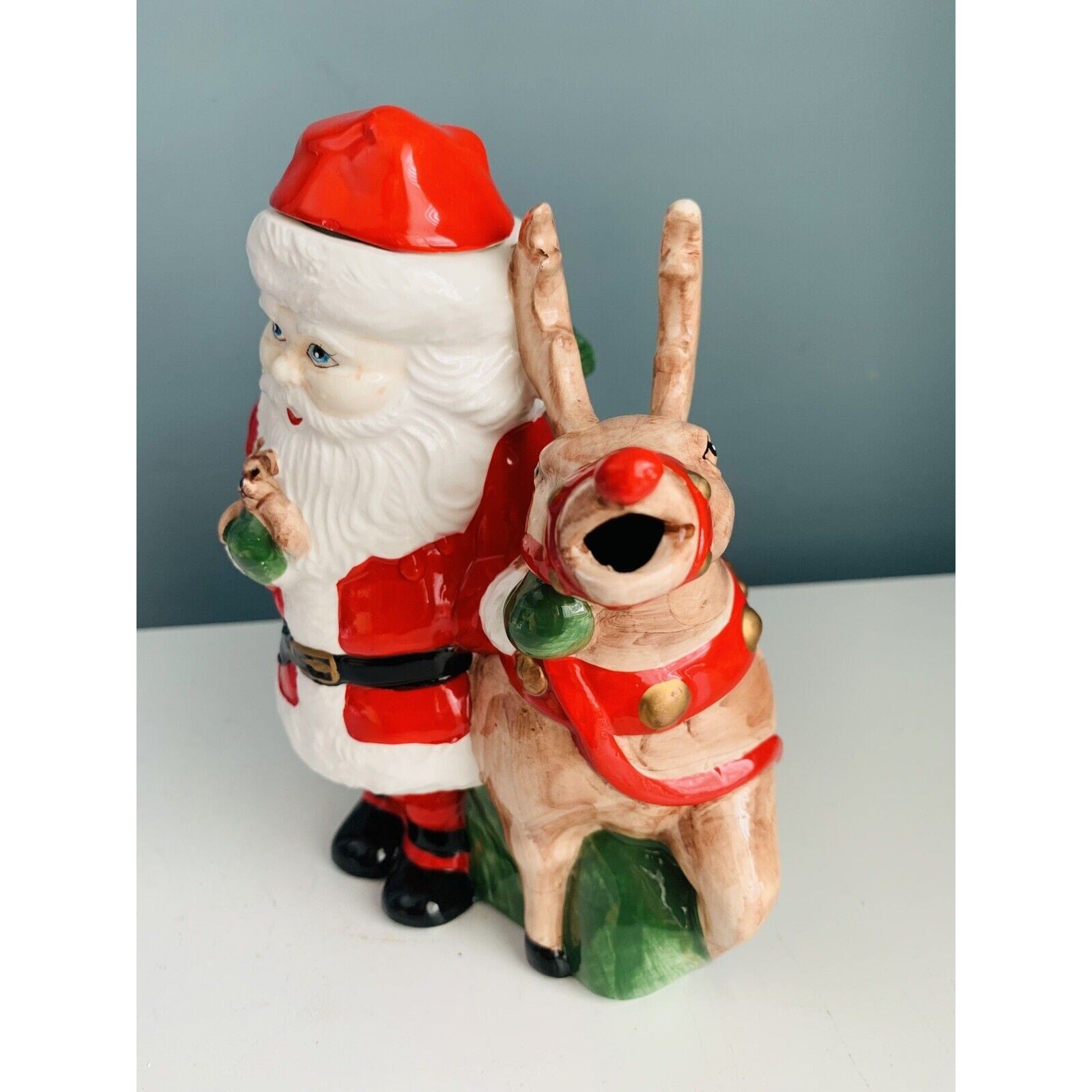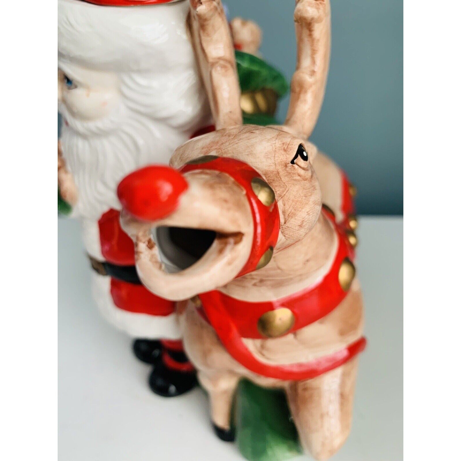 Vintage Teapot Santa Clause Reindeer Christmas Holiday Tea Beverage Dispenser