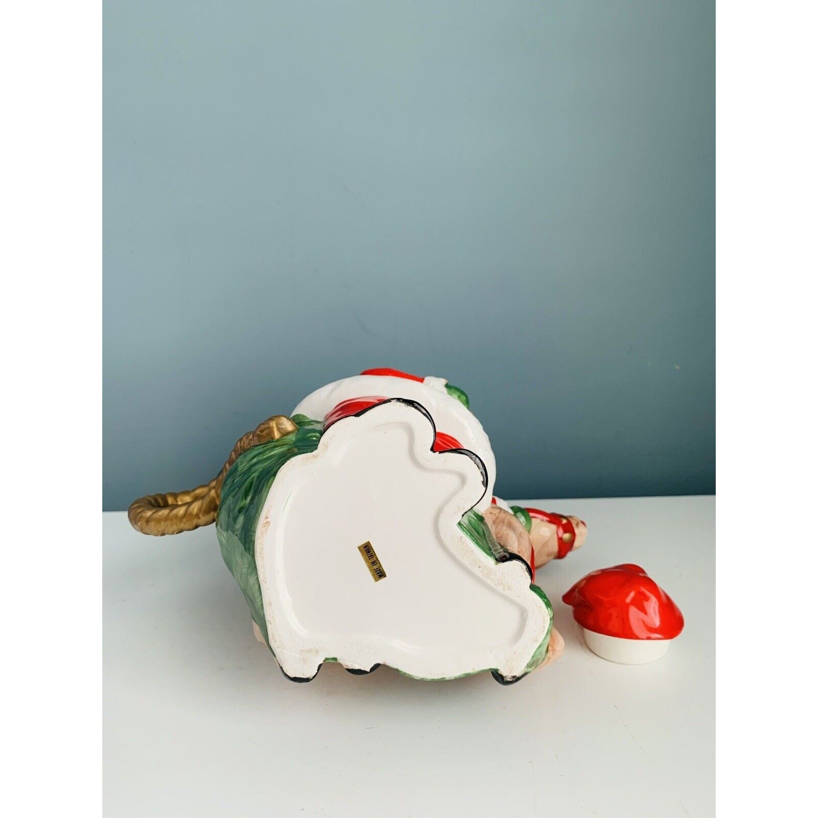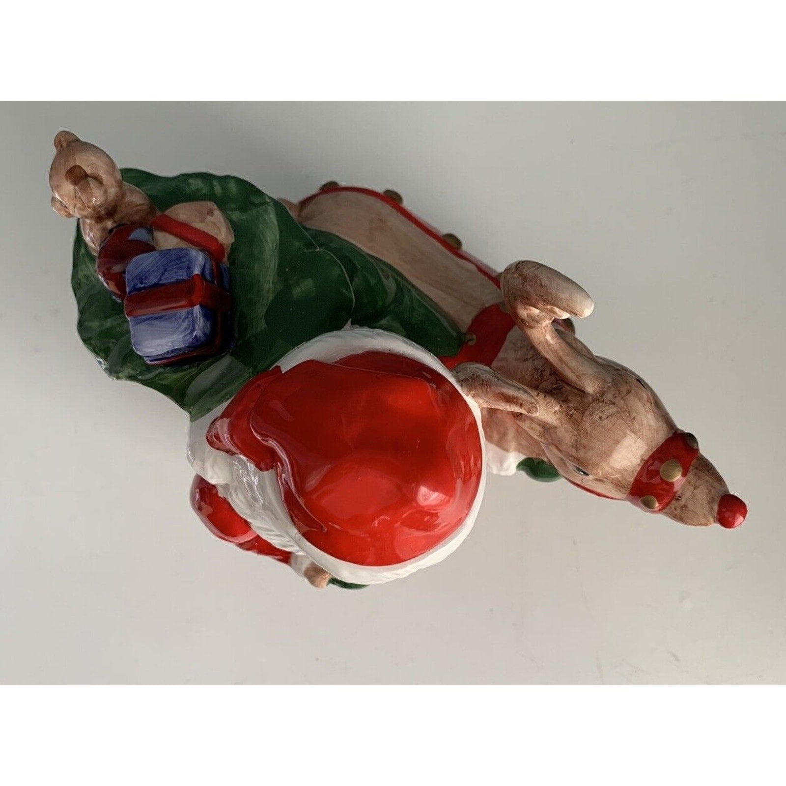 Great condition and so cute! One small chip (repaired) on outside of Santa’s hat as shown in picture. Not visible unless looking for it - less than 2 cm in length.