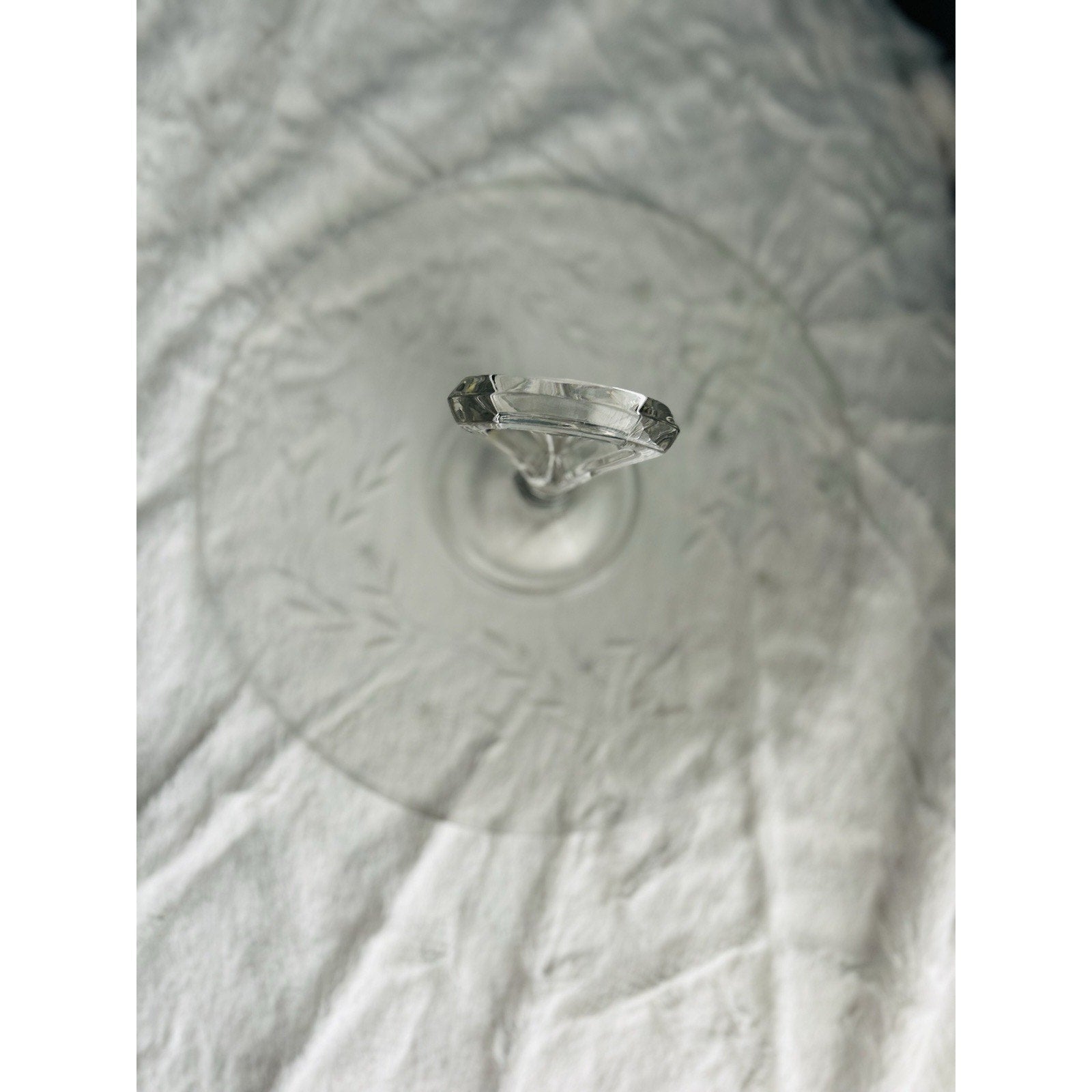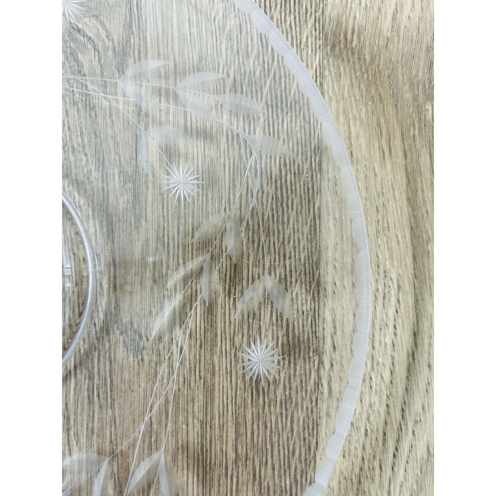 The glass is smooth round but underneath there is etched scalloped trim, similar in nature to the flowers.