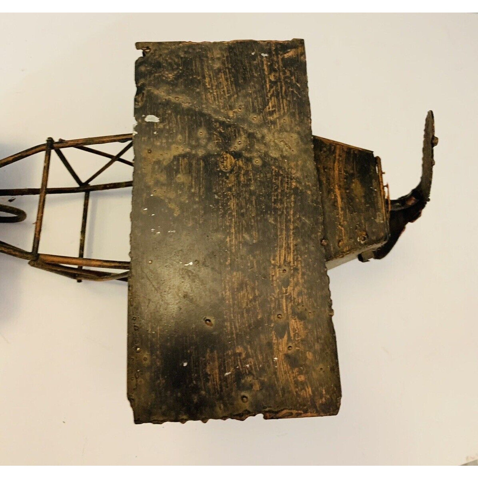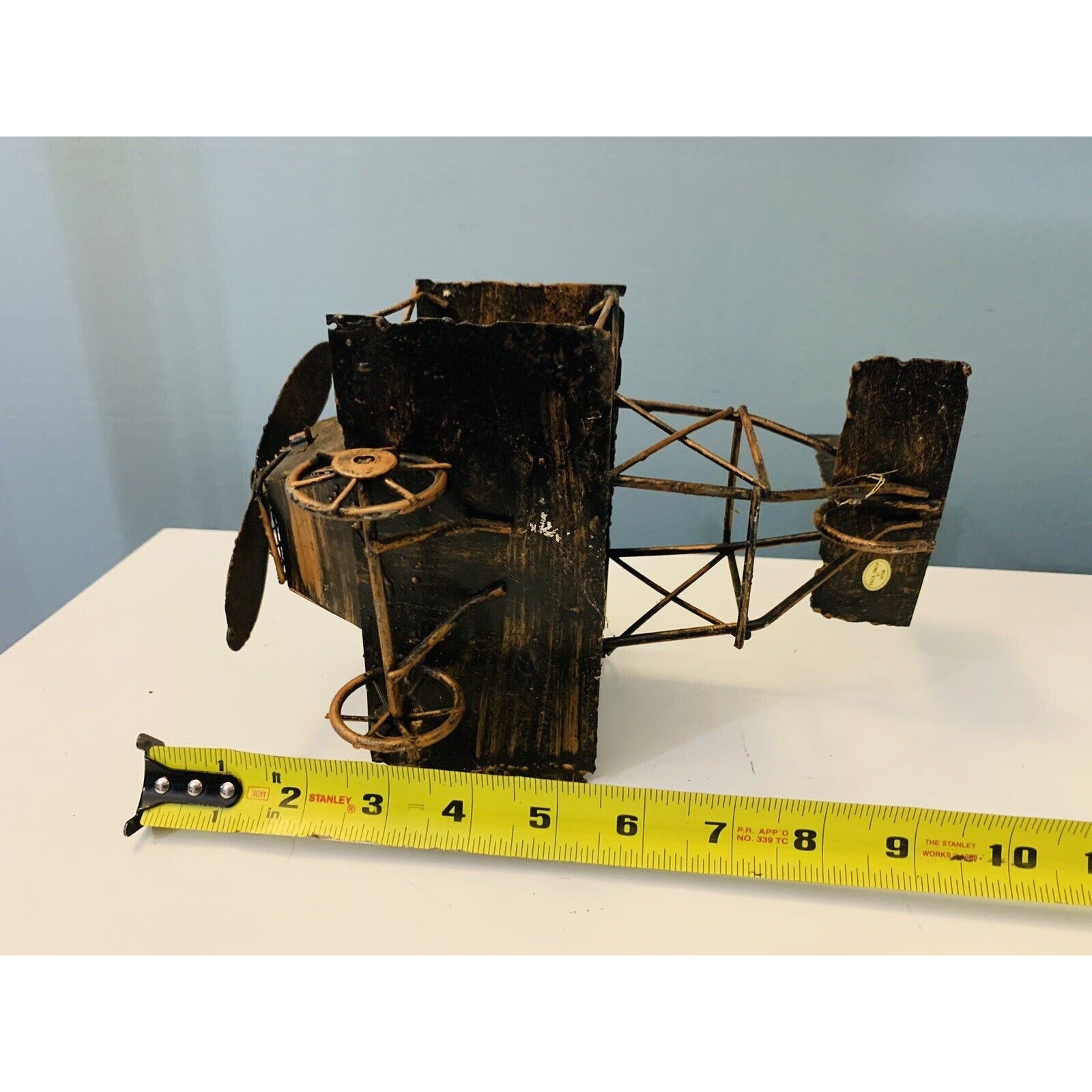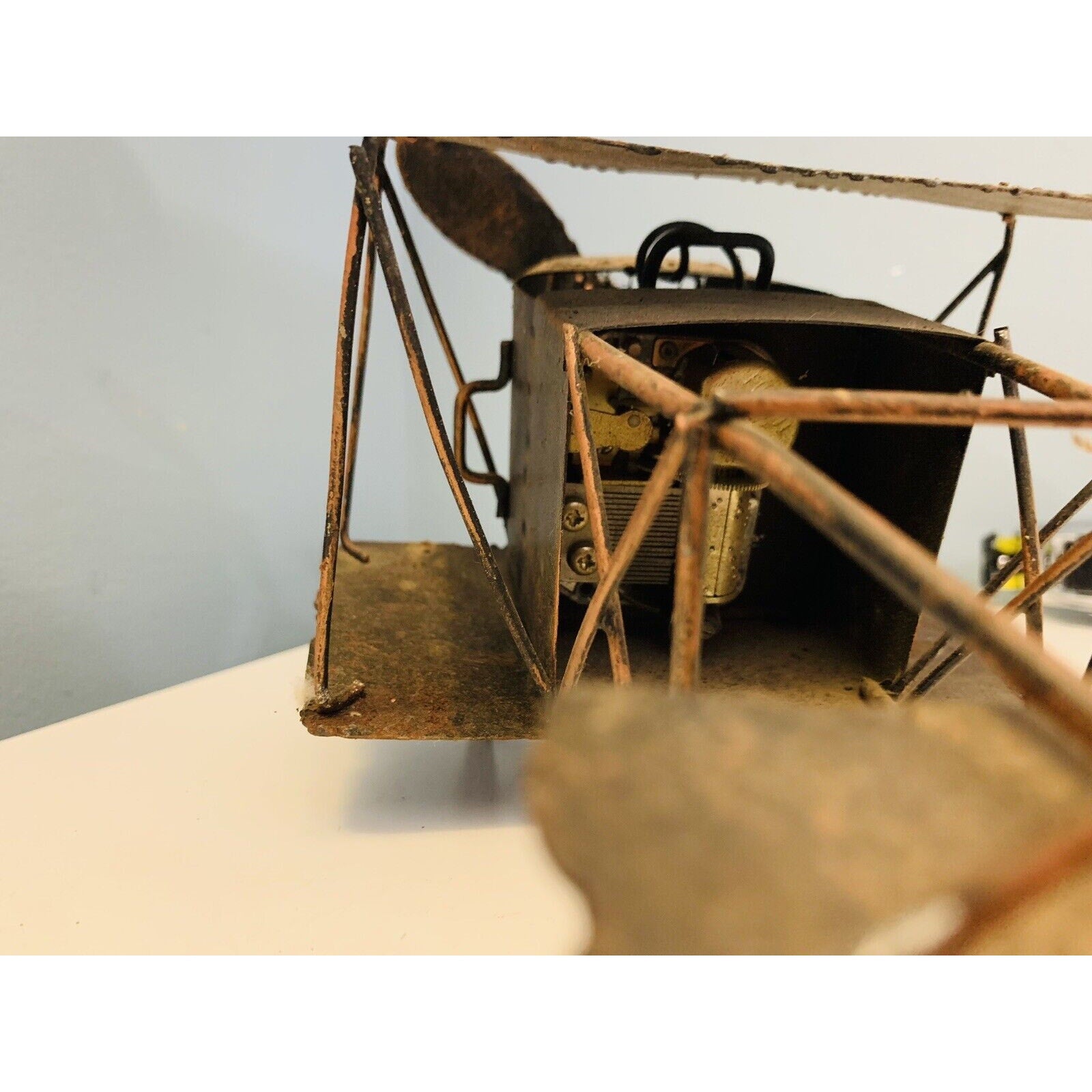 Vintage Tin Airplane Music Box Wind Up Propeller Bi Plane Metal Patina Working