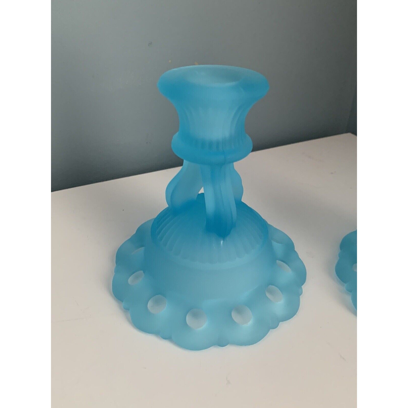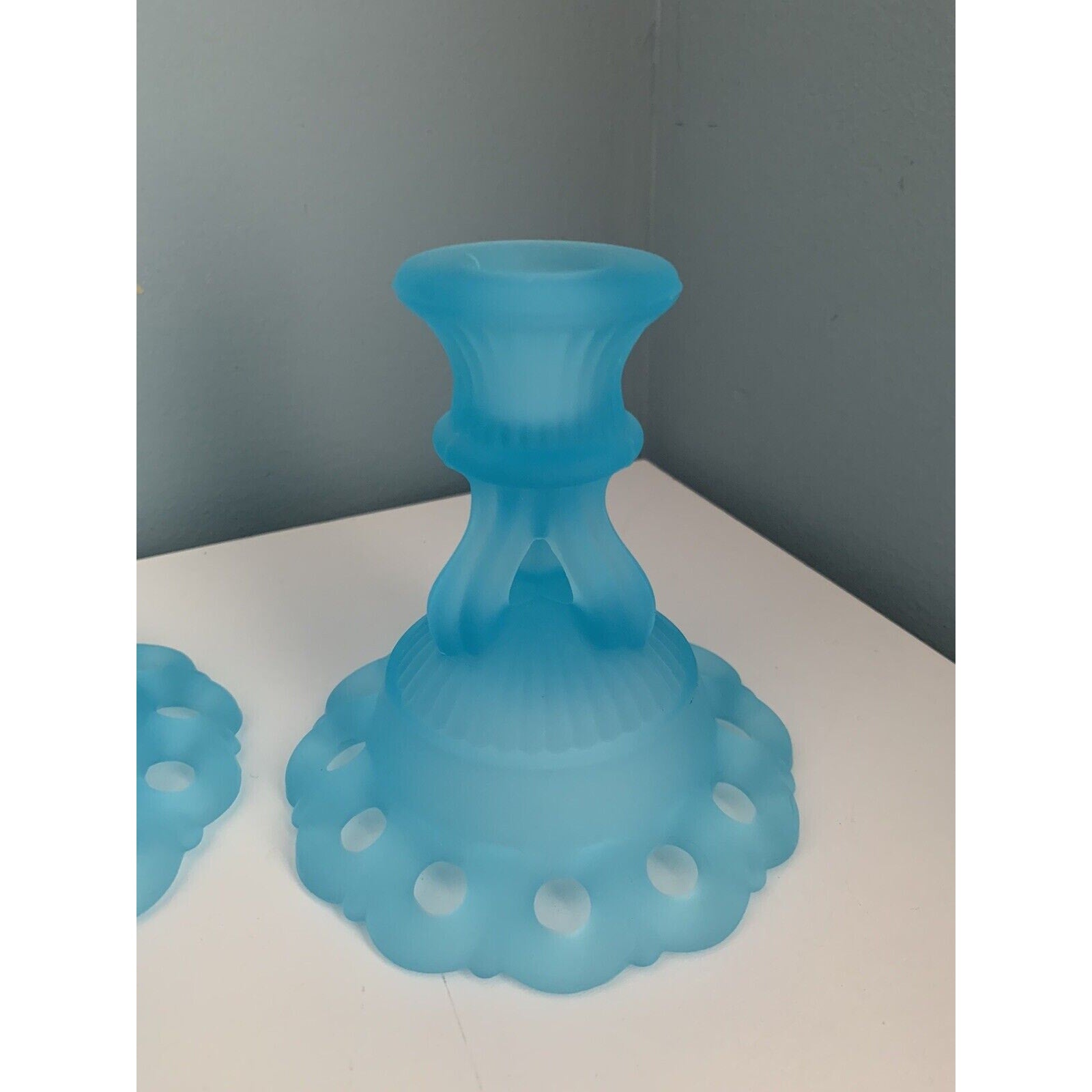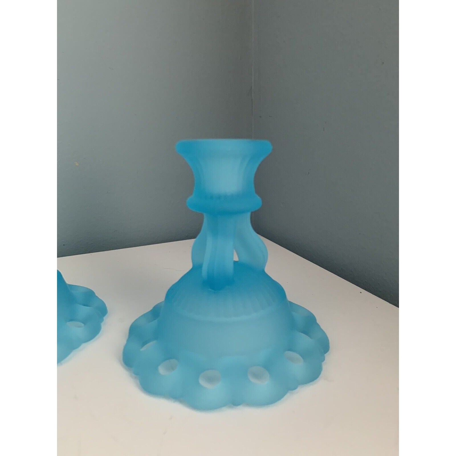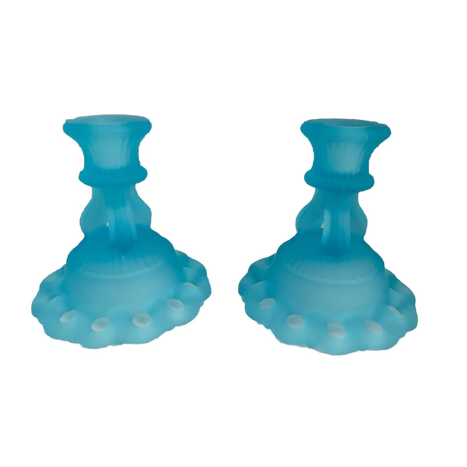 Vintage Westmoreland Light Blue Glass 2 Candlestick Candle Holders 4 1/2" Lace