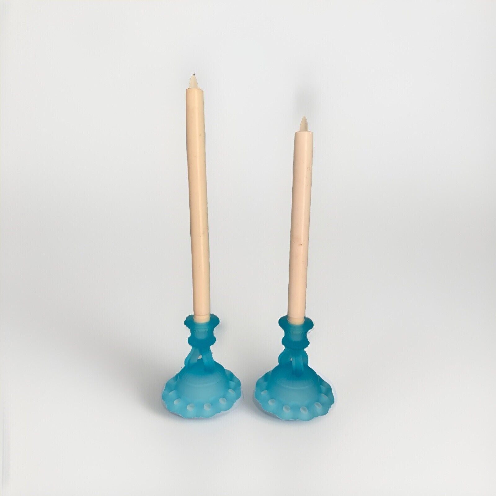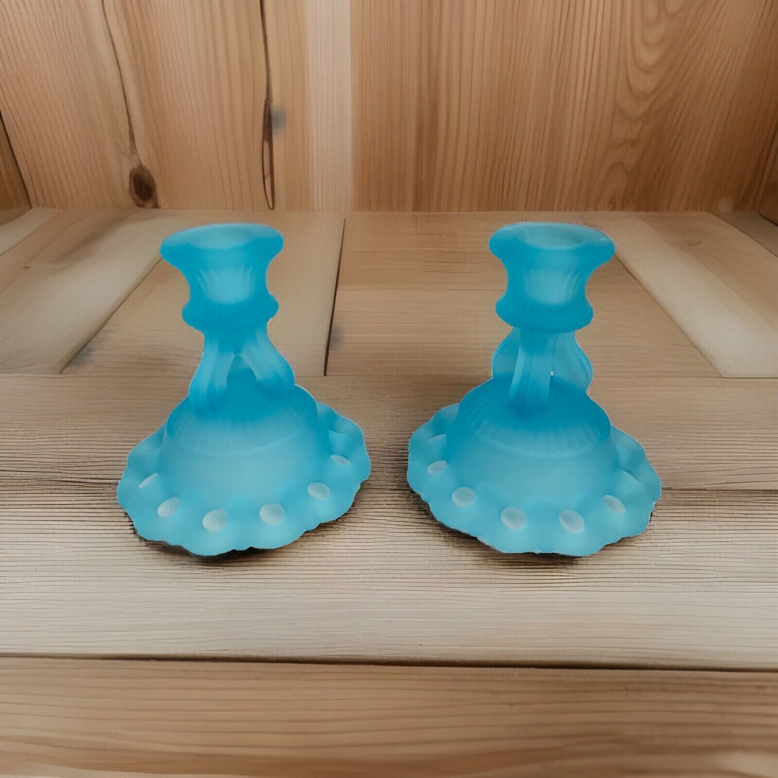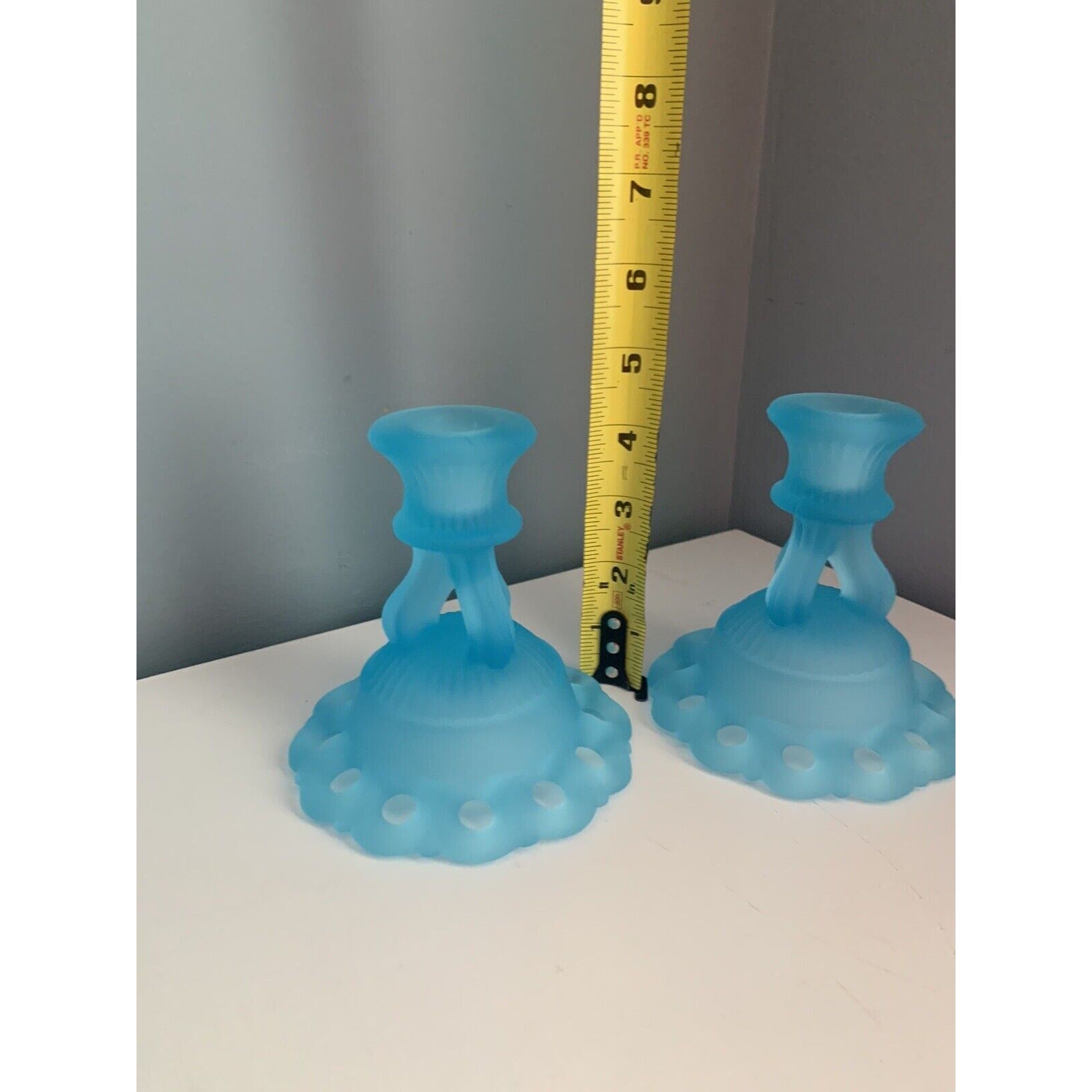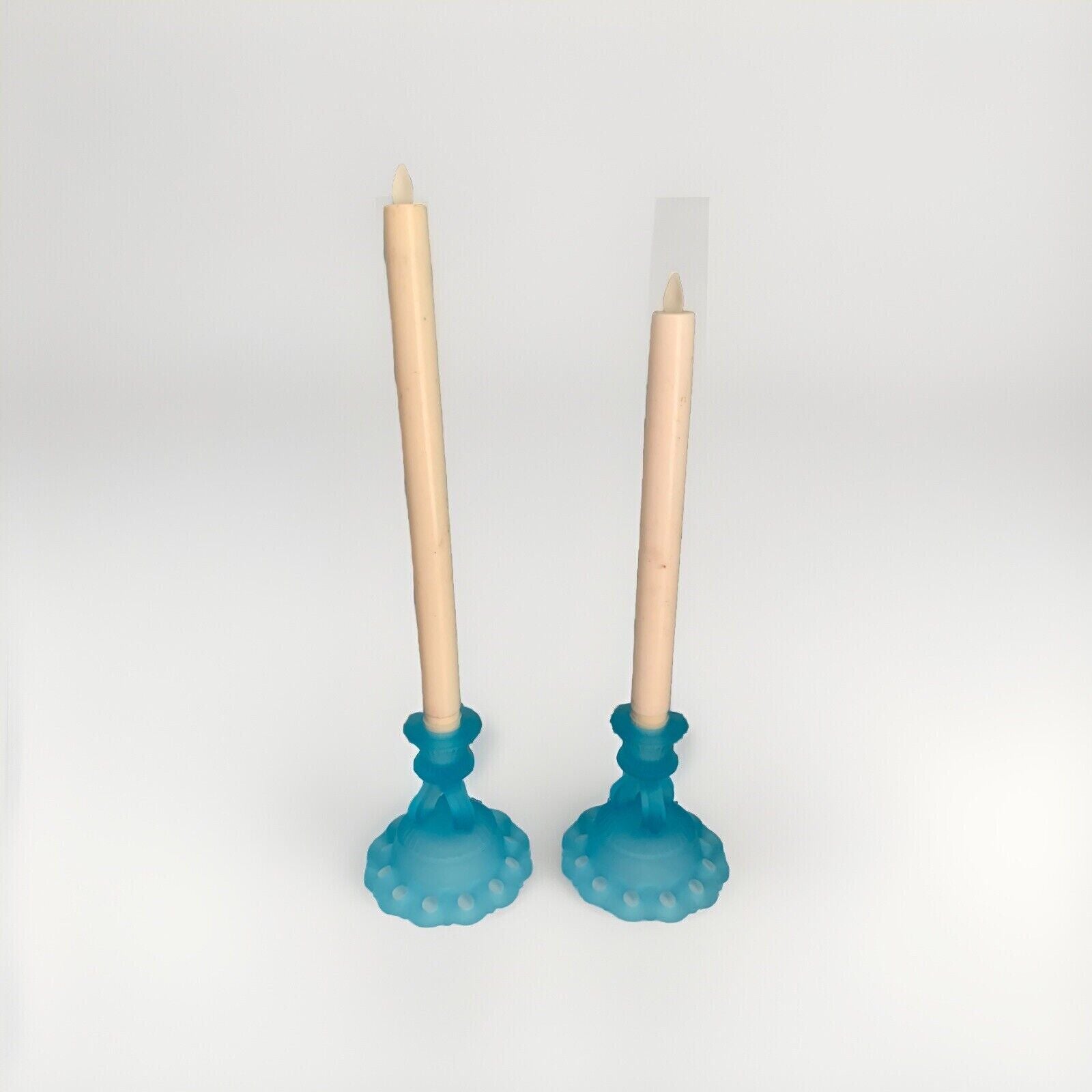 Vintage Westmoreland Light Blue Glass 2 Candlestick Candle Holders 4 1/2" Lace